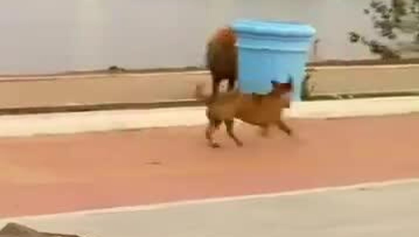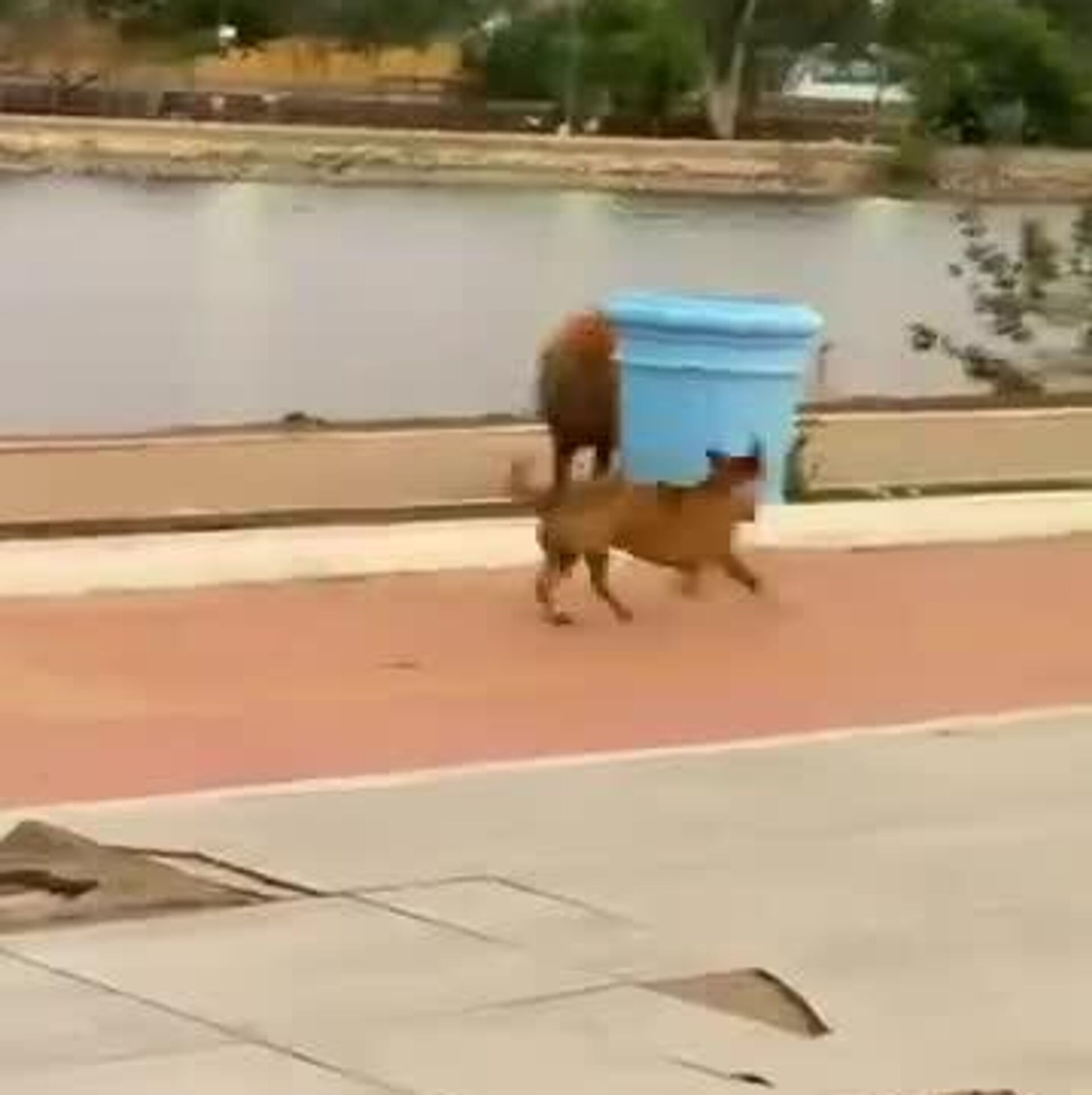 سگی در مسیر پیادهروی صبحگاهی به کاپیبارای بزرگی رسید ولی کاپیبارا حضور سگ را کنار خودش تحمل نکرد و از آنجاییکه سگ خیلی صدا می کرد تلاش کرد تا سگ را گاز بگیرد. سگ که از نیت کاپیبارا آگاه شد به دور او می چرخید و کاپیبارا با اینکه چندین بار تلاش کرد اما به گرد پای سگ هم نرسید. در آخر سگ پیروزمندانه مسیر خود را ادامه داد و کاپیبارای تنبل را به حال خود رها کرد.