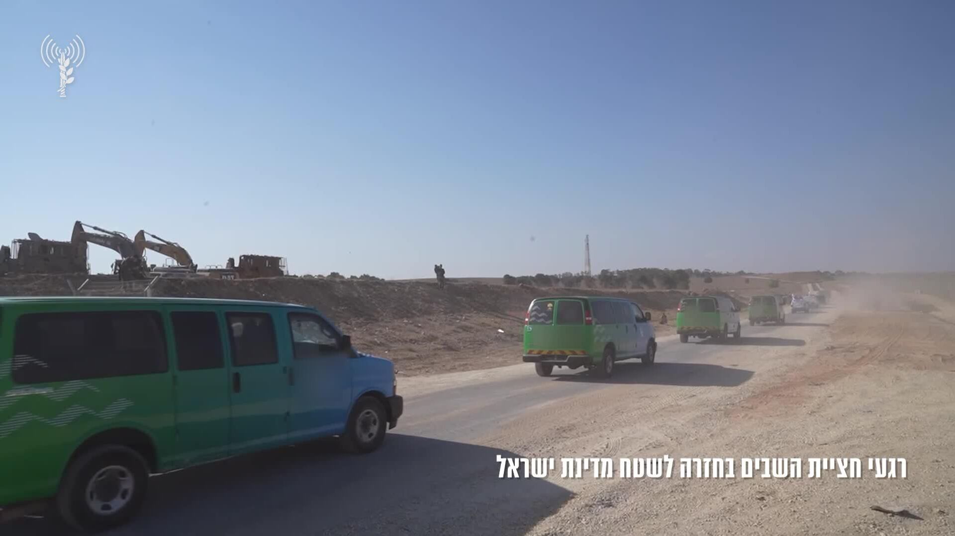 11:21 13.10.2025 (بروز رسانی شده: 11:30 13.10.2025) تصاویر منتشر شده توسط ارتش اسرائیل از ورود اولین گروه از گروگانهای آزاد شده به اسرائیل