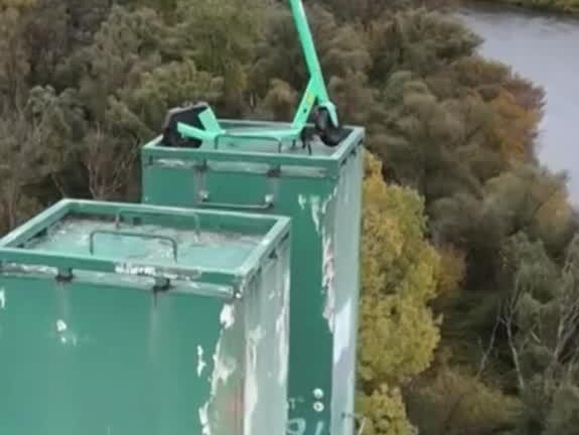 این سازه برای عابران پیاده غیرقابل دسترس است و بالا رفتن از آن اکیداً ممنوع است. آتش نشانان به محل حادثه رسیدند و وسیله نقلیه را خارج کردند. هنوز مشخص نیست که چگونه اسکوتر در چنین مکان غیرقابل دسترسی قرار گرفته است. این ویدئو به سرعت در فضای مجازی پخش شده است.