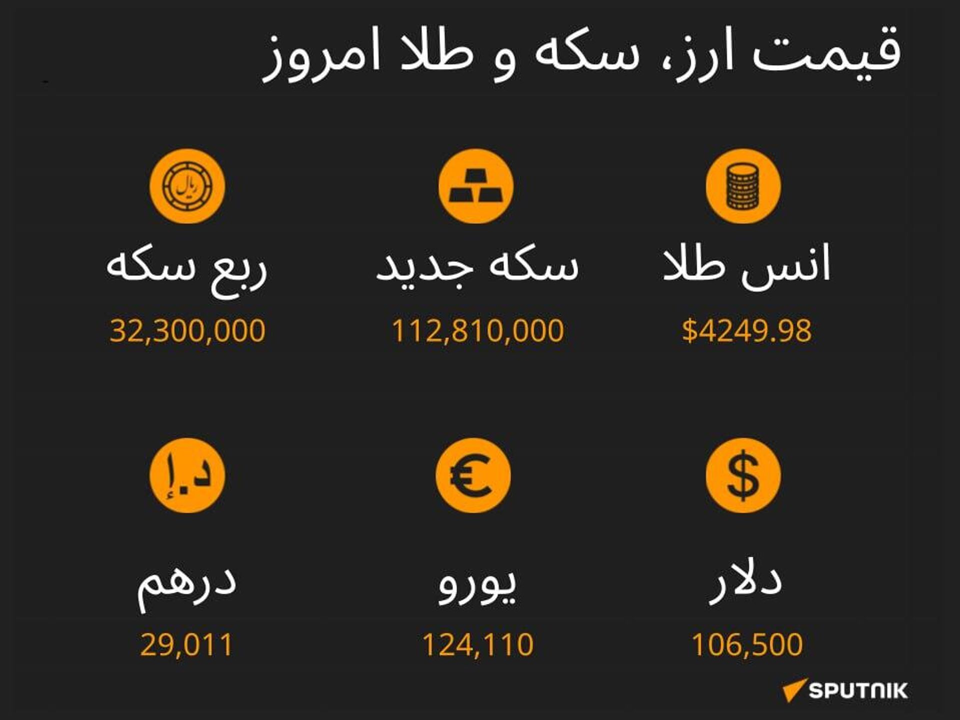 نرخ ارز، سکه و طلا تا ساعت 11:00 ما را در سایت و تلگرام اسپوتنیک دنبال کنید Sputnik Iran | Telegram