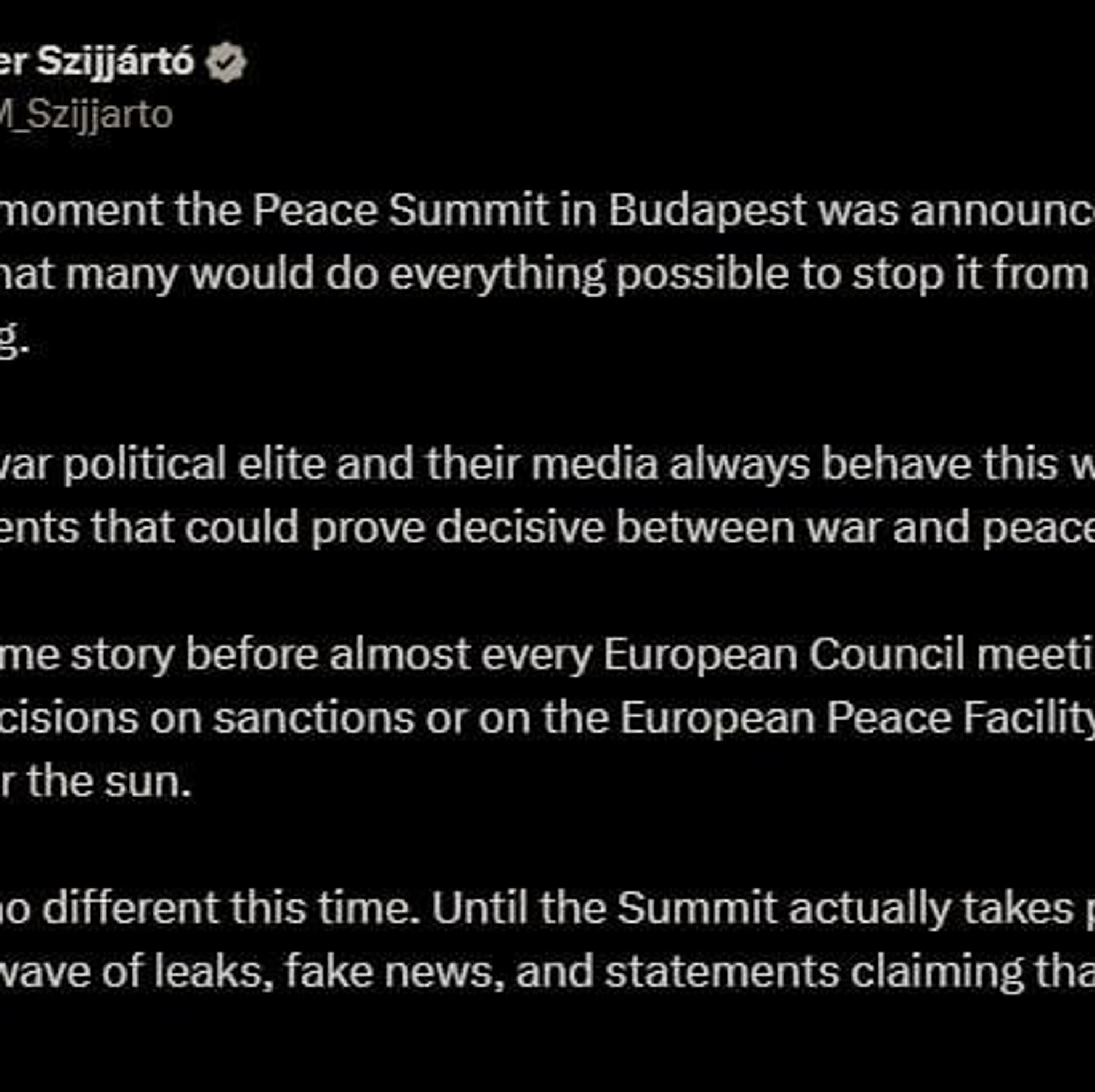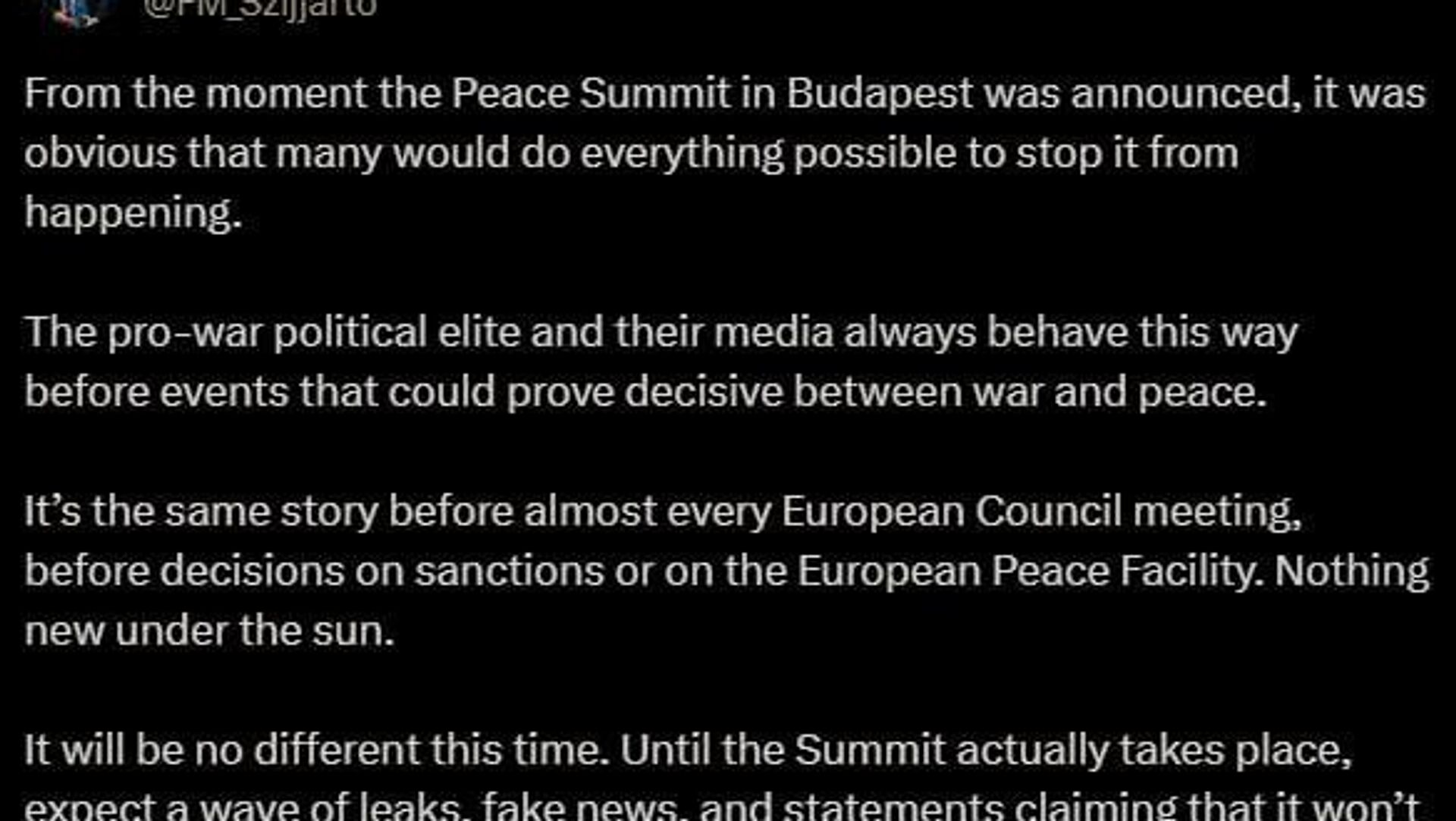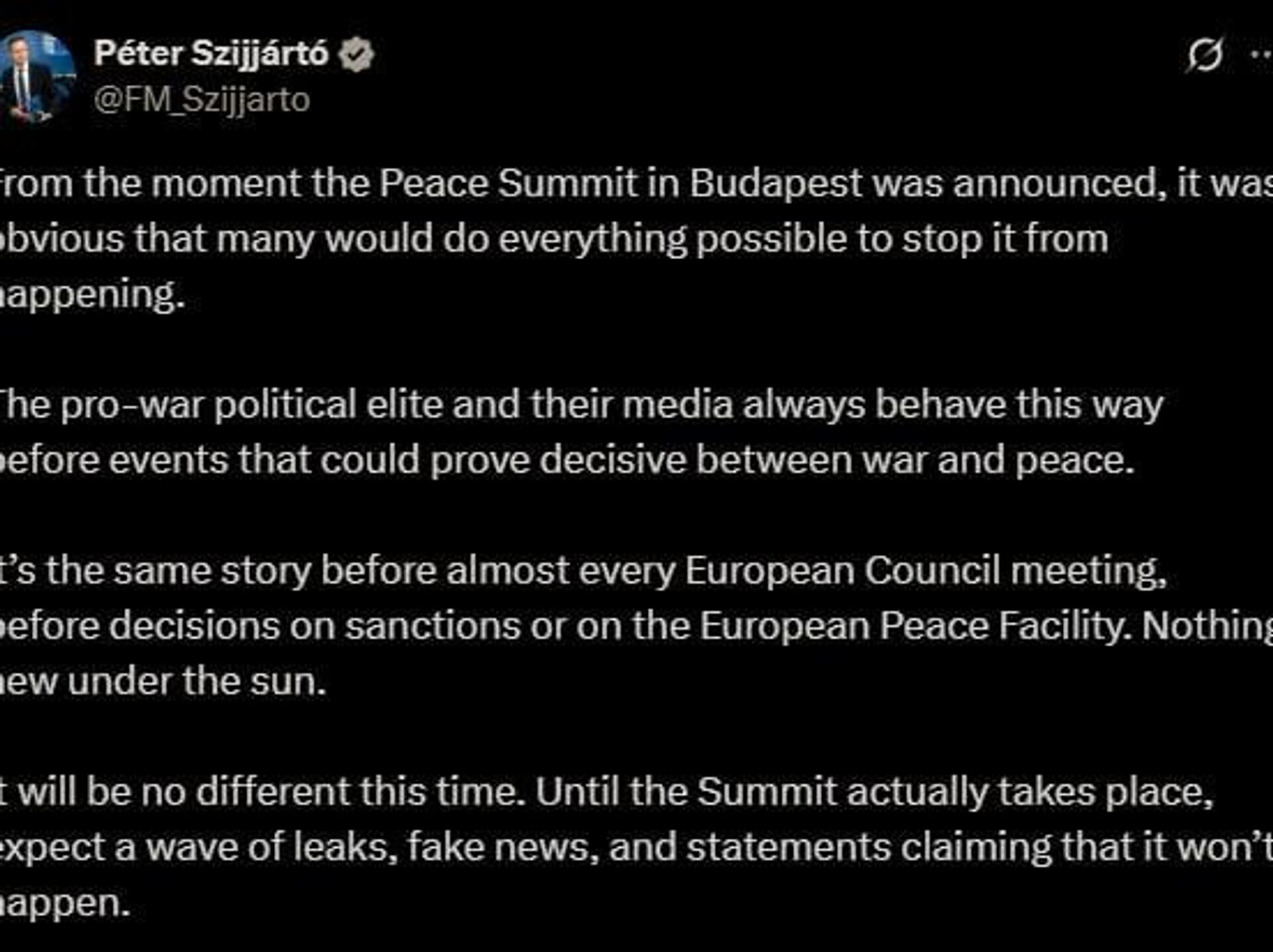 ▫پیتر سیارتو، وزیر امور خارجه مجارستان نسبت به تلاشهای نخبگان سیاسی طرفدار جنگ برای خرابکاری در اجلاس صلح بوداپست هشدار میدهد.