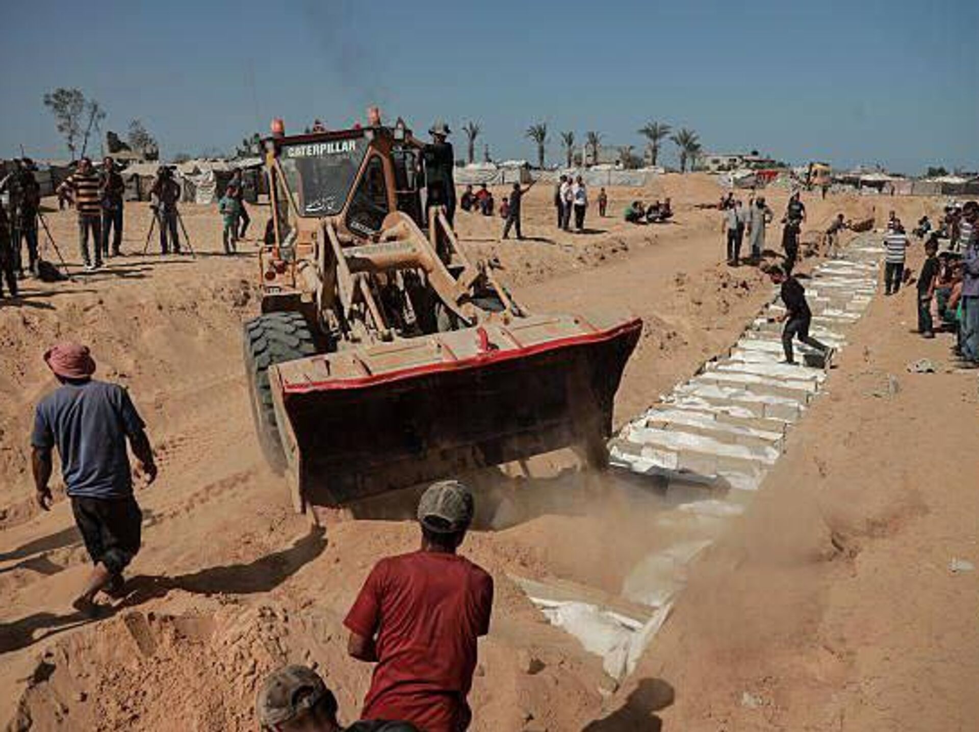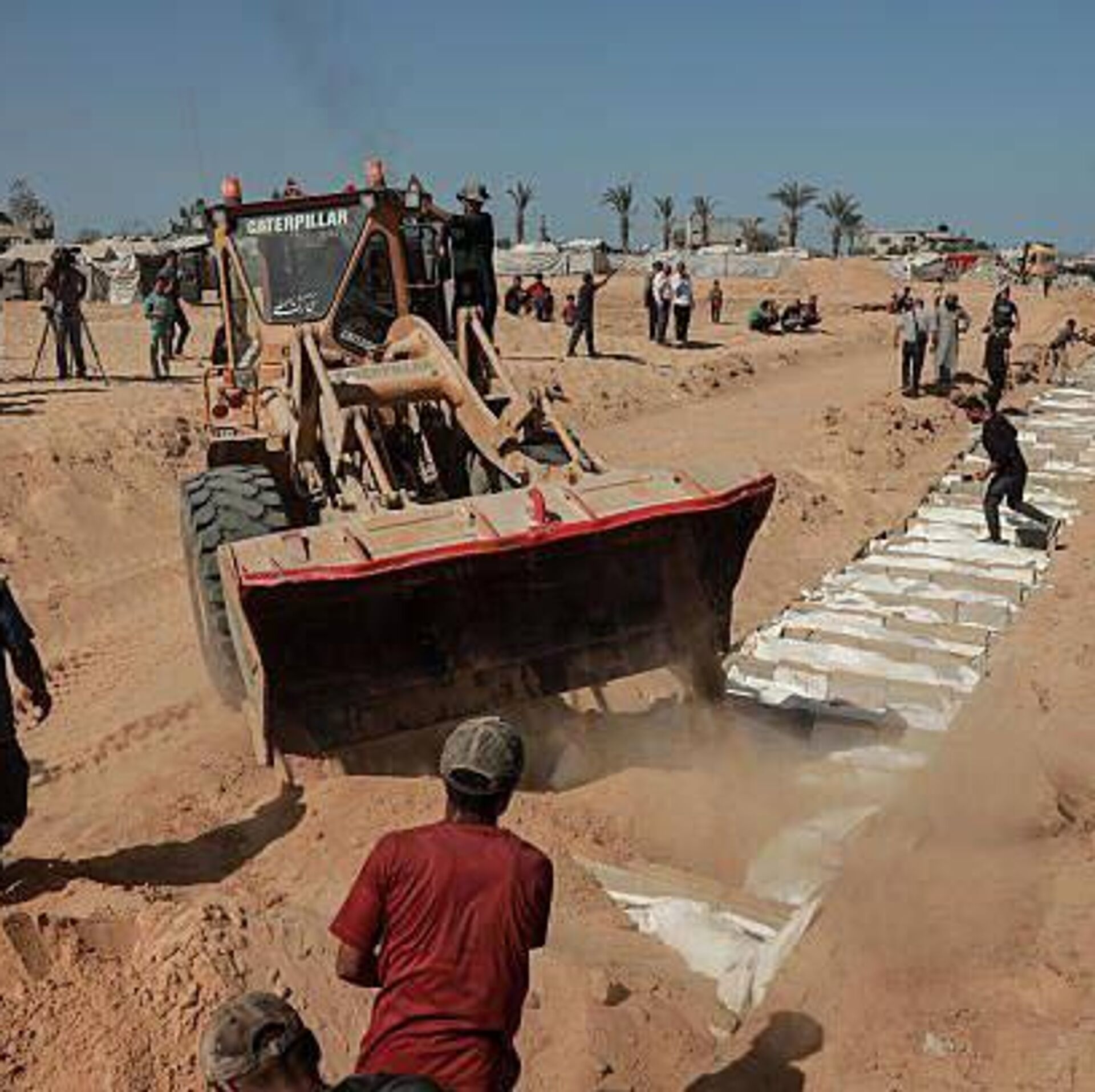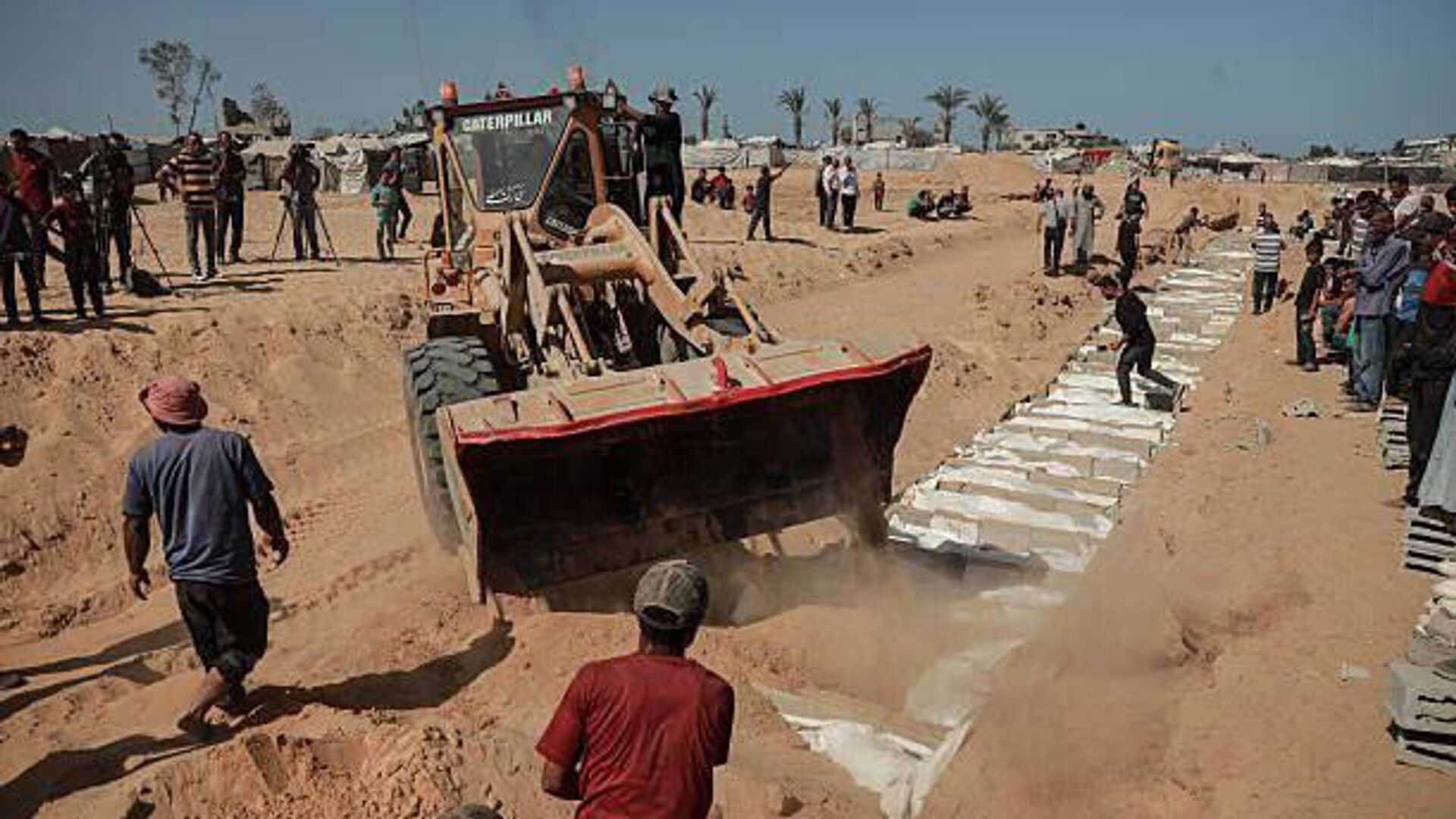 گور دسته جمعی اجساد 54 قربانی ناشناس در دیر البلح در مرکز نوار غزه
