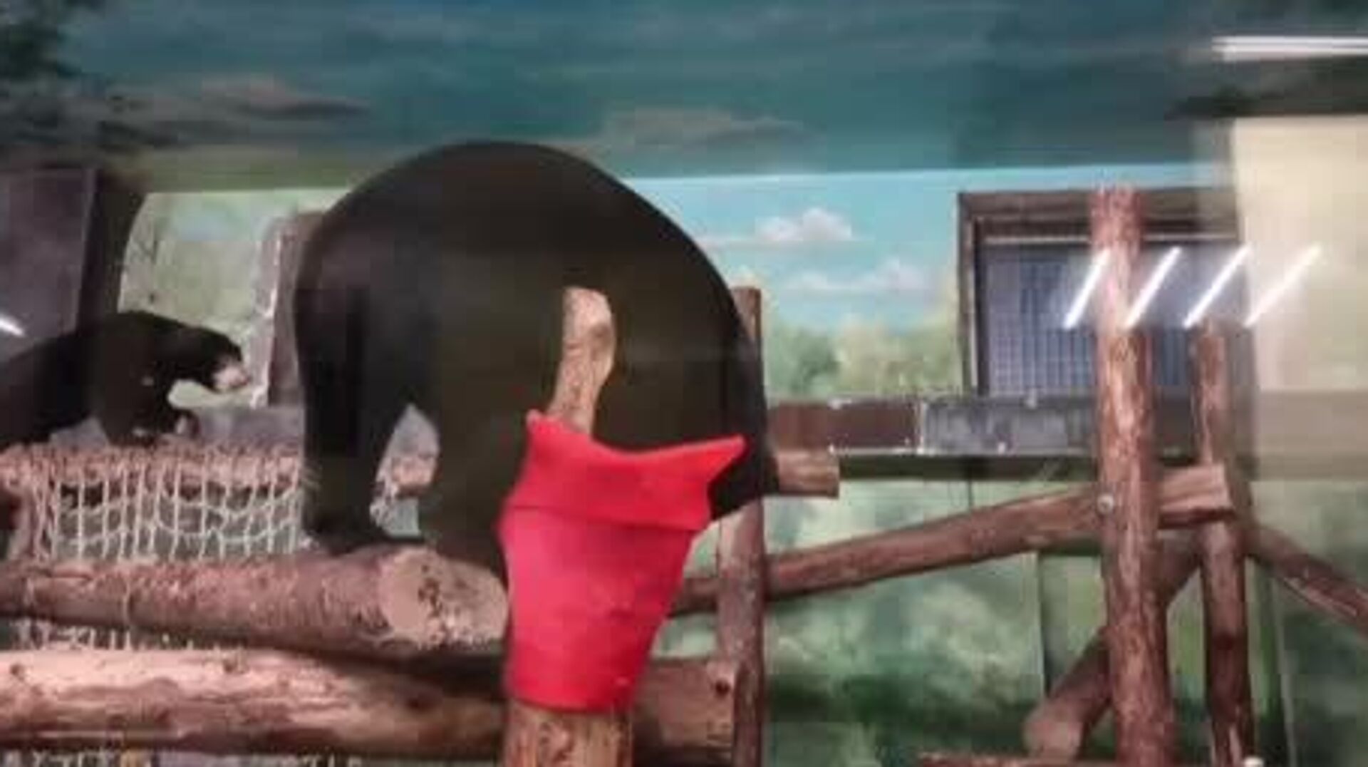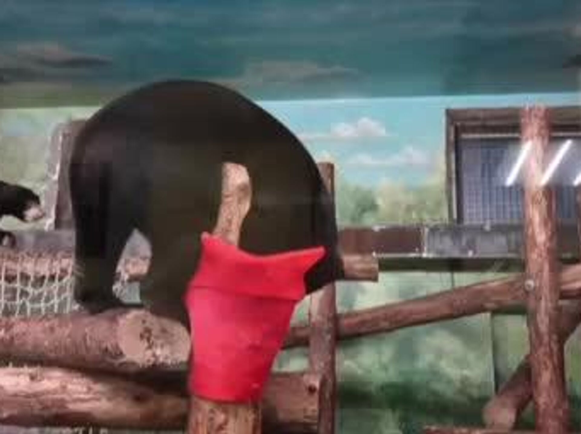 زوزدوچکا، خرس باغوحش مسکو، به خاطر تکههای سیب ریخته شده عصبانی شد