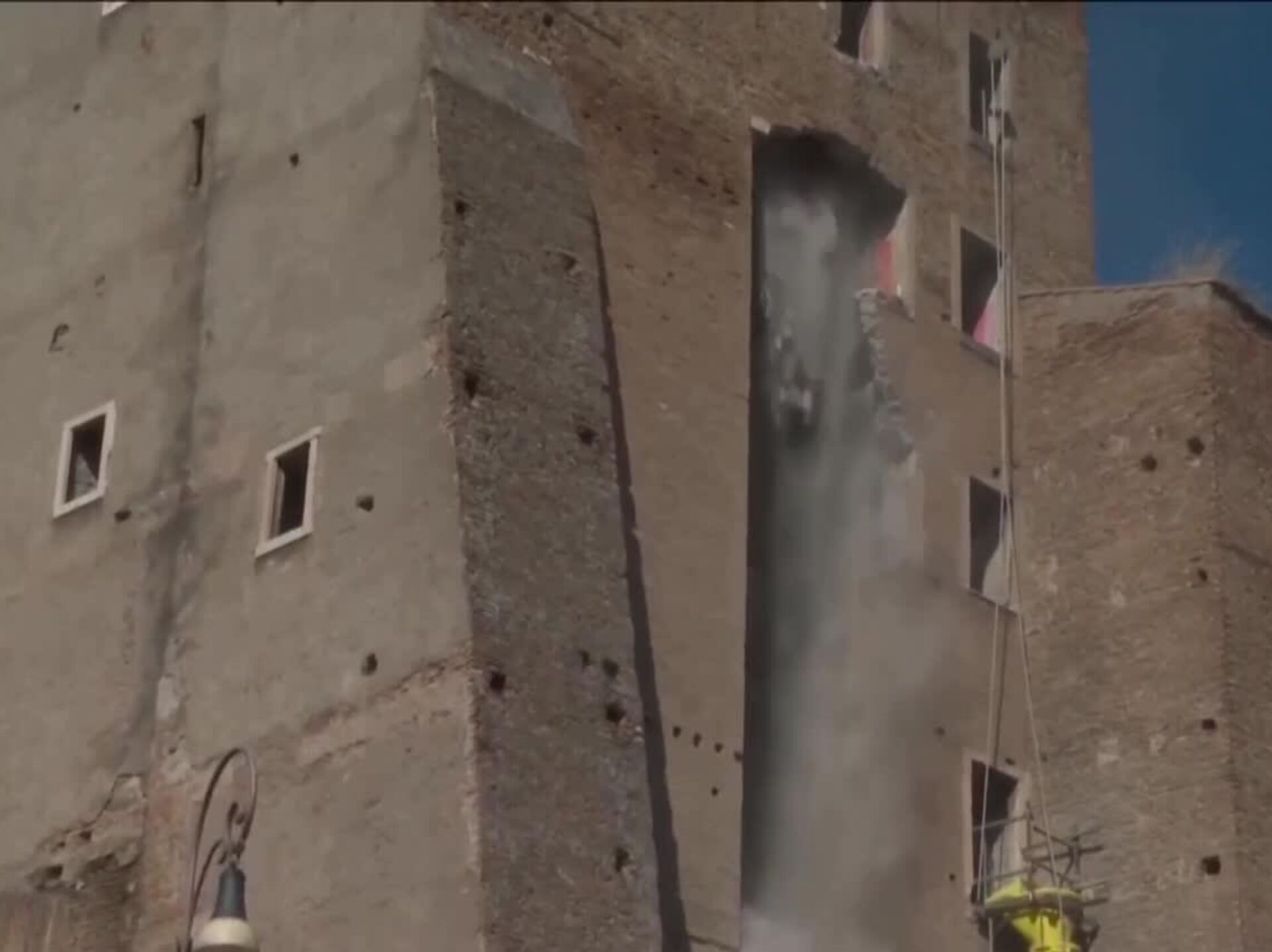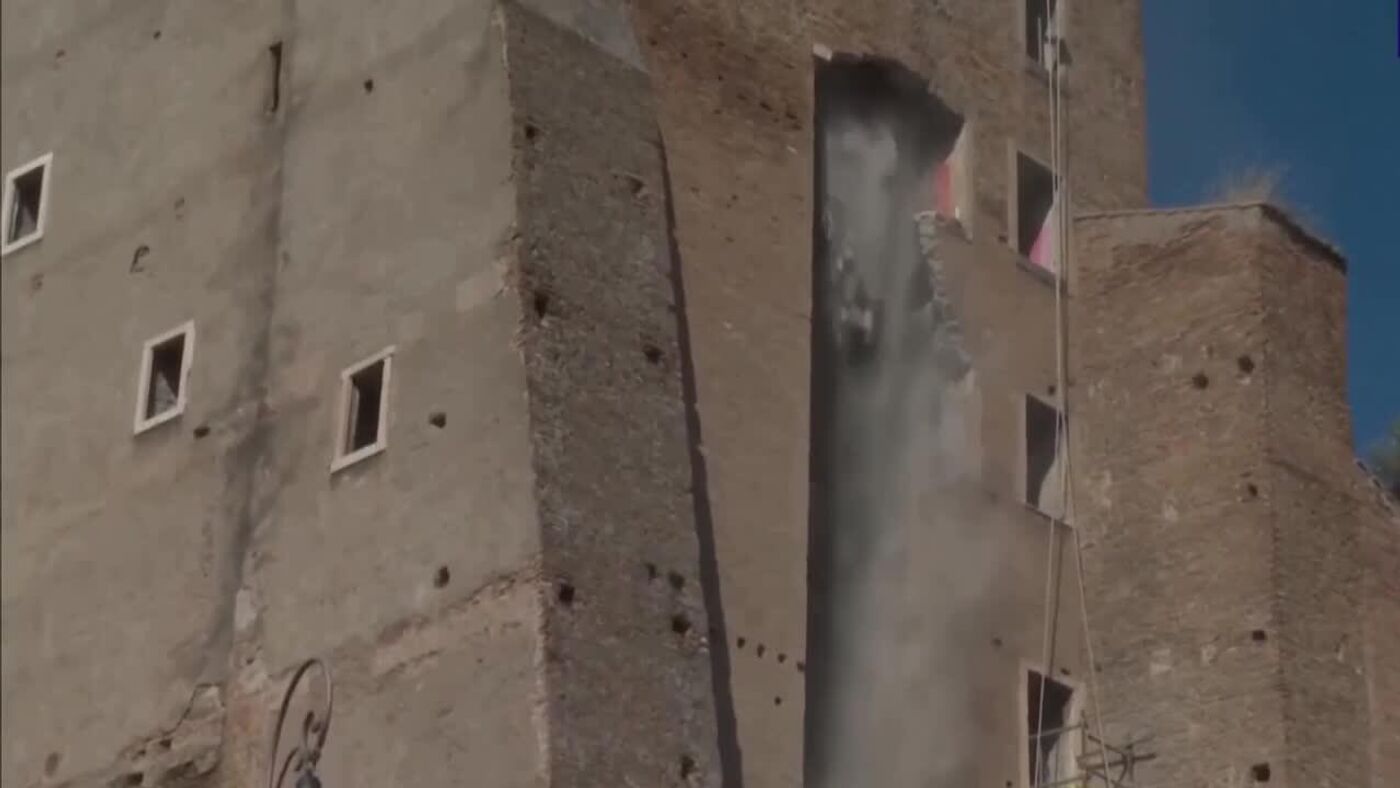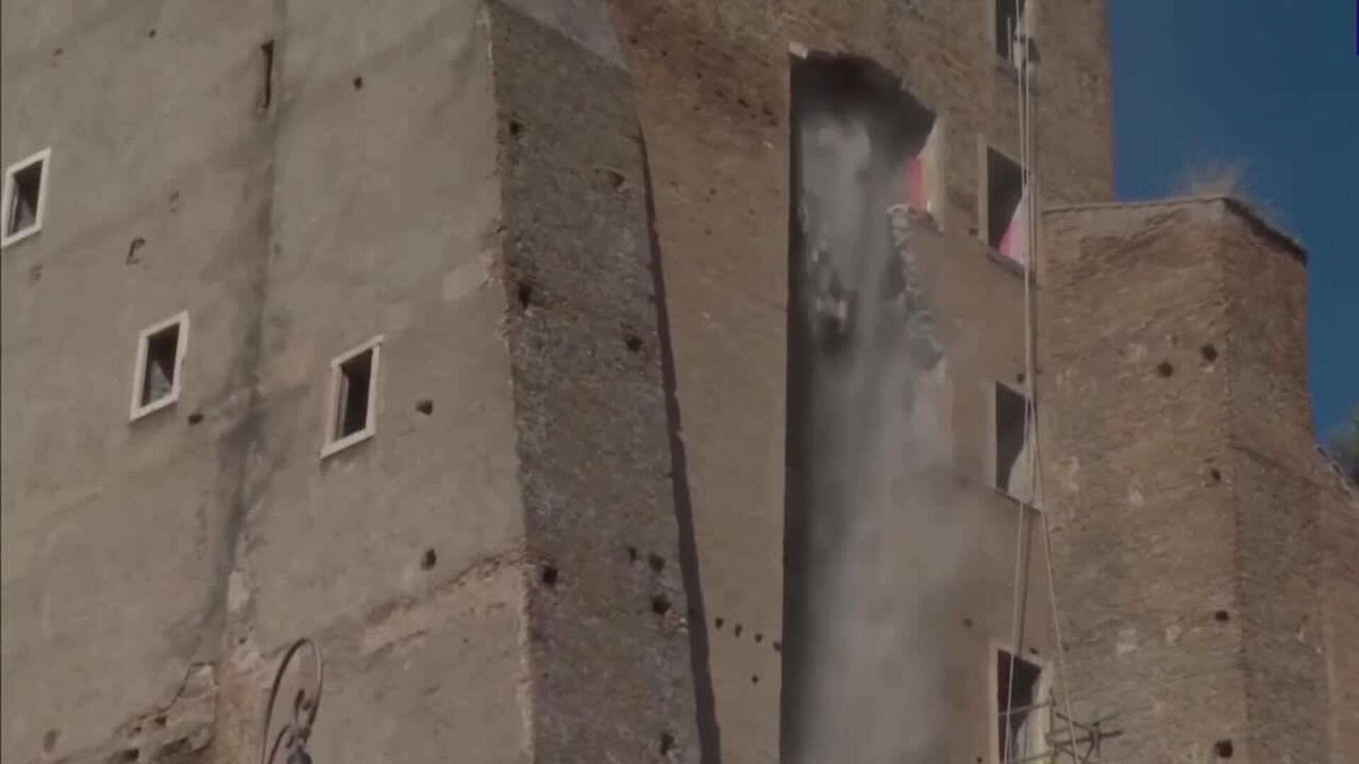 بخشی از برج قرون وسطایی کونتی در نزدیکی کولوسئوم در رم فرو ریخت