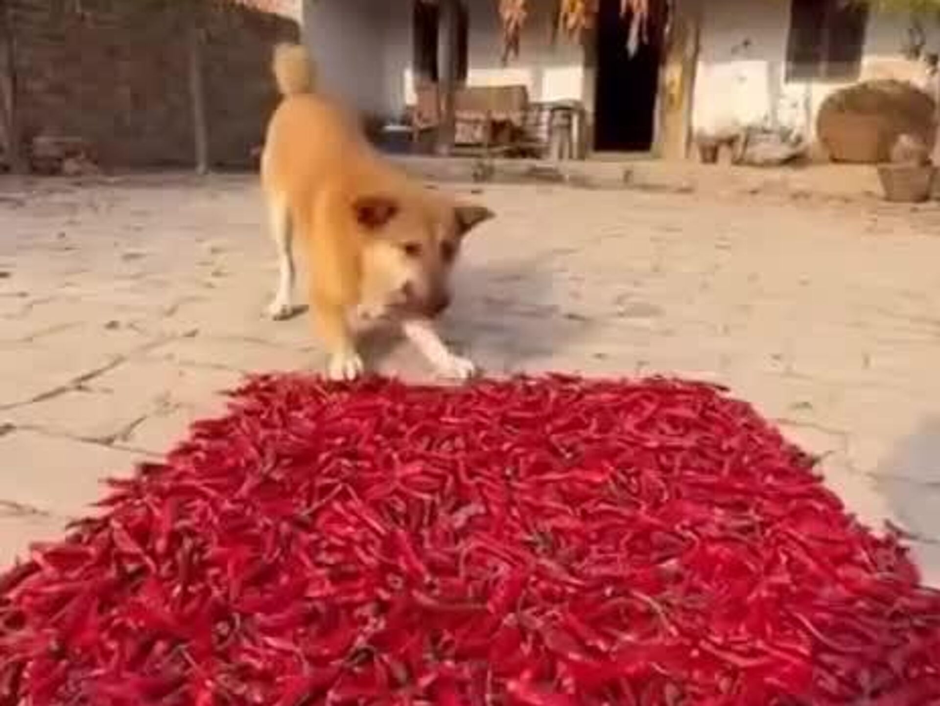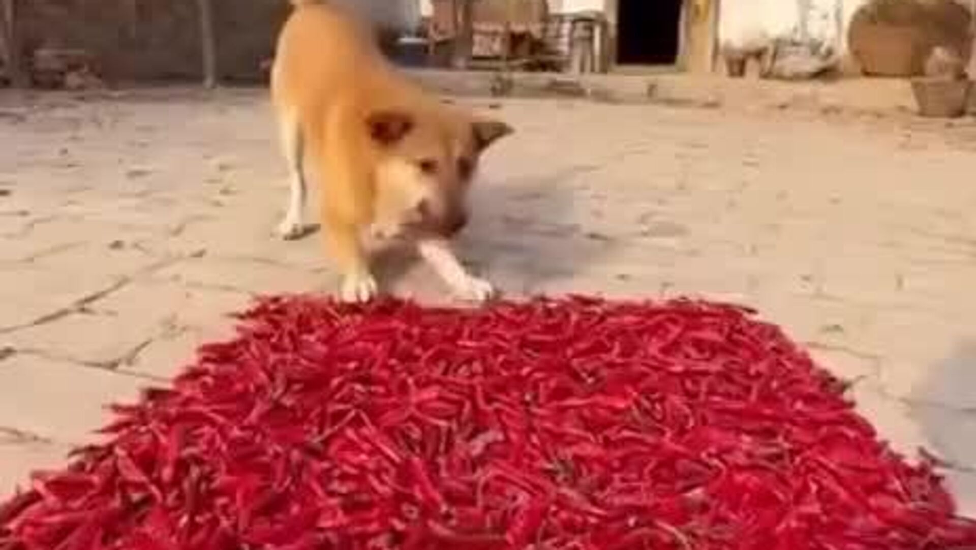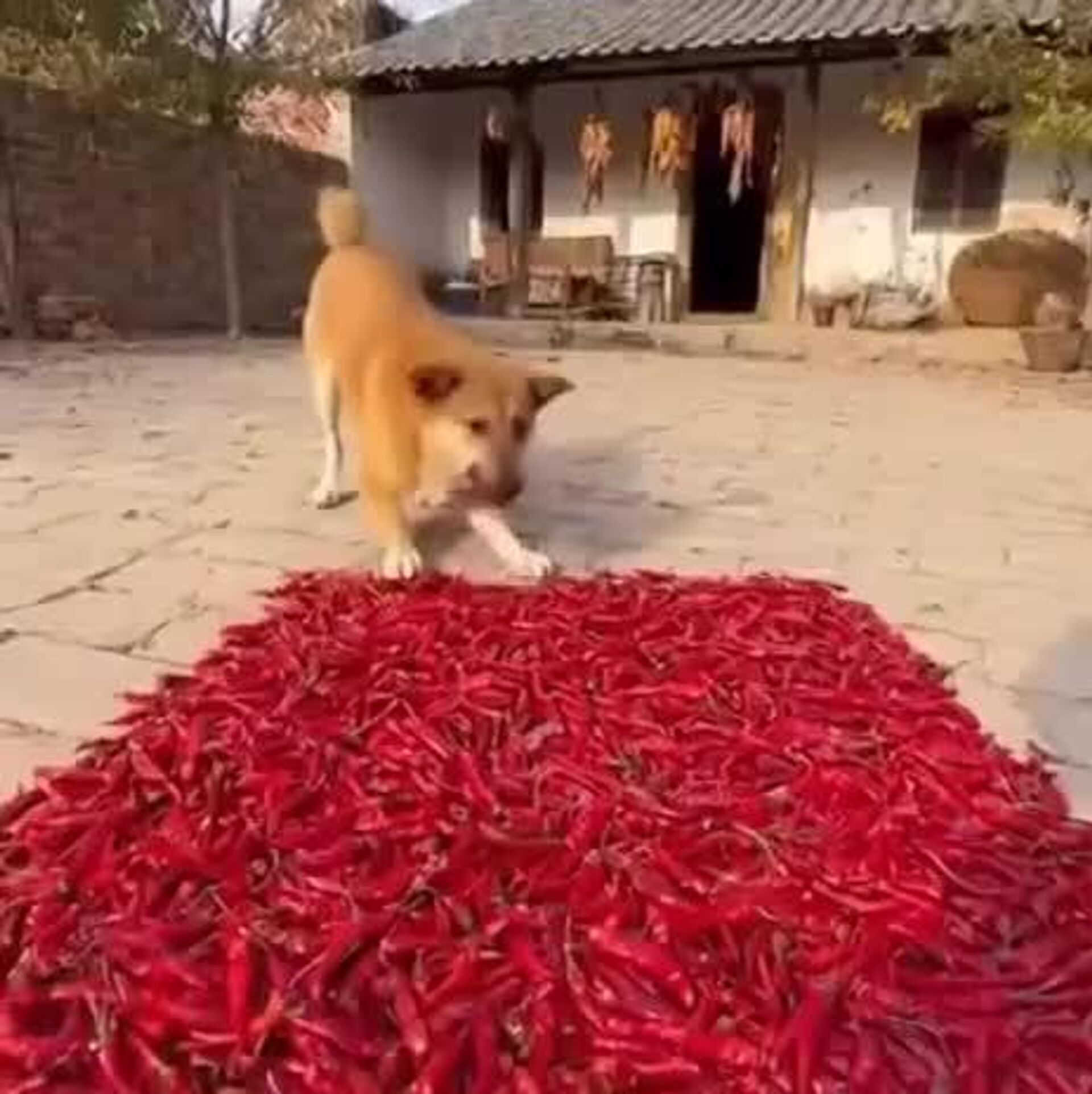 شگفتی یک سگ کنجکاو در چین که برای اولین بار فلفل قرمز خشک شده را امتحان کرد