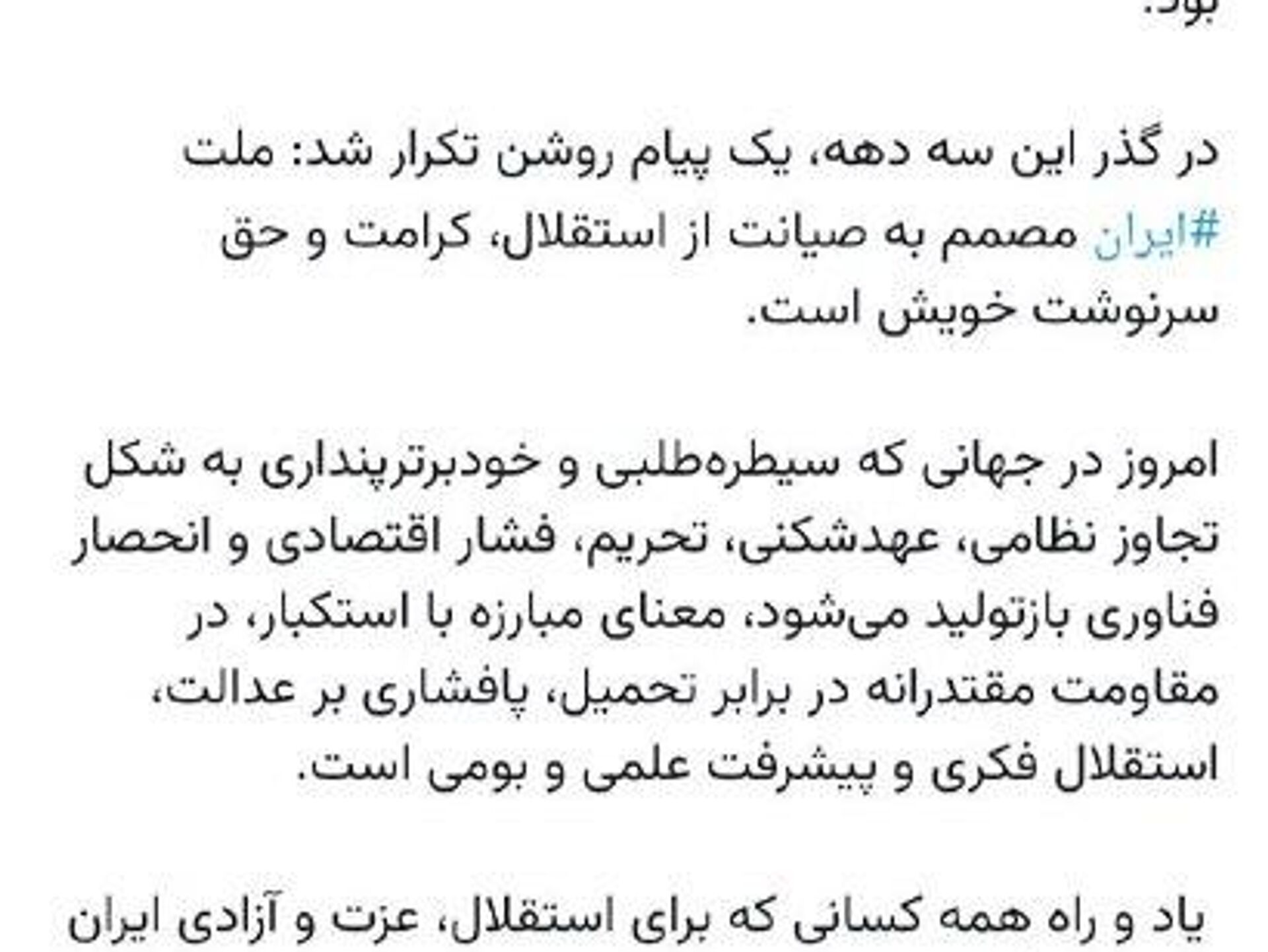 یاد و راه همه کسانی که برای استقلال، عزت و آزادی ایران ایستادند گرامی باد.