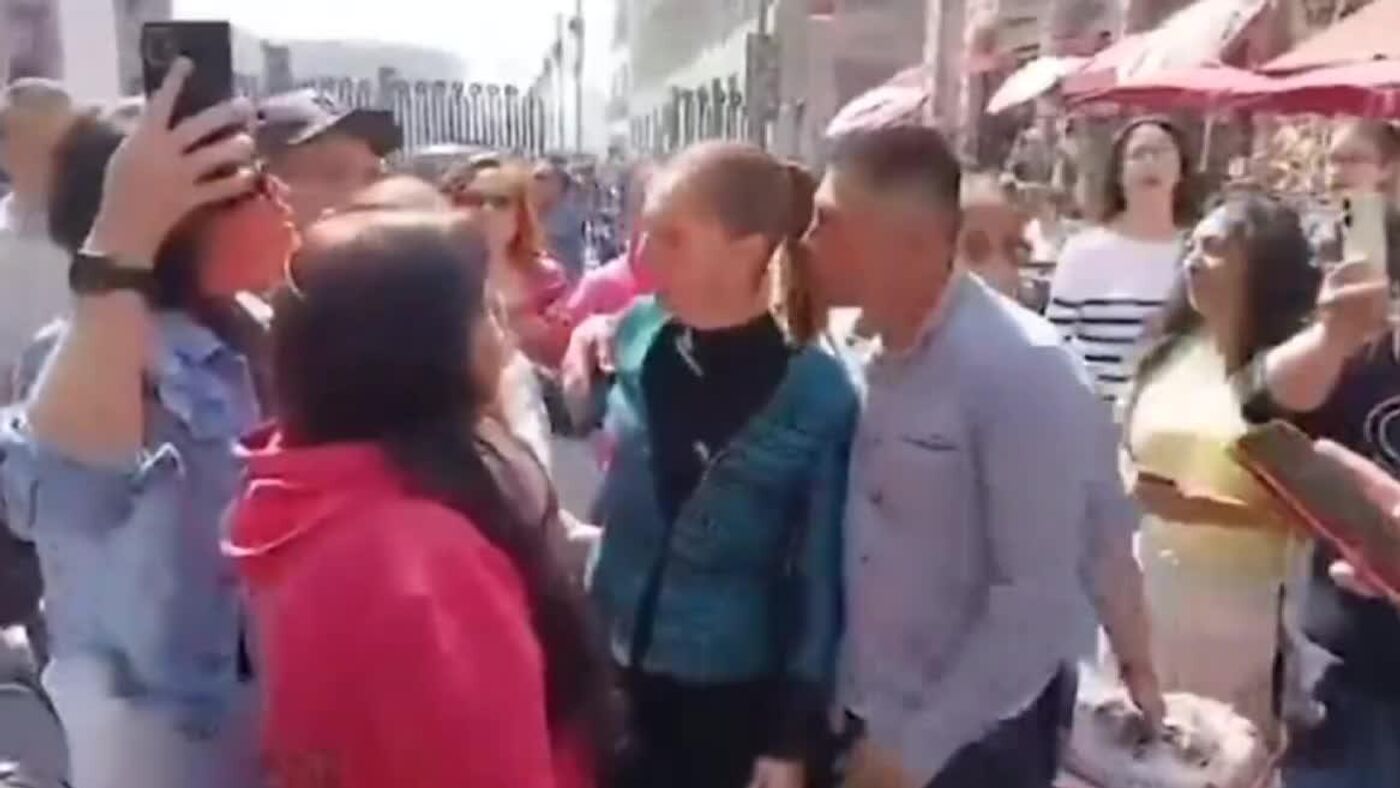 مردی ناشناس سعی کرد کلودیا شینباوم، رئیس جمهور مکزیک را در خیابان ببوسد