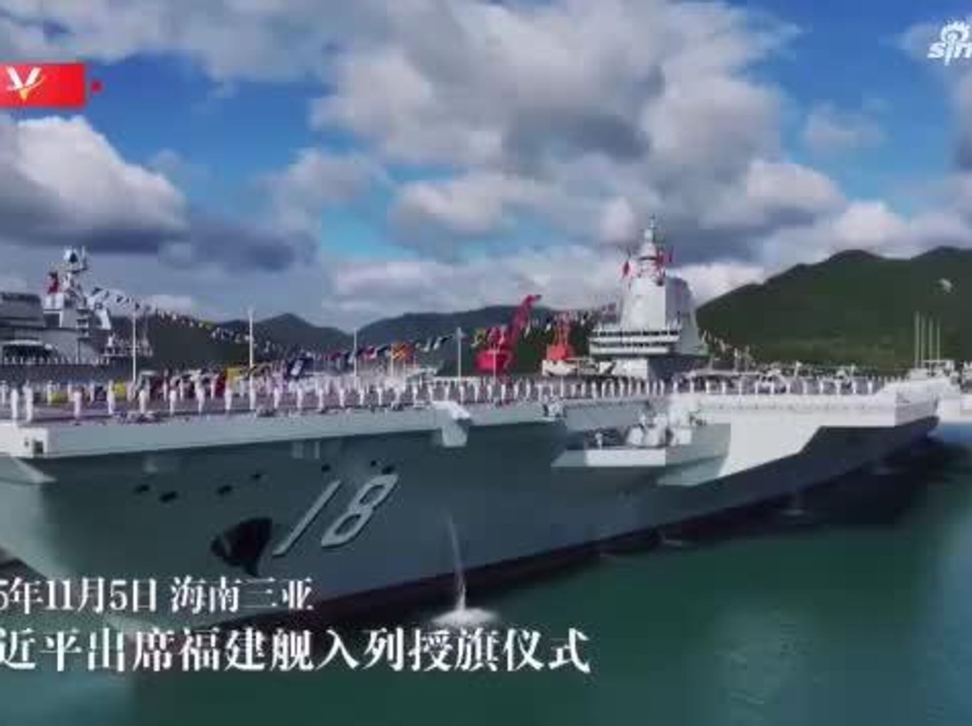 مراسم بهرهبرداری از سومین ناو هواپیمابر در 5 نوامبر در سانیا، استان هاینان برگزار شد. همچنین ژانگ شنگمین، معاون جدید کمیسیون نظامی مرکزی، کای چی، رئیس دبیرخانه کمیته مرکزی و ژانگ گوئوکینگ، معاون نخست وزیر، در این مراسم حضور داشتند. این ناو هواپیمابر در سال 2022 به آب انداخته شد.