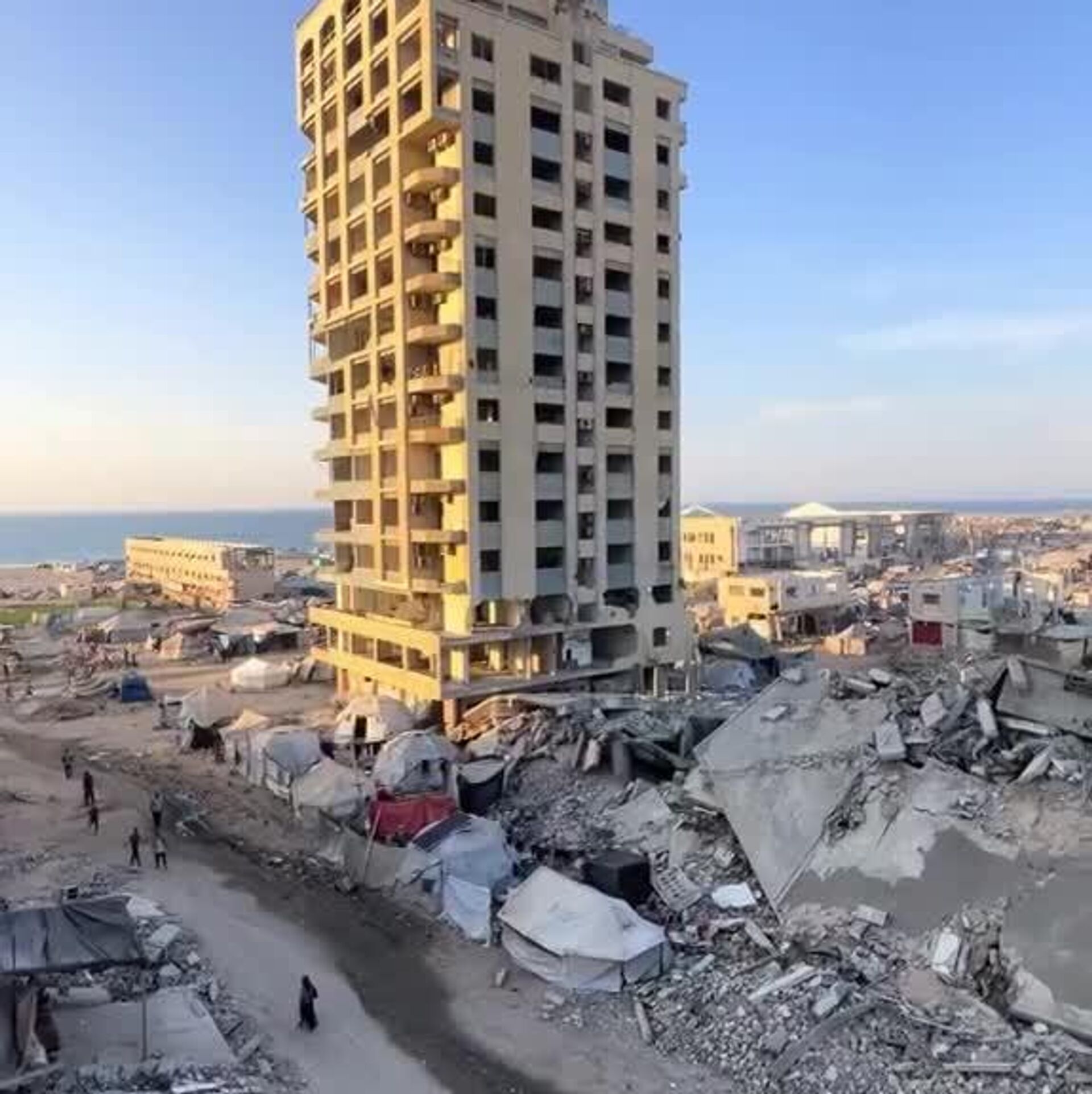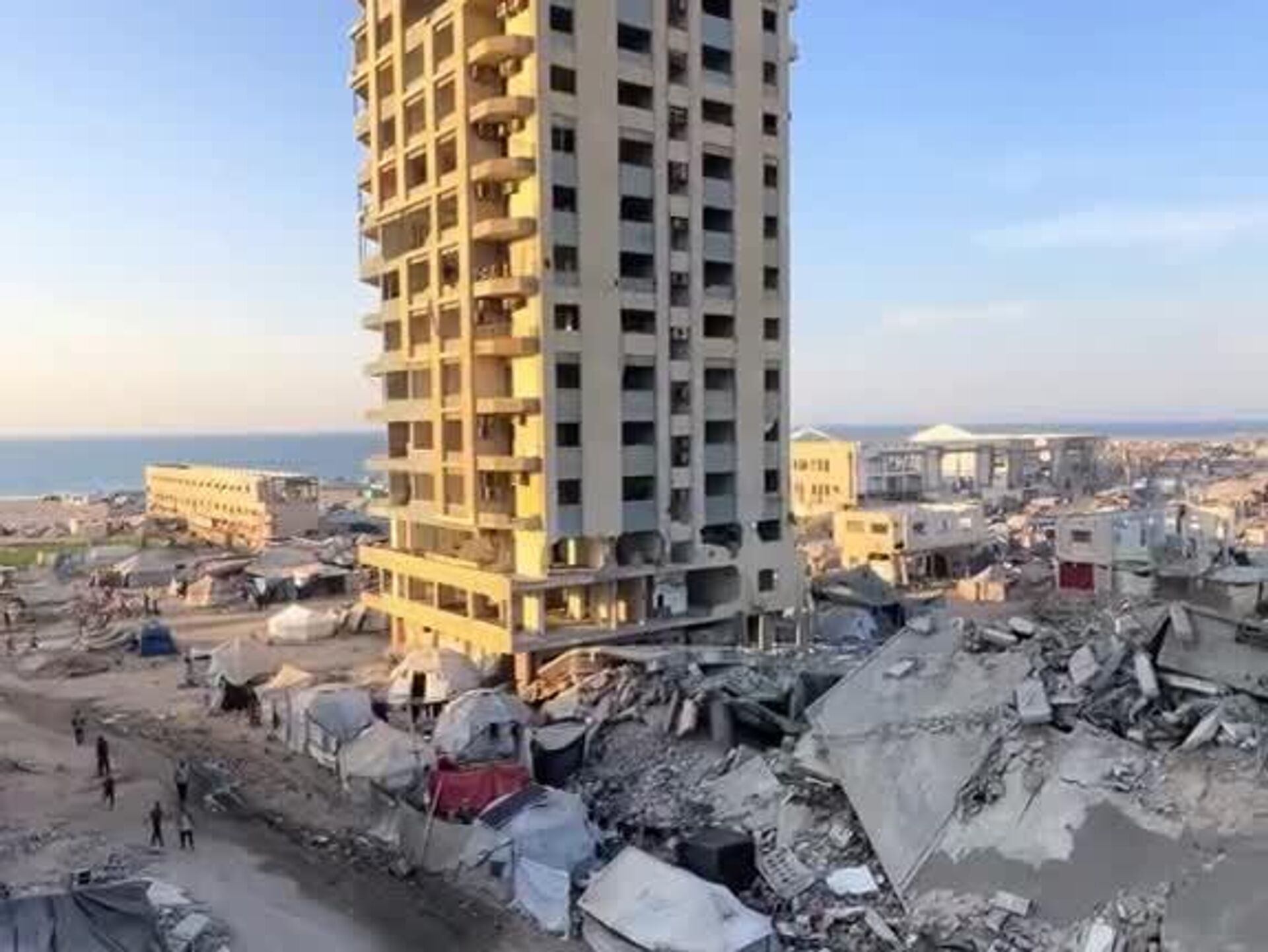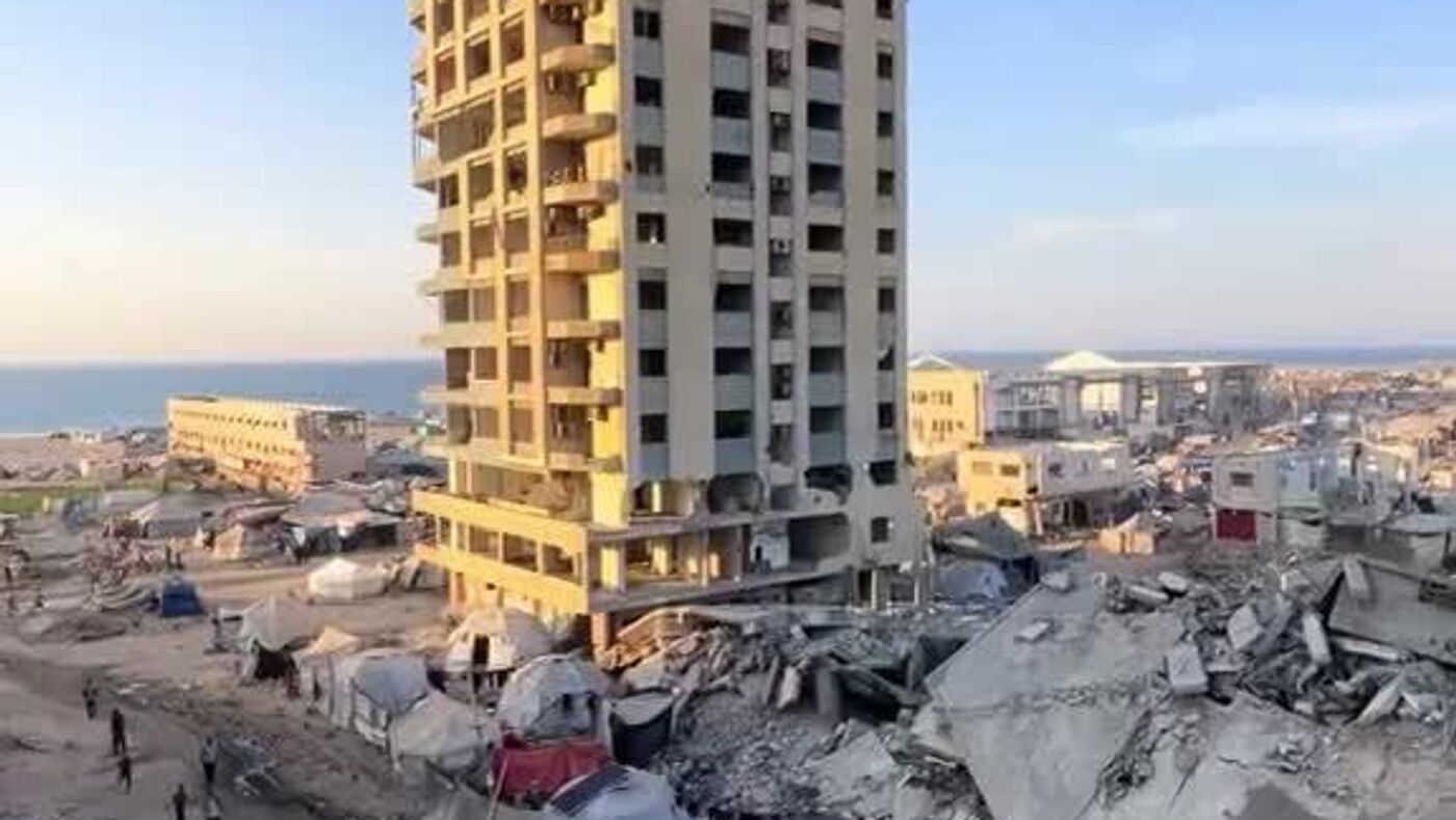 این ویدئو محلهای در شهر غزه را نشان میدهد که در اثر بمباران اسرائیل ویران شده است.