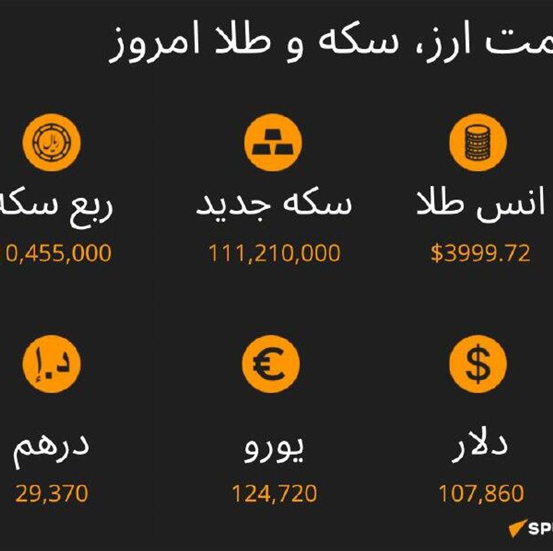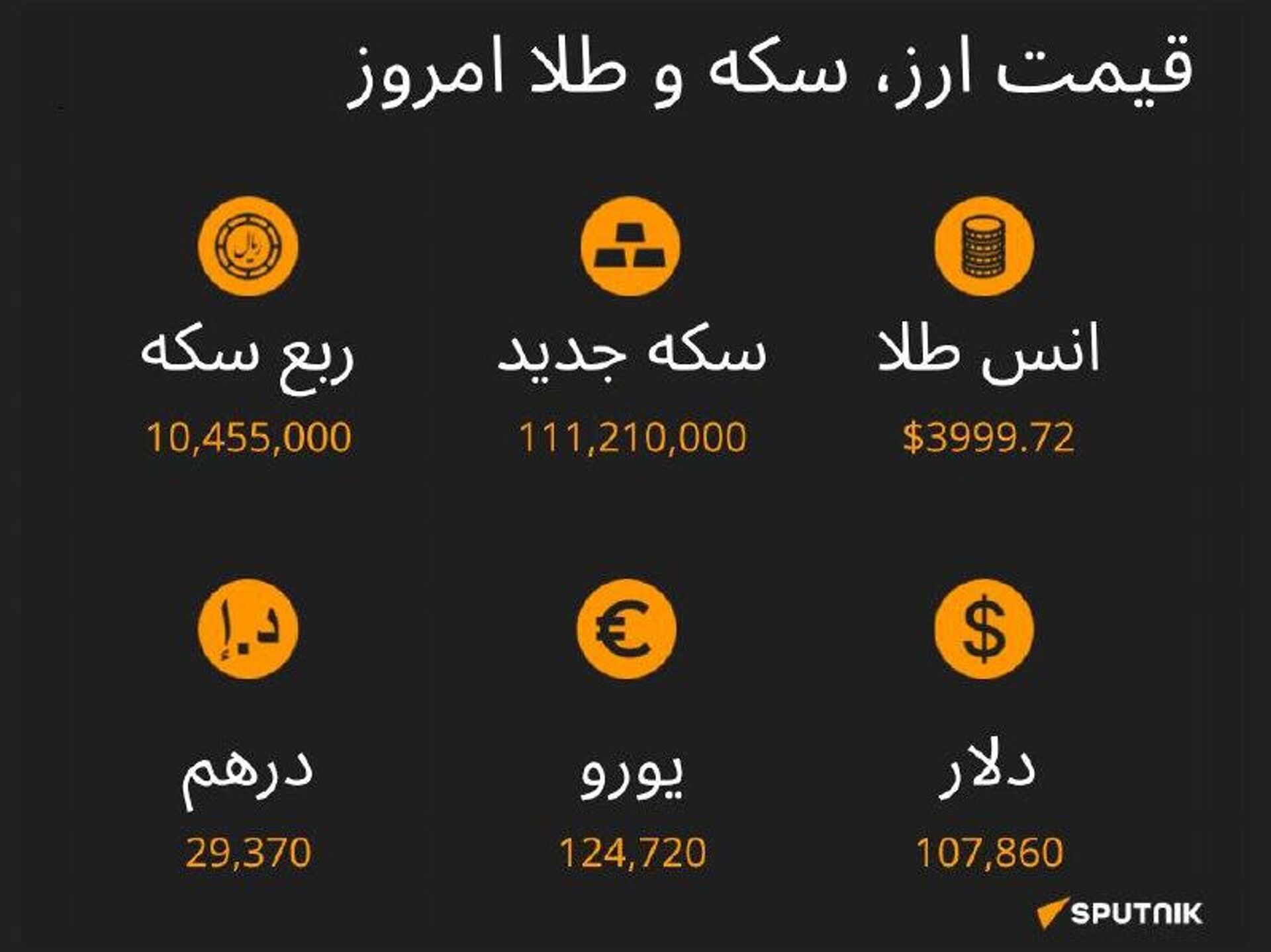 نرخ ارز، سکه و طلا تا ساعت 11:00 ما را در سایت و تلگرام اسپوتنیک دنبال کنید Sputnik Iran | Telegram
