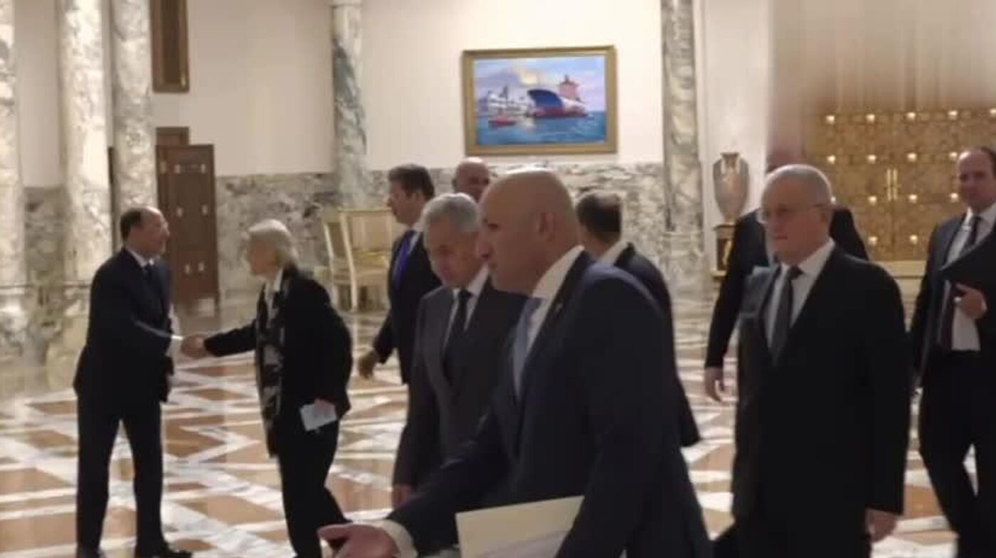 یک هیئت روسی به ریاست سرگی شویگو، دبیر شورای امنیت روسیه برای گفتگو با رهبران ارشد سیاسی و نظامی مصر وارد کاخ ریاست جمهوری در قاهره، پایتخت مصر، شد