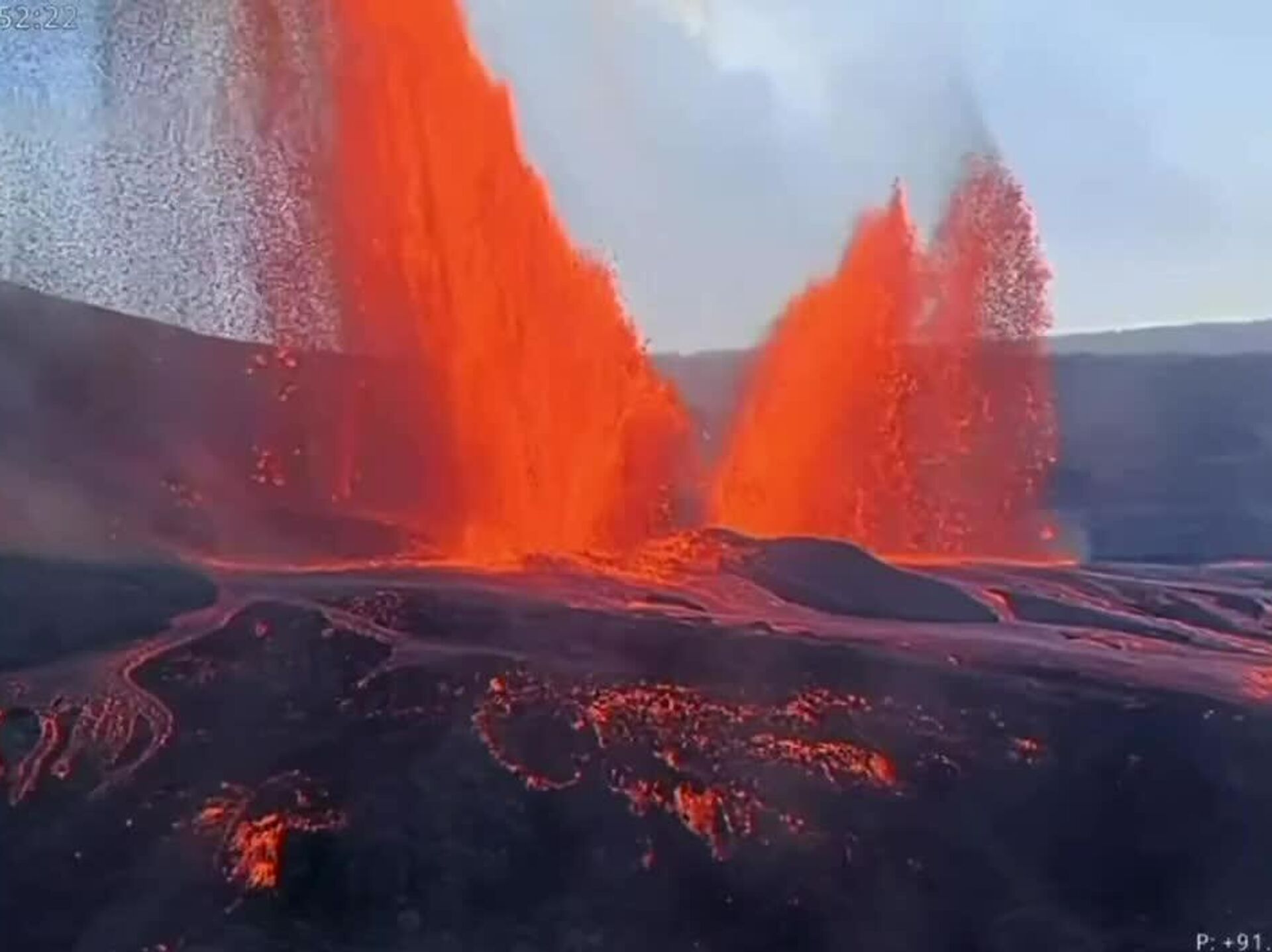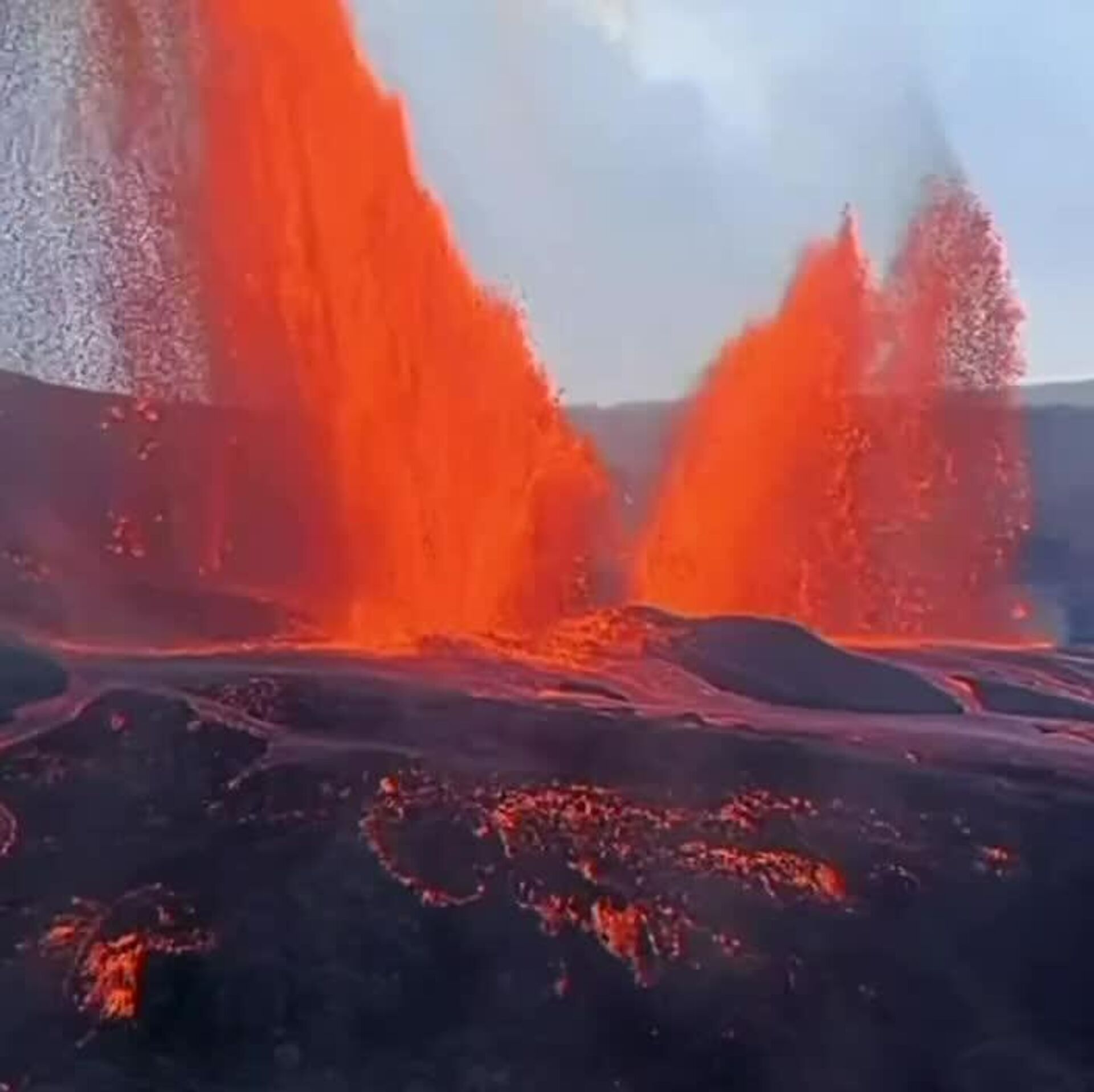 این فوران آتشفشان ستونهای عظیمی از گدازه را به بیرون پرتاب میکند.