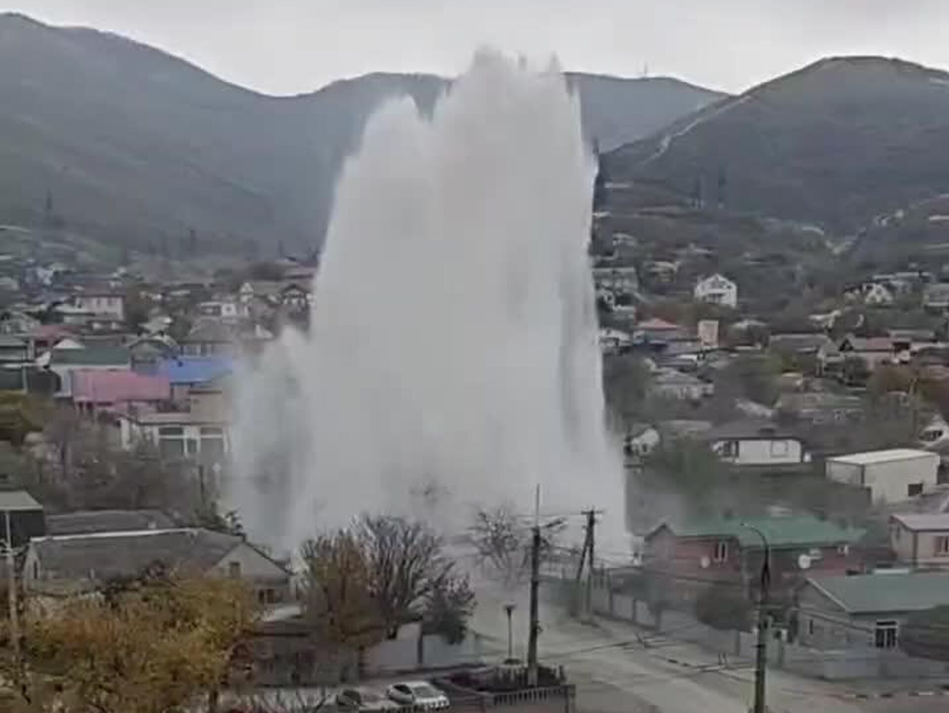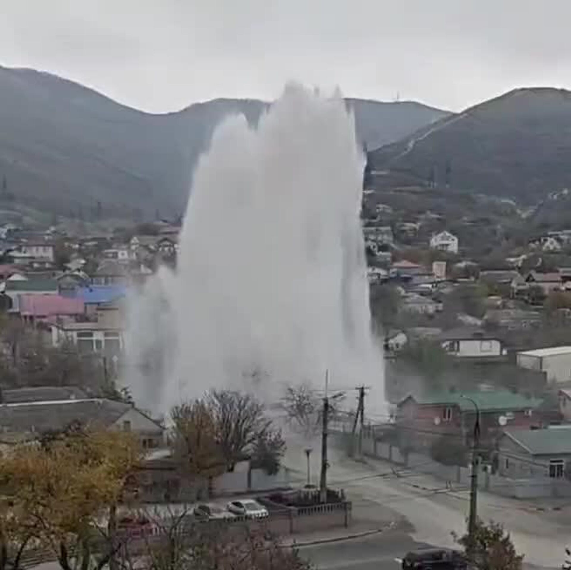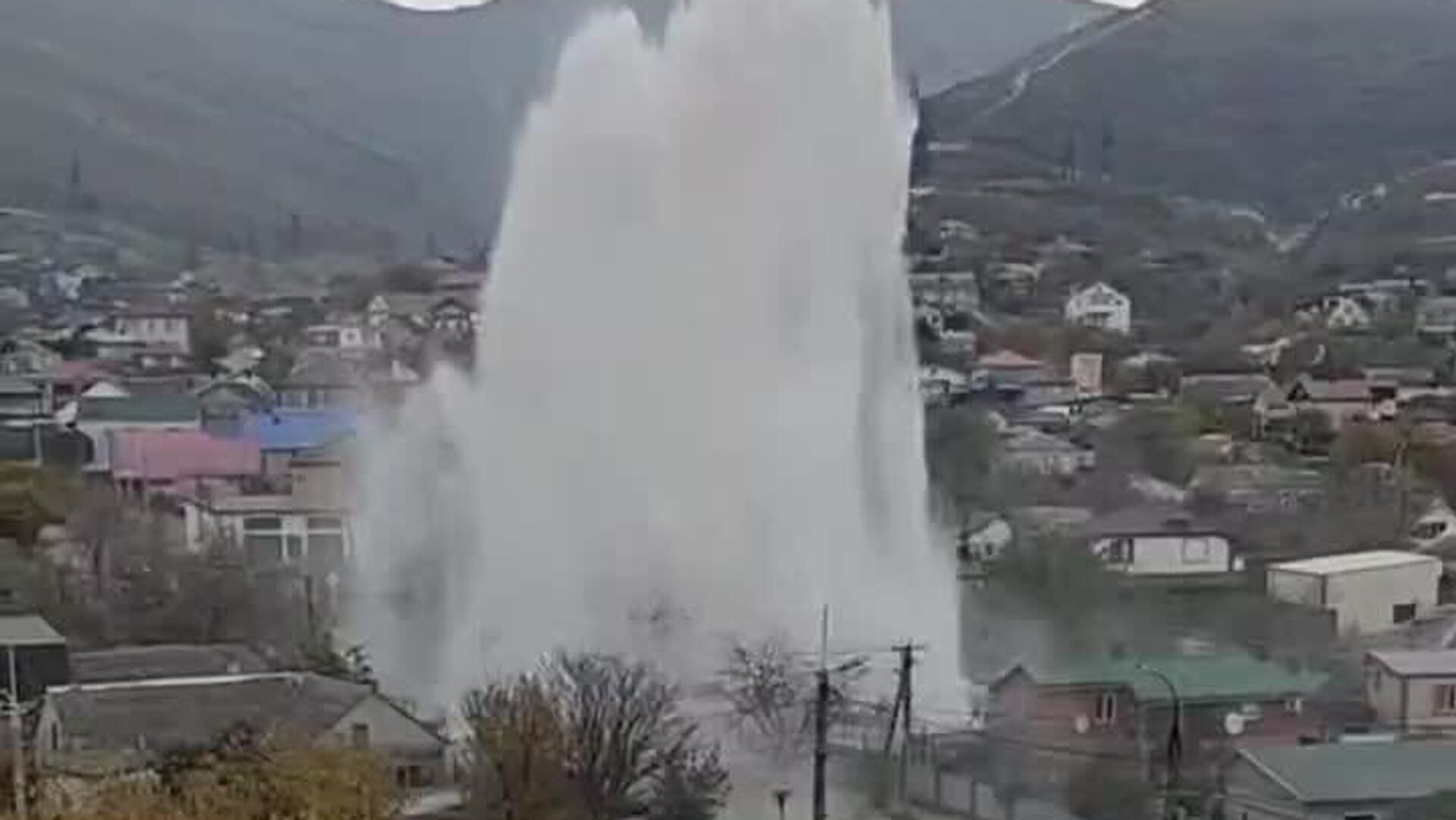 ترکیدگی لوله باعث ایجاد فواره بزرگی در نووروسیسک روسیه شده است. آب مستقیماً روی سقف خانهها میریزد