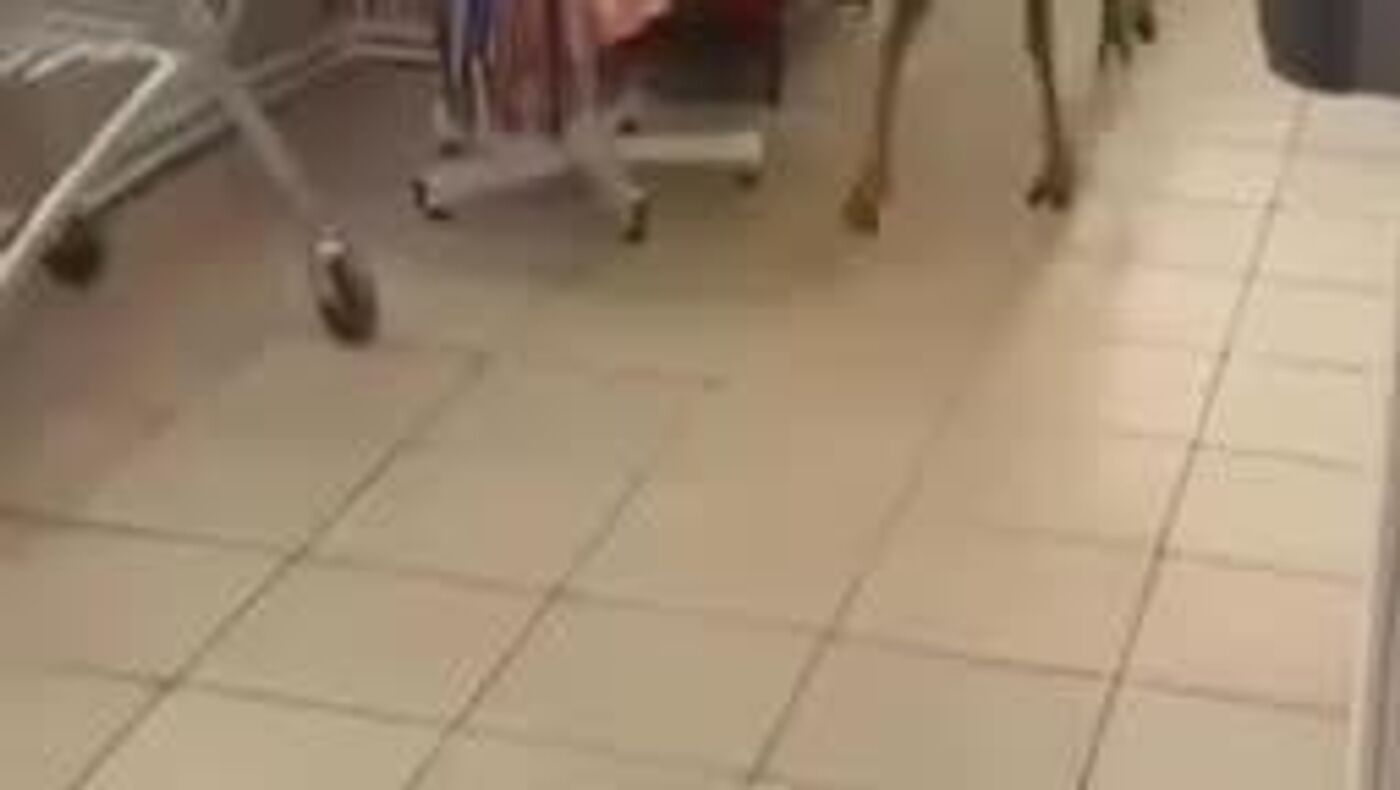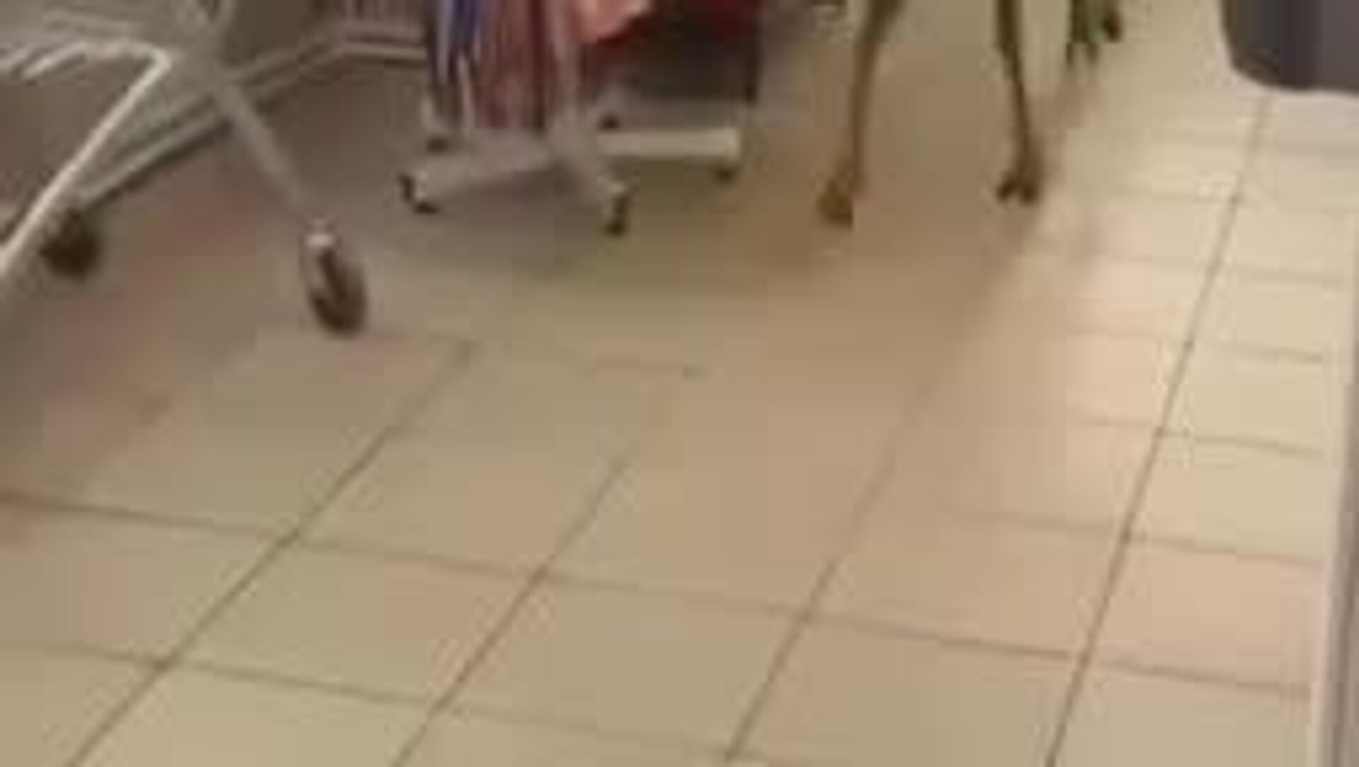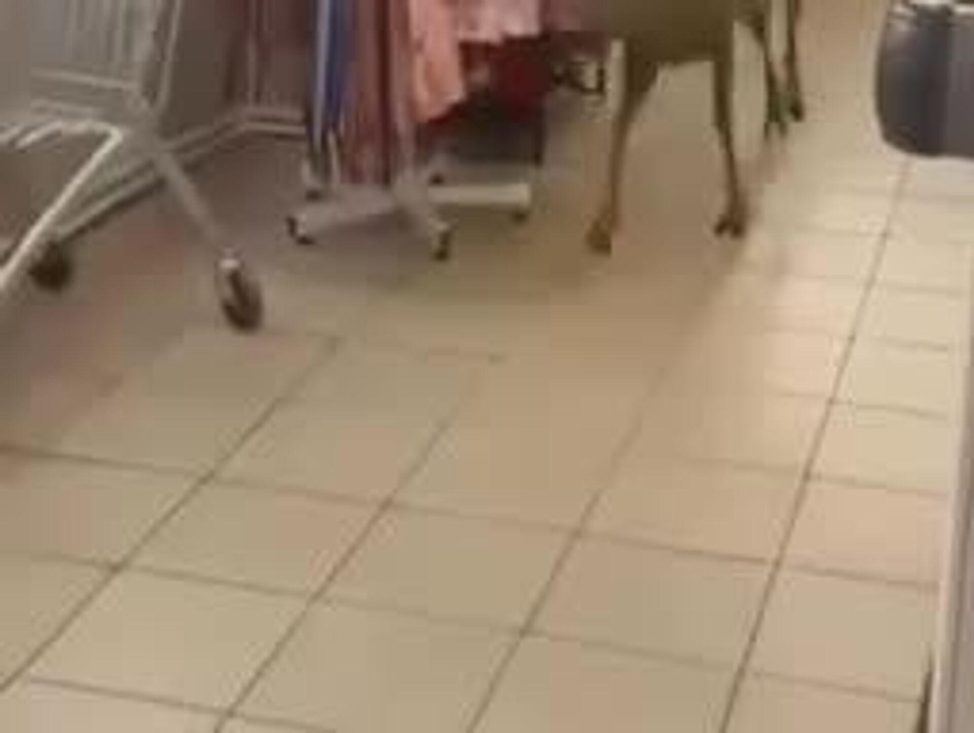 یک گوزن وحشی به طور تصادفی وارد یک فروشگاه مواد غذایی در منطقه کراسنودار روسیه شد