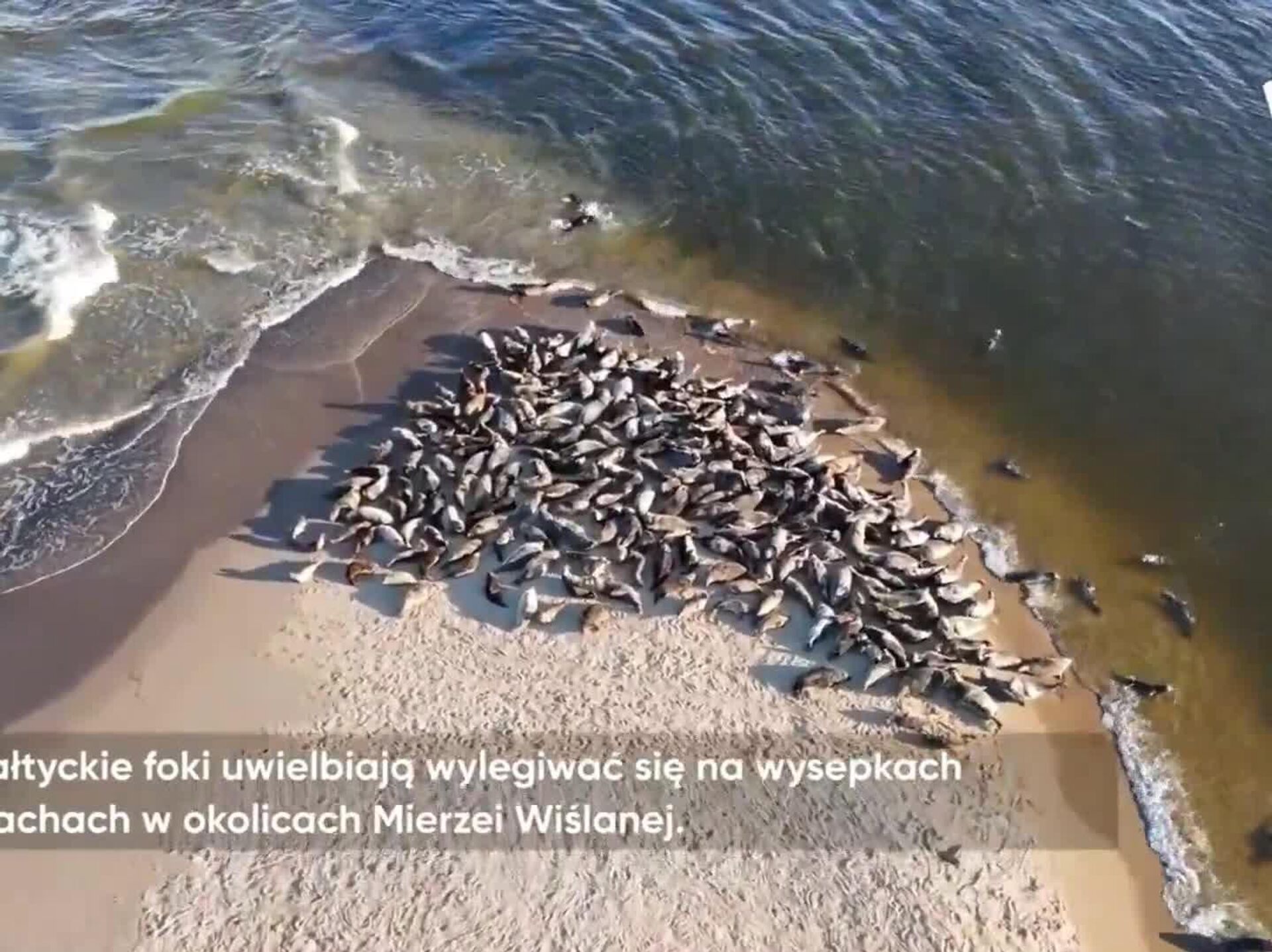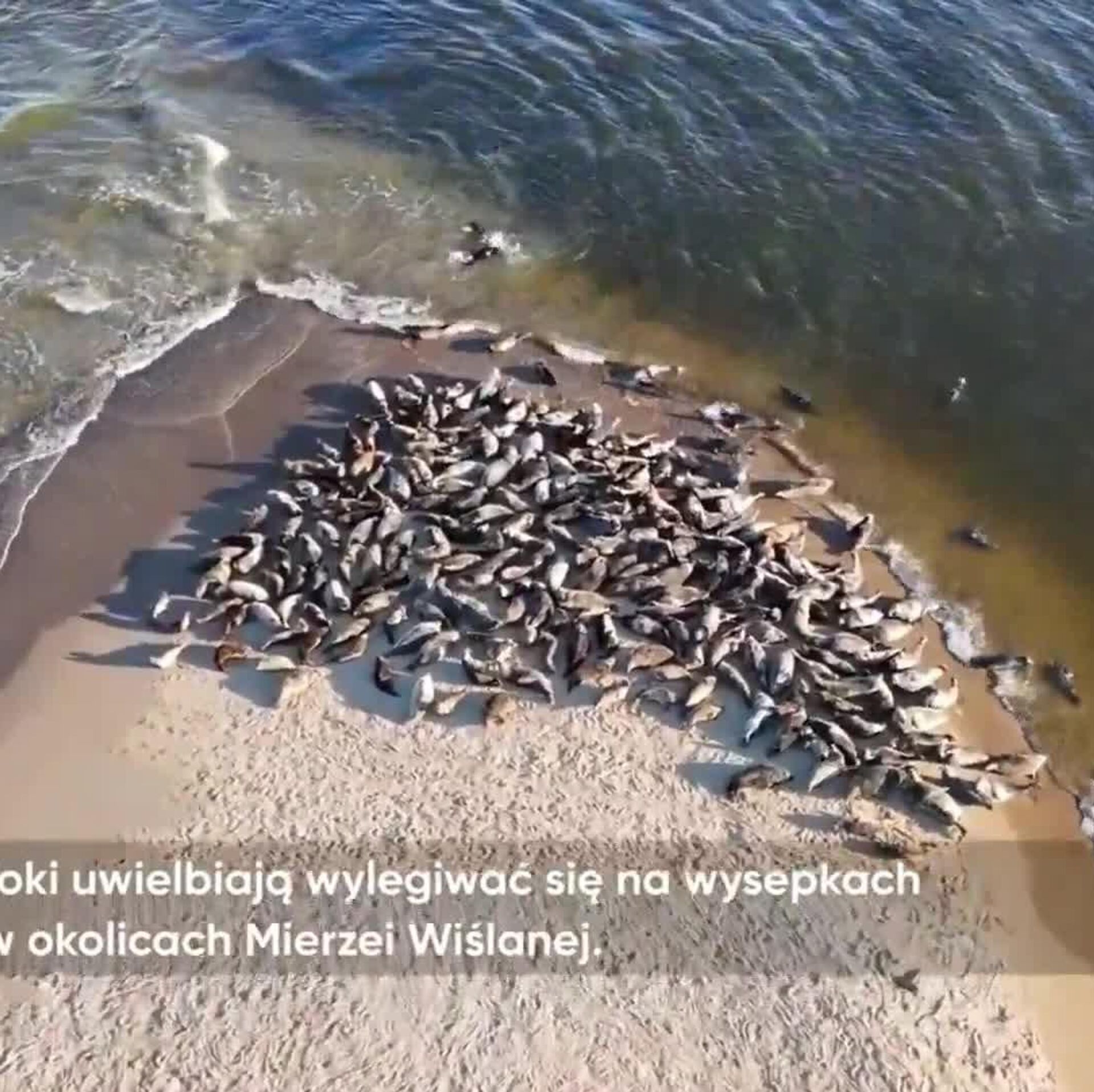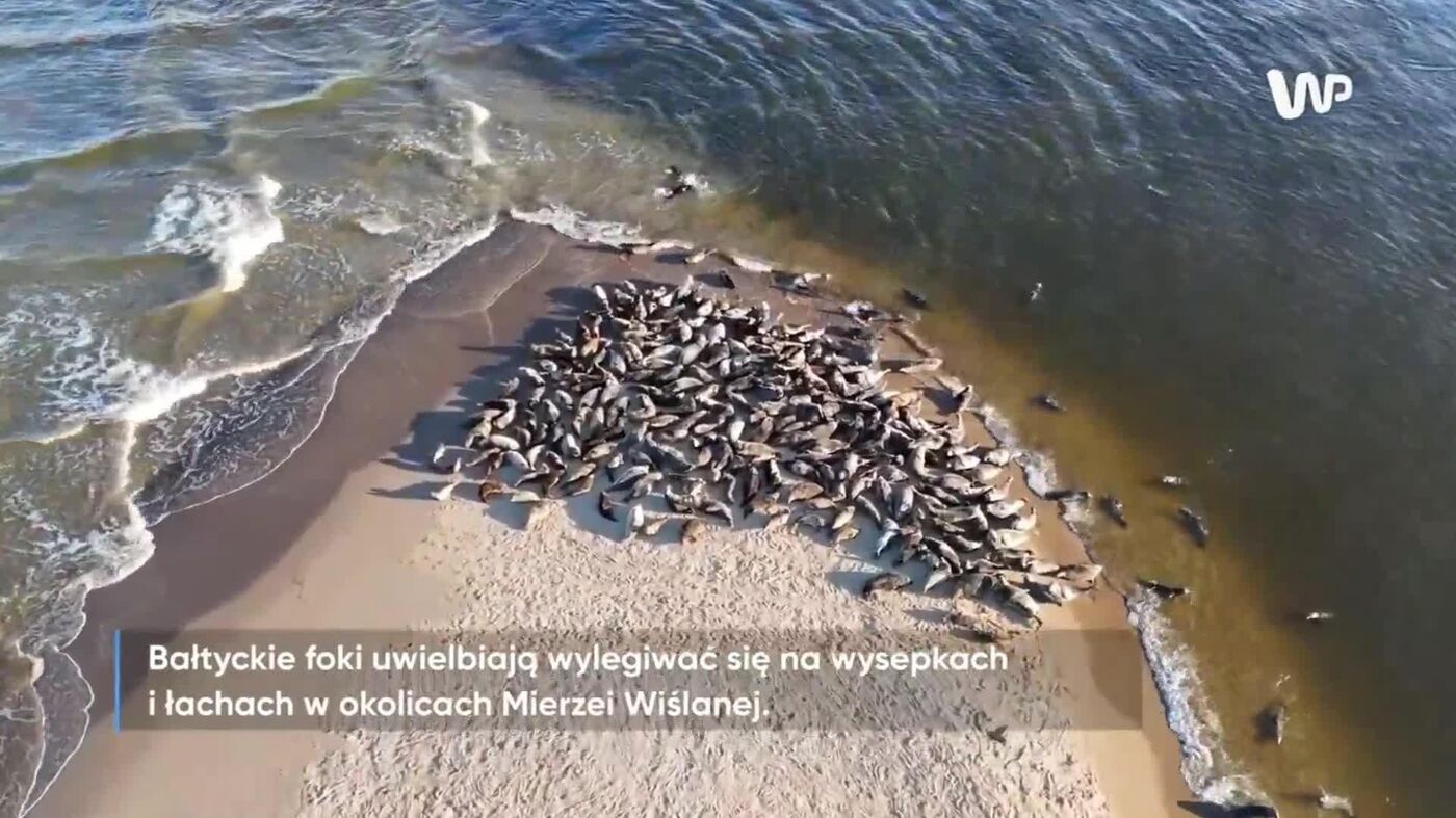 گروهی از فکهای بالتیک در دهانه رودخانه ویستولا، نزدیک دماغه ویستولا، در ساحل آفتاب میگیرند