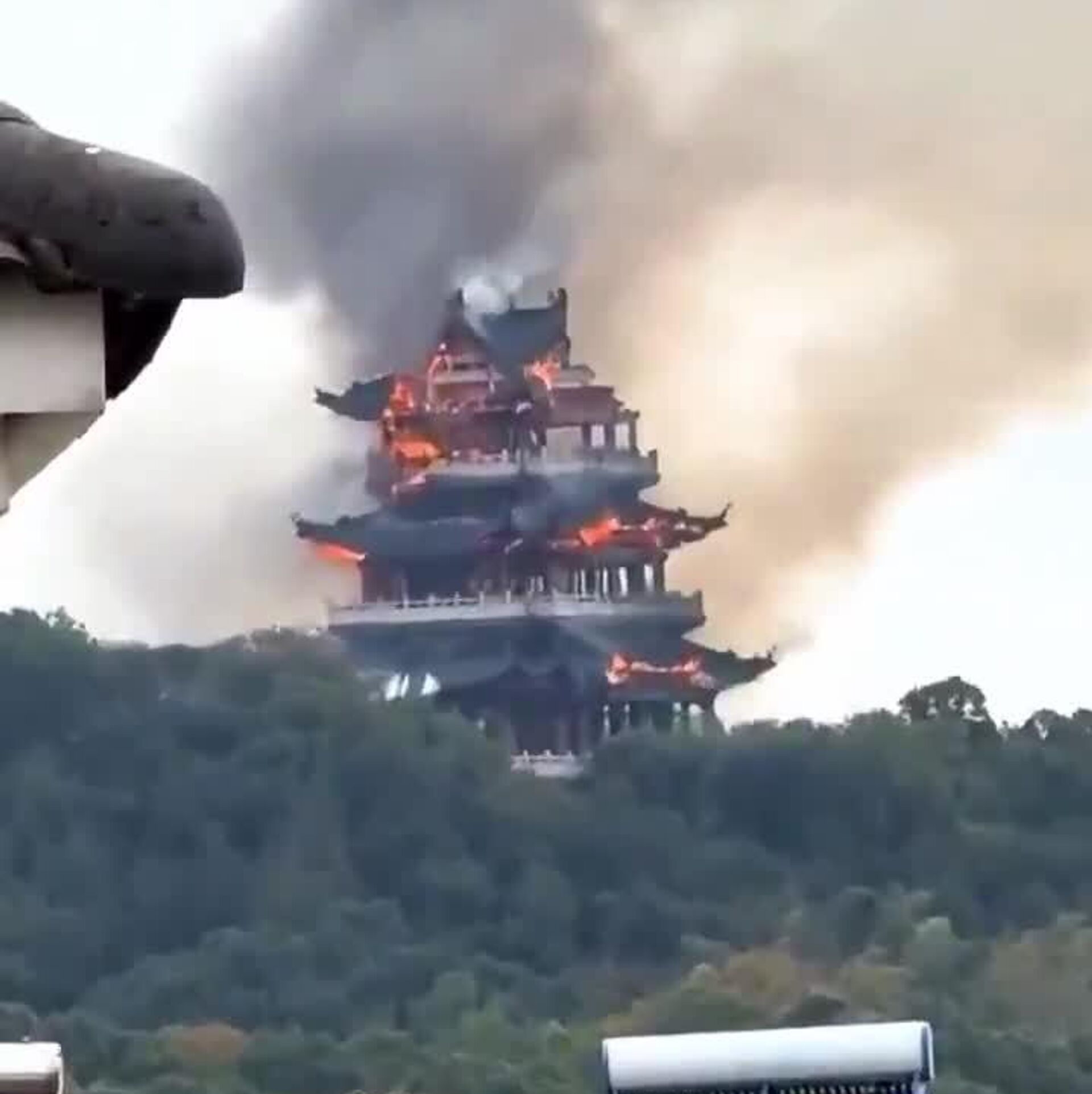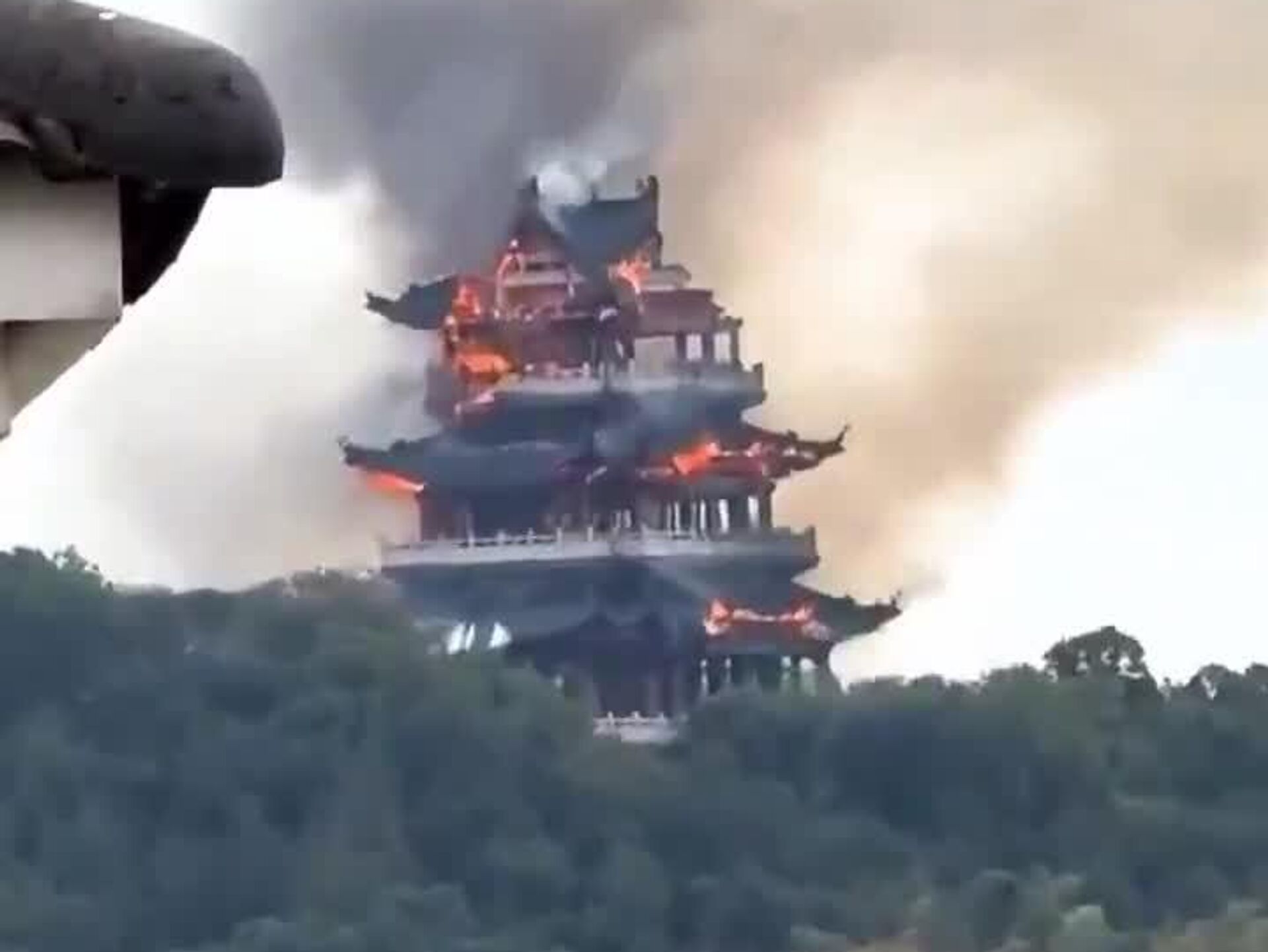 آتشسوزی در معبد یونگکینگ در ژانگجیاگانگ، استان جیانگسو، چین رخ داد و عمارت ونچانگ را ویران کرد