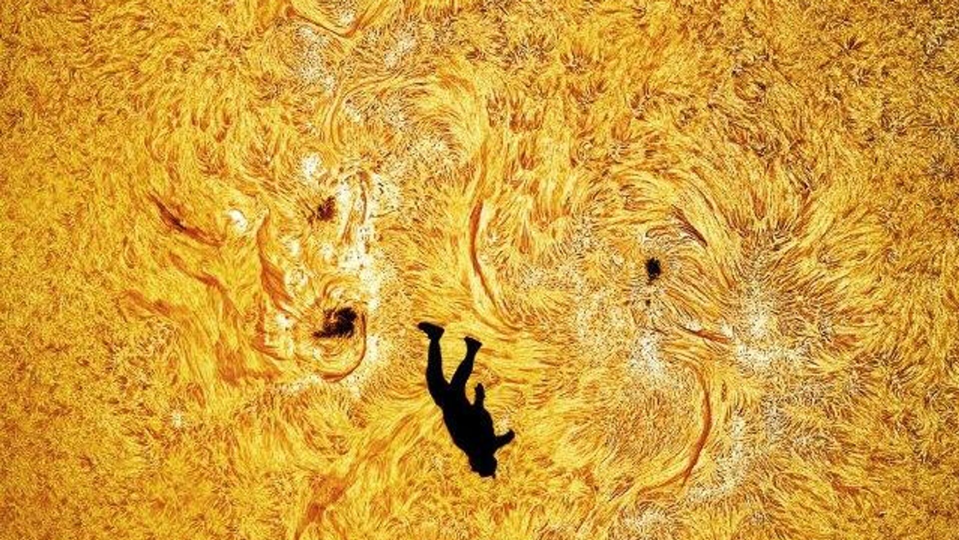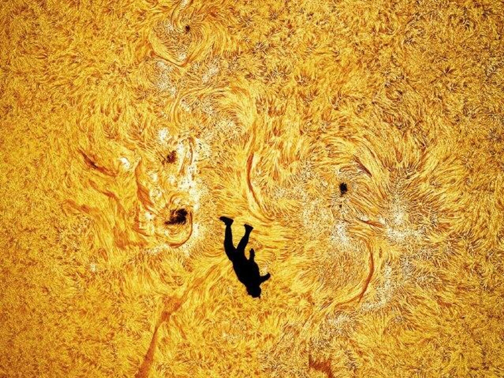 اندرو مککارتی، عکسی از پرش چتر دوستش در پسزمینهی قرص خورشید گرفته است. این تصویر در خط H-alpha گرفته شده که امکان مشاهدهی جو خورشید را فراهم میکند.