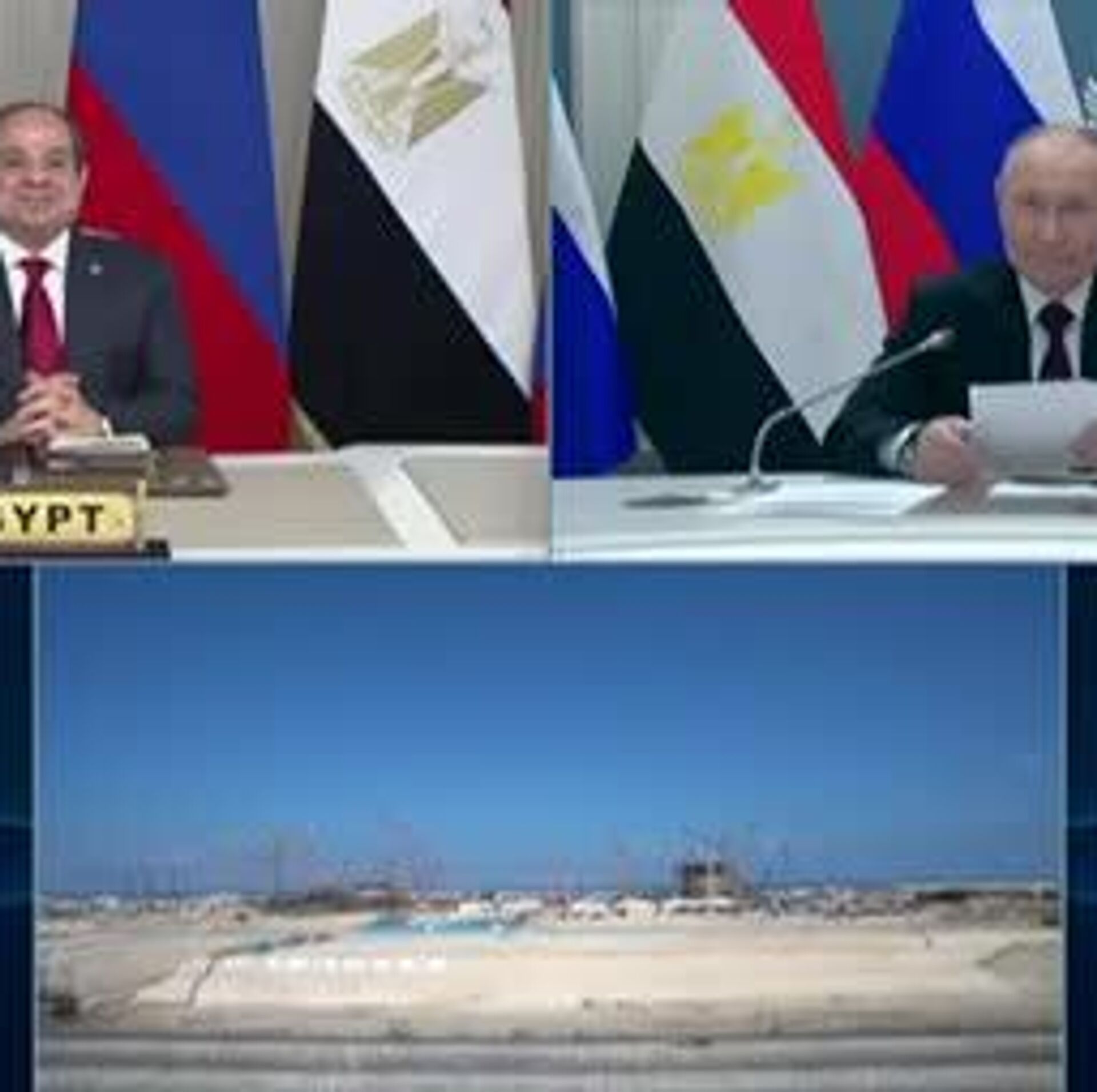 ولادیمیر پوتین و عبدالفتاح السیسی، رئیسان جمهور روسیه و مصر، به صورت ویدئوکنفرانس در مراسم نصب بدنه رآکتور نخستین واحد نیروگاه هسته ای «الضبعه» شرکت کردند.
