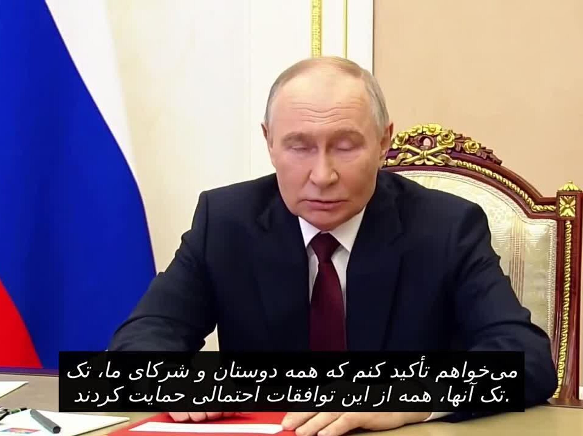 ولادیمیر پوتین بیان داشت: میخواهم تأکید کنم که همه دوستان و شرکای ما، تک تک آنها، همه از این توافقات احتمالی حمایت کردند.