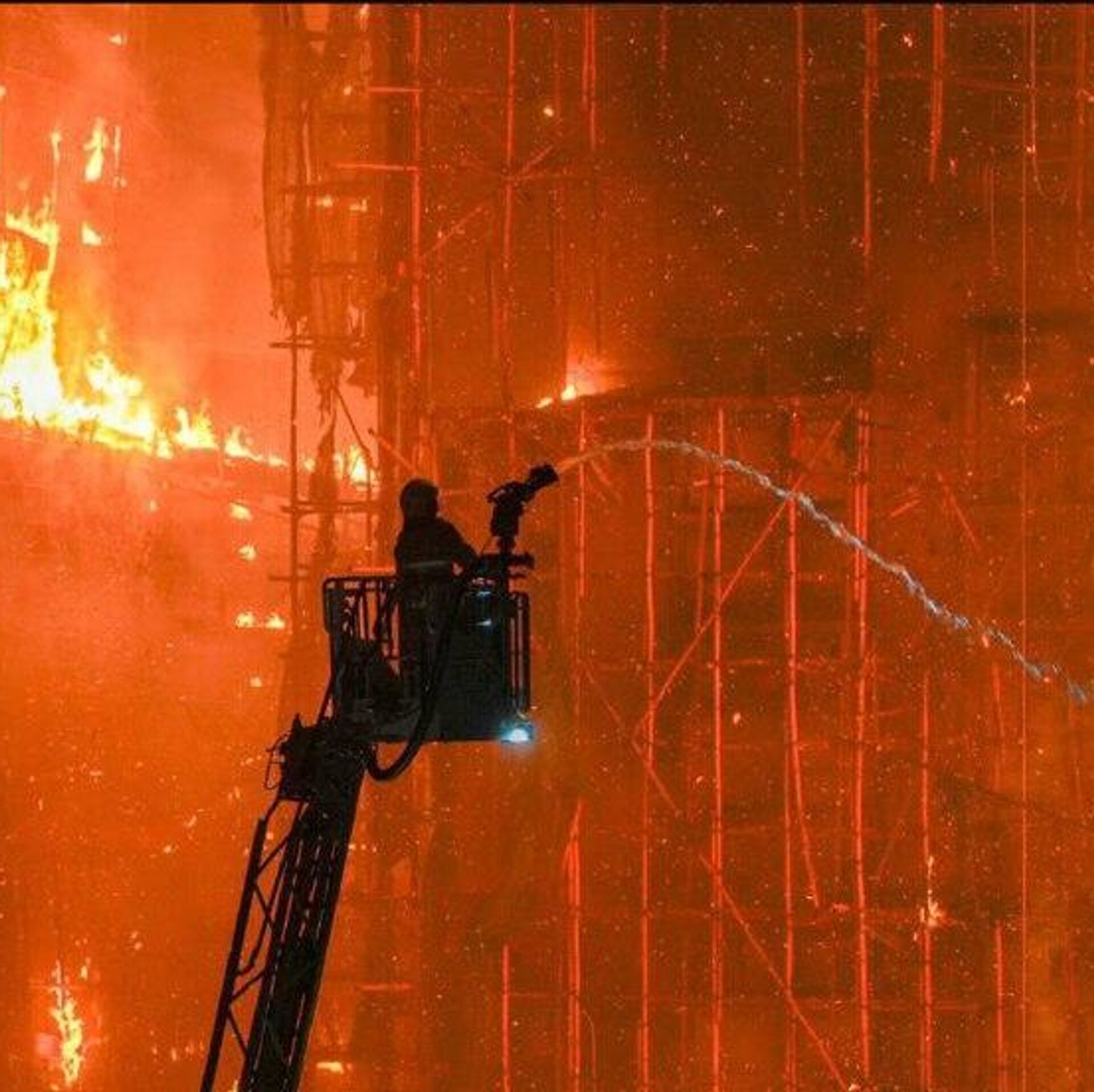 ◻امدادگران موفق شدند مردم را از دو ساختمان تخلیه کنند، اما چندین نفر از جمله سالمندان و کودکان همچنان در داخل ساختمانها هستند.