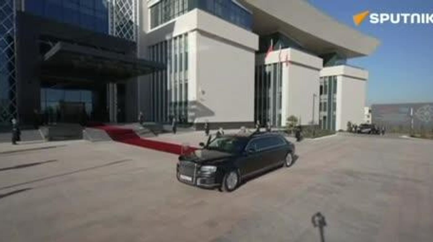ولادیمیر پوتین، رئیس جمهور روسیه، برای شرکت در اجلاس سازمان پیمان امنیت جمعی (CSTO) وارد اقامتگاه ینتیماک اردو در بیشکک، قرقیزستان، شد.