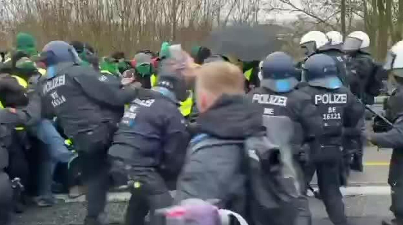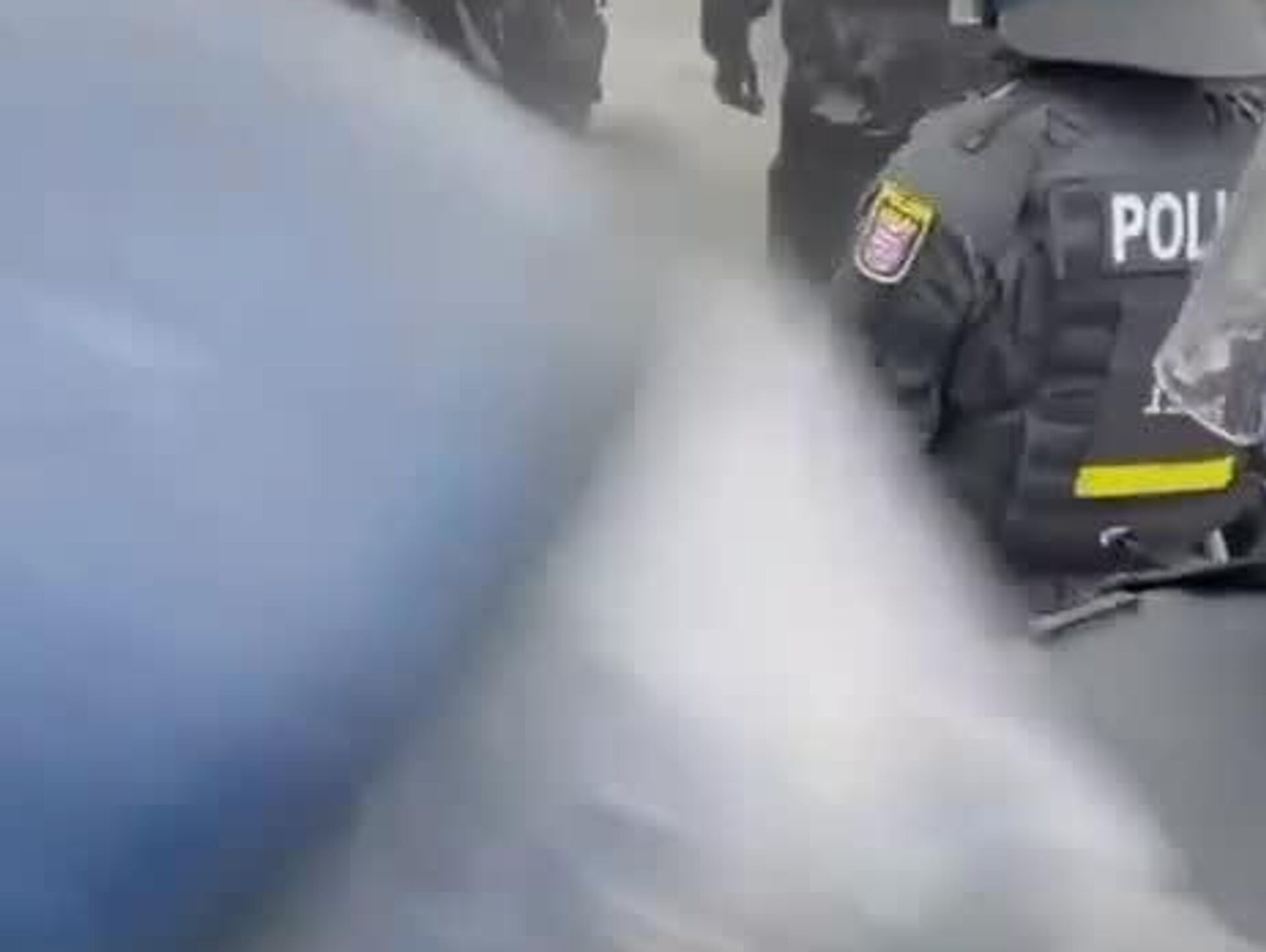پلیس اعلام کرد که در نزدیکی گیسن، پلیس پس از آنکه معترضان به درخواستهای شفاهی برای پاکسازی خیابان پاسخ ندادند، با استفاده از ماشینهای آبپاش در حال متفرق کردن محاصره 2000 نفری است. شرکتکنندگان در تجمعی روی پل کنراد-آدناور در گیسن، بطریهایی را به سمت پلیس پرتاب میکنند.