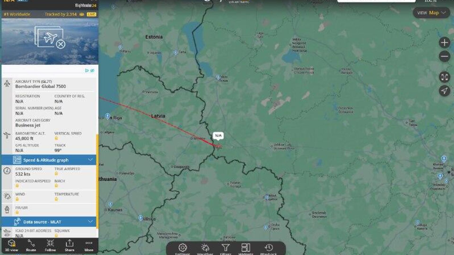 طبق دادههای «فلایت رادار24»، یک هواپیمای آمریکایی از همان نوع که توسط استیو ویتکاف، فرستاده رئیس جمهور ایالات متحده، برای بازدید از مسکو استفاده شده بود، چندی پیش از مرز روسیه عبور کرد