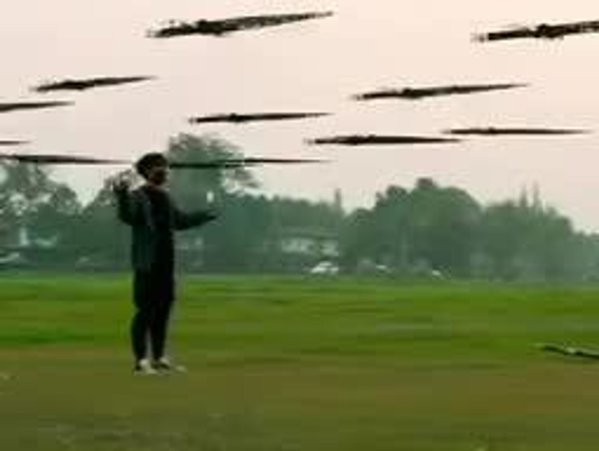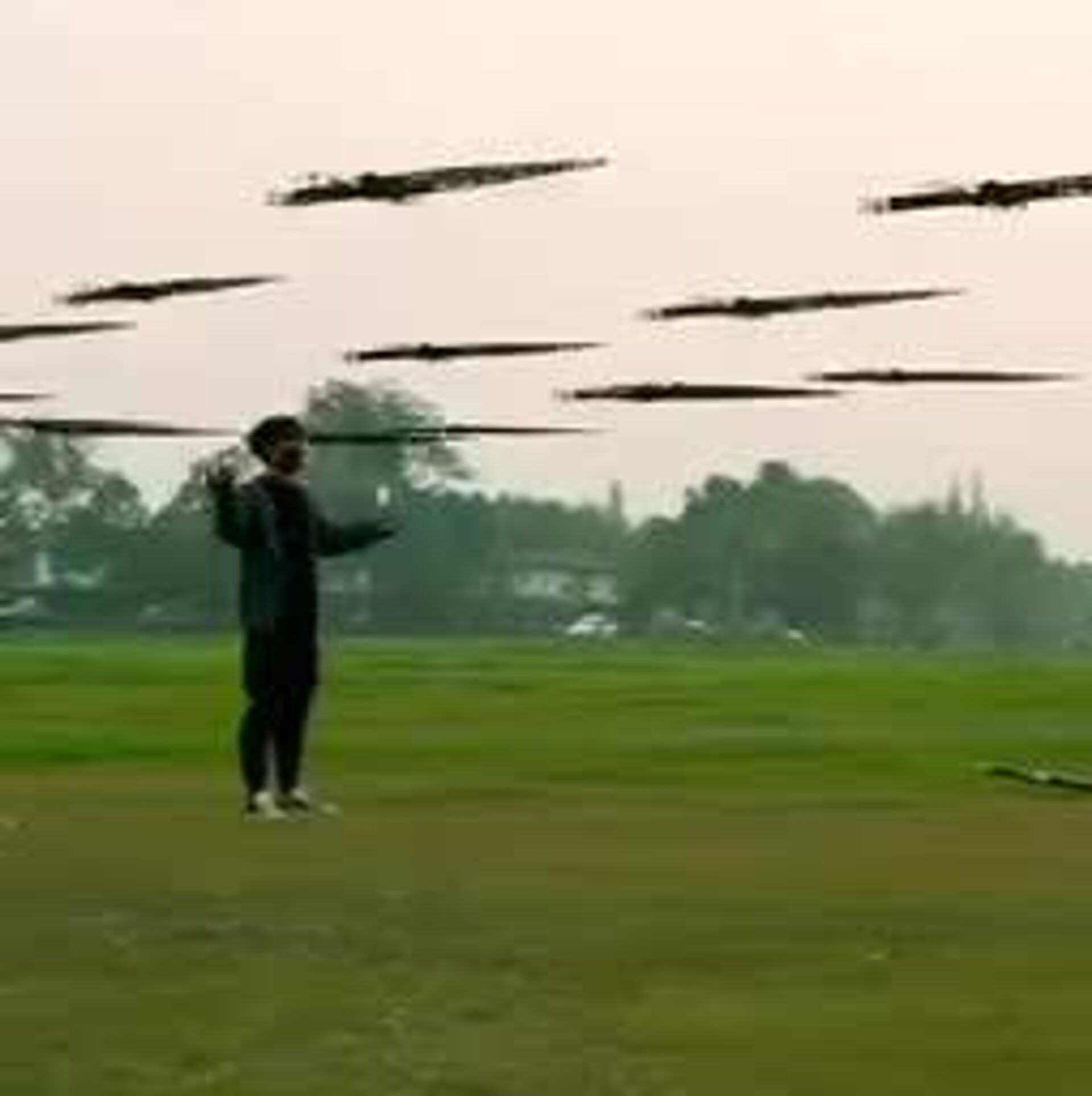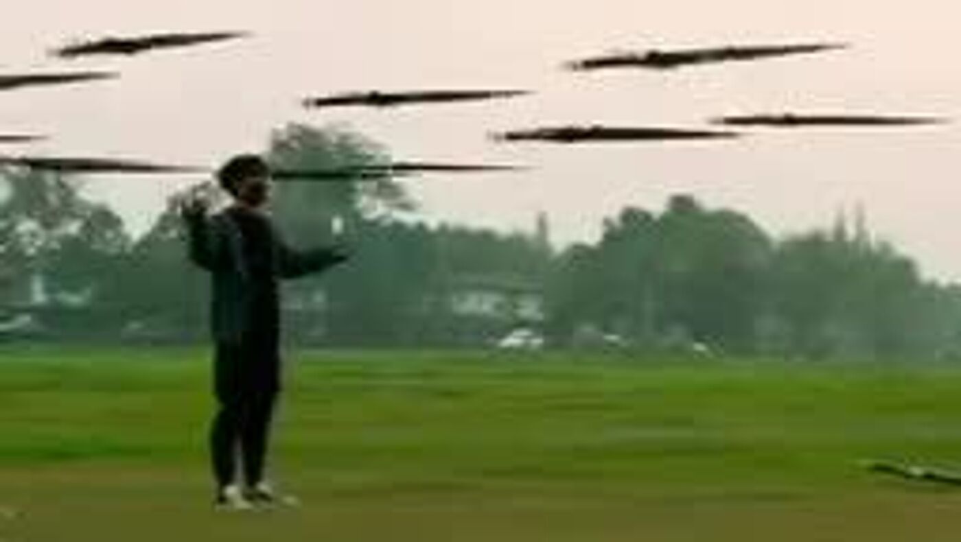 مرد جوانی از چنگدو "شمشیرهای پرنده" را در زندگی واقعی خلق کرده است. او با استفاده از حرکات، پهپادهای شمشیری را کنترل میکند و صحنههایی از یک فیلم فانتزی را تداعی میکند.