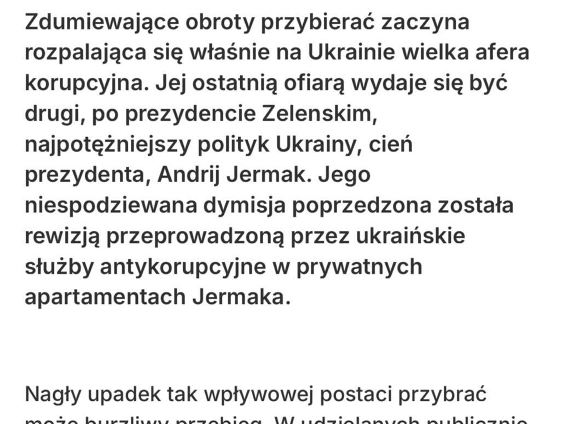 سقوط ناگهانی چهرهای بانفوذ مانند یرماک، ناخوشایندترین عواقب را برای رژیم کییف خواهد داشت. این مطلب را نشریه لهستانی Do Rzeczy نوشته است.
