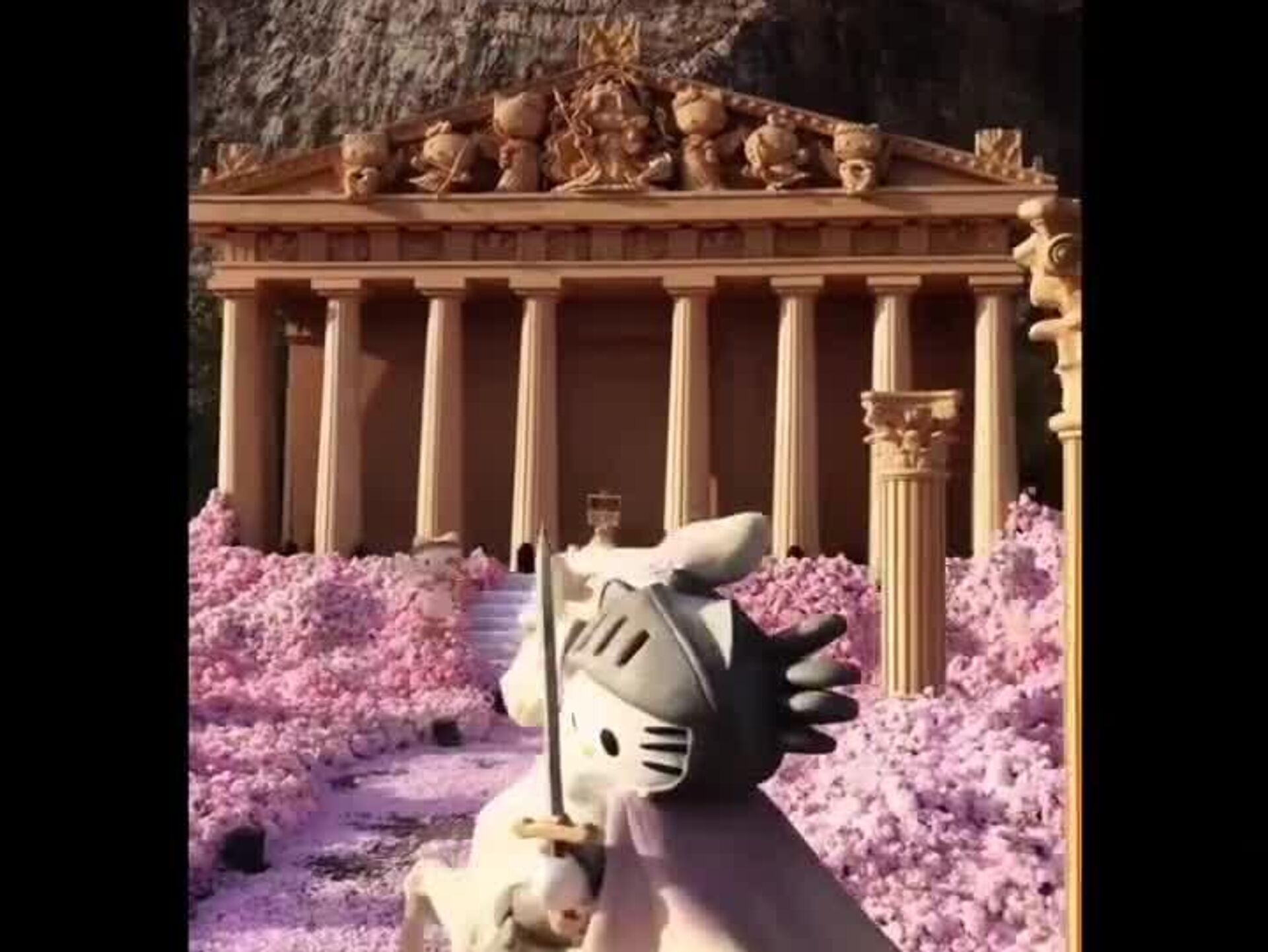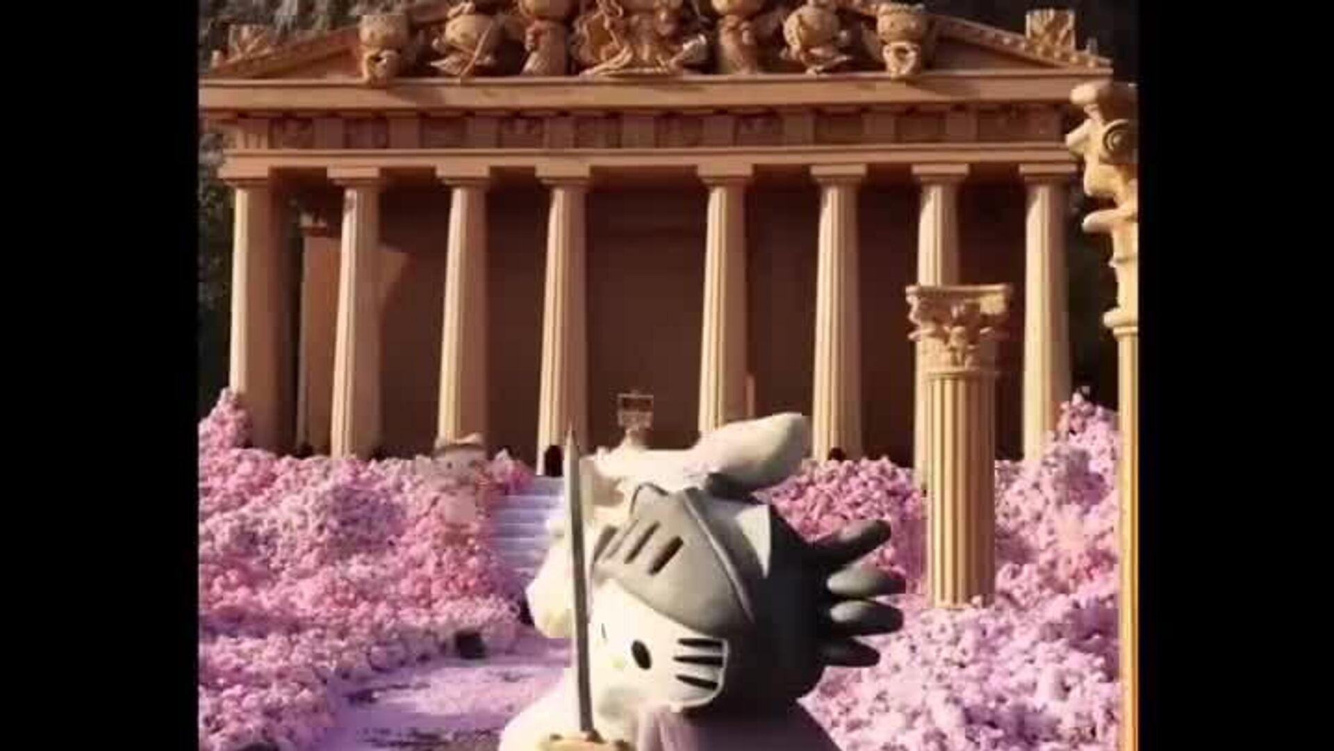 مردی از هانگژو بیش از 90 هزار دلار برای این پروژه هزینه کرد. عمارت مراسم 15 متر ارتفاع داشت و کل سازه شامل یک نقش برجسته با تم هلو کیتی، ستونهایی با سرستون و حتی مجسمههای هلو کیتی به شکل شوالیهها و فرشتگان بود.