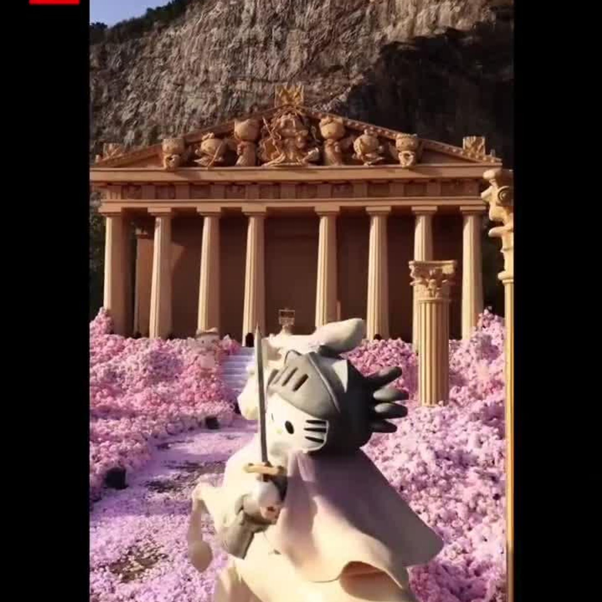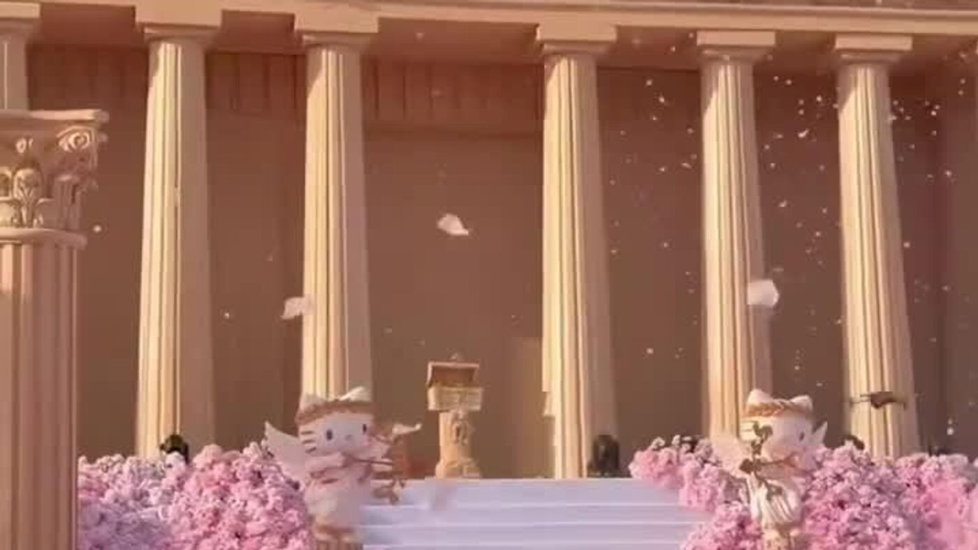 یک مرد چینی معبدی با تم هلو کیتی برای مراسم خواستگاری ساخت
