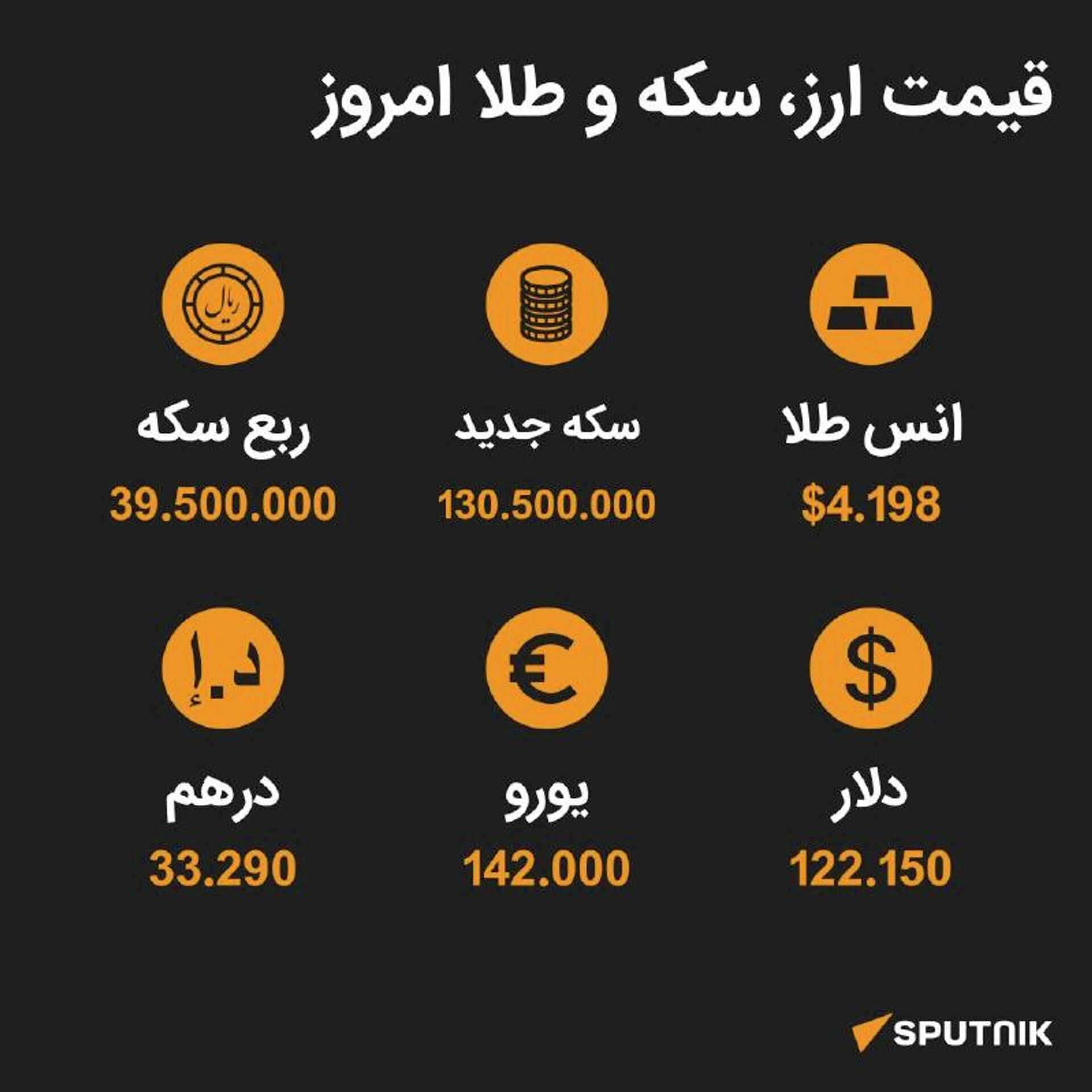 نرخ ارز، سکه و طلا تا ساعت 11:00 ما را در سایت و تلگرام اسپوتنیک دنبال کنید Sputnik Iran | Telegram