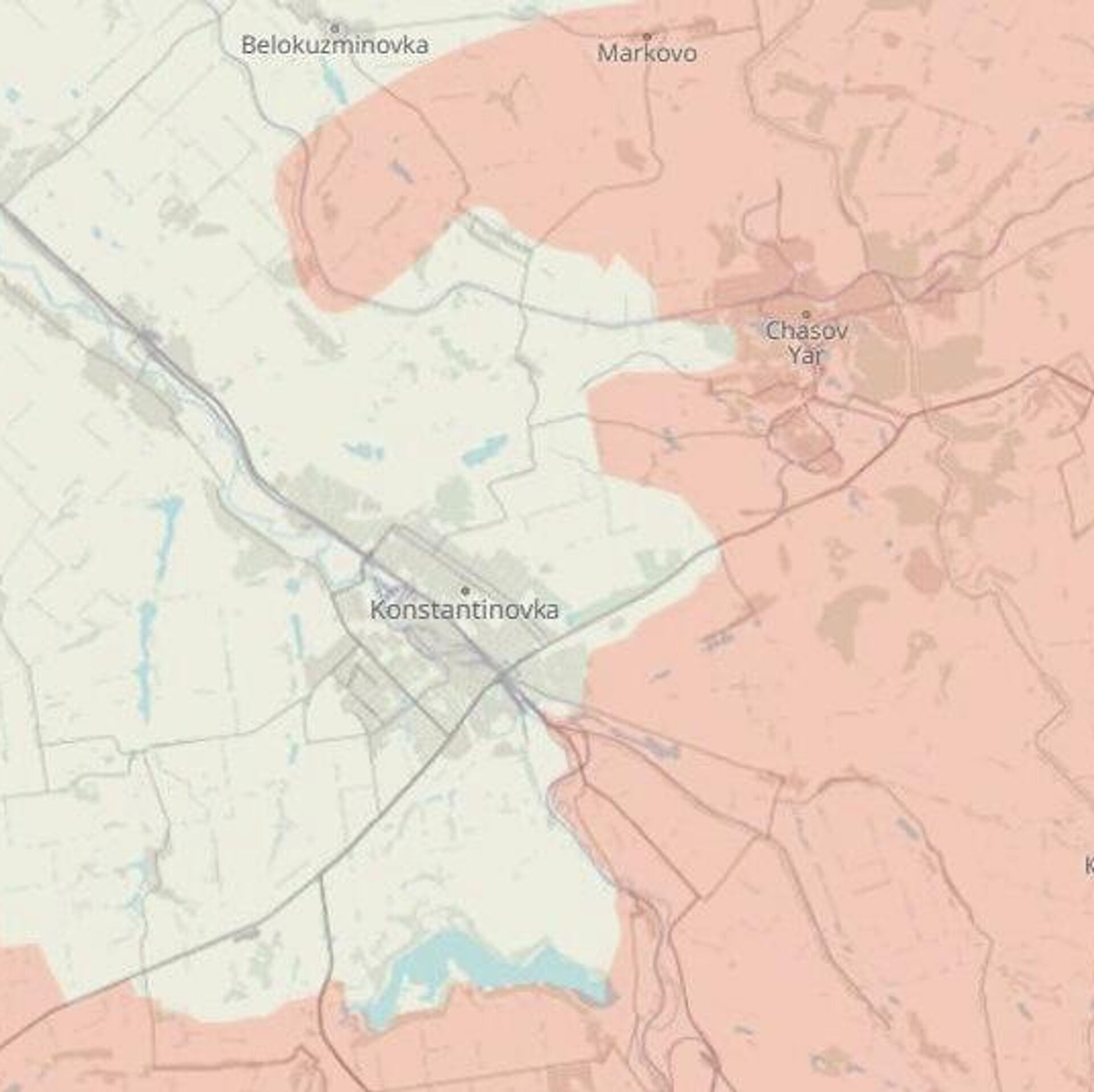 نیروهای روسی در حال تحکیم محاصره کنستانتینوکا هستند. والری گراسیموف، رئیس ستاد کل ارتش، طی جلسهای با رئیس جمهور پوتین گزارش داد که واحدهای گروه رزمی یوگ تحت نبردهای سنگین در حال پیشروی هستند و اکنون 45 درصد از شهر تحت کنترل روسیه است.