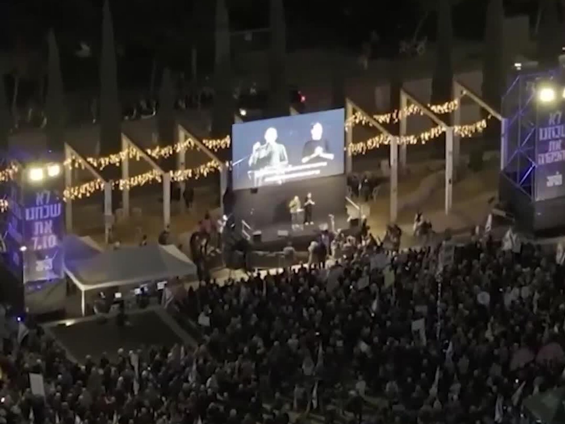 صدها نفر در میدان حبیما در تل آویو، اسرائیل، تجمع کردند تا علیه بنیامین نتانیاهو، نخست وزیر، به اتهام فساد اعتراض کنند