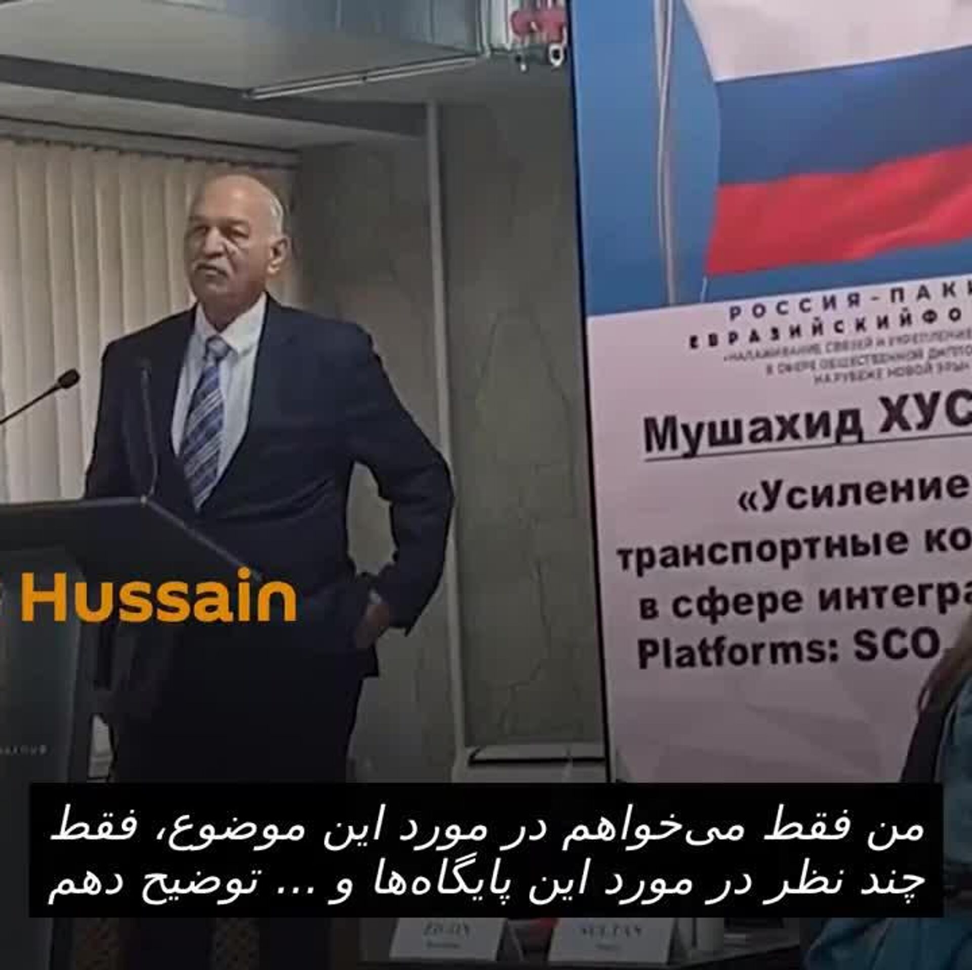 ◻ مشاهد حسین، سناتور منطقه پایتخت اسلام آباد از حزب مسلم لیگ پاکستان (شمال)، در سخنرانی خود در مجمع اوراسیای روسیه-پاکستان 2025 در مسکو گفت: «پارلمان در مارس 2012 تعطیلی پایگاه هوایی شمسی آمریکا را تصویب کرد و ما اعلام کردیم که هیچ پایگاه خارجی جدیدی بدون تصویب پارلمان مجاز نیست.»