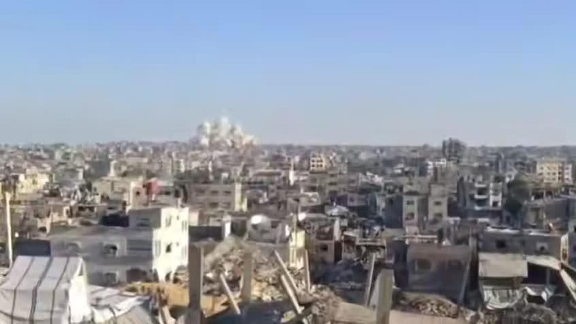 ویدیو لحظهای را نشان می دهد که ارتش اسرائیل عملیات تخریب خانهای را در جنوب شرقی خان یونس، در جنوب نوار غزه، انجام میدهد.
