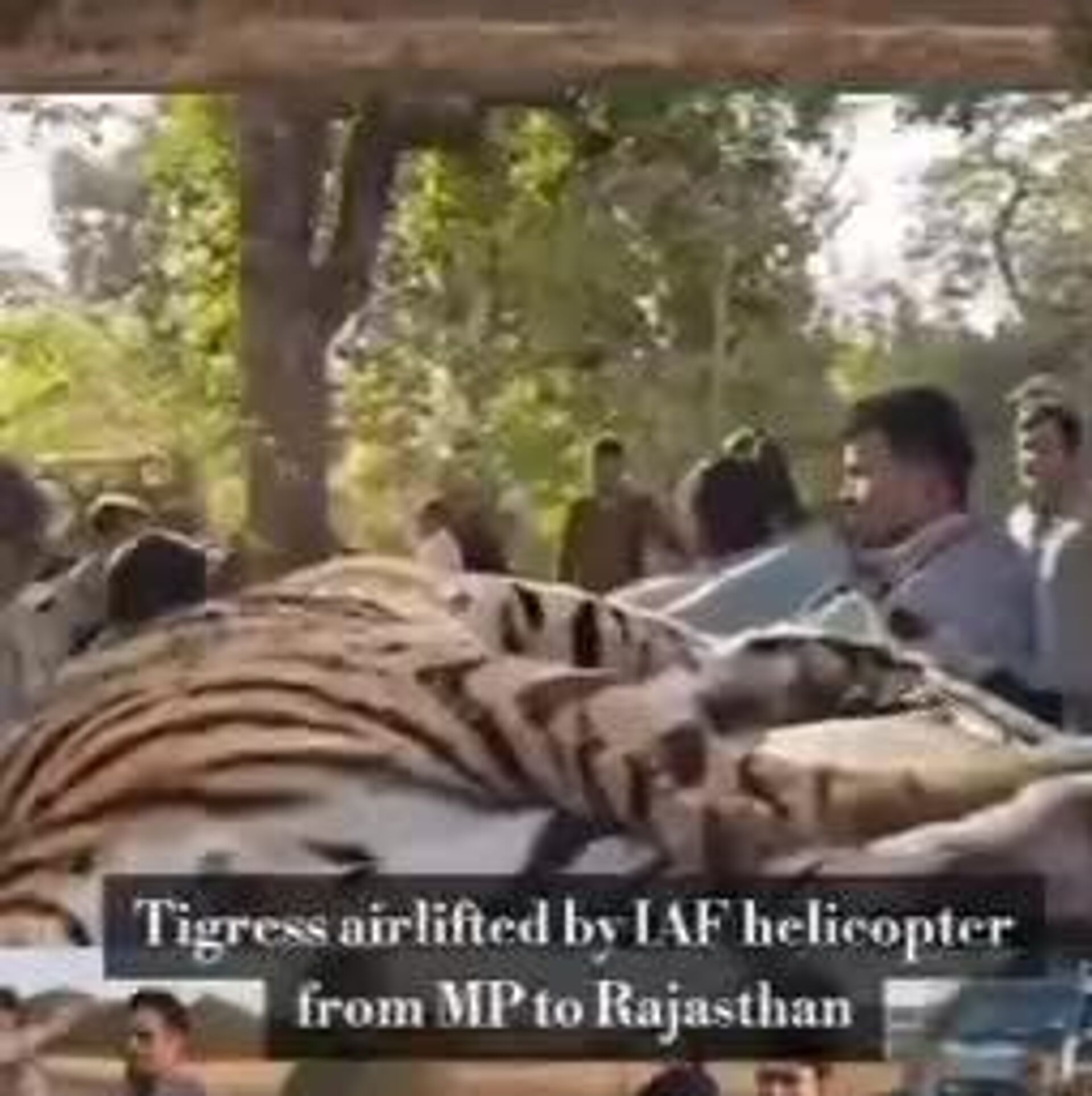 برای اولین بار در هند، یک ببر با هلیکوپتر به ایالت دیگری منتقل شد