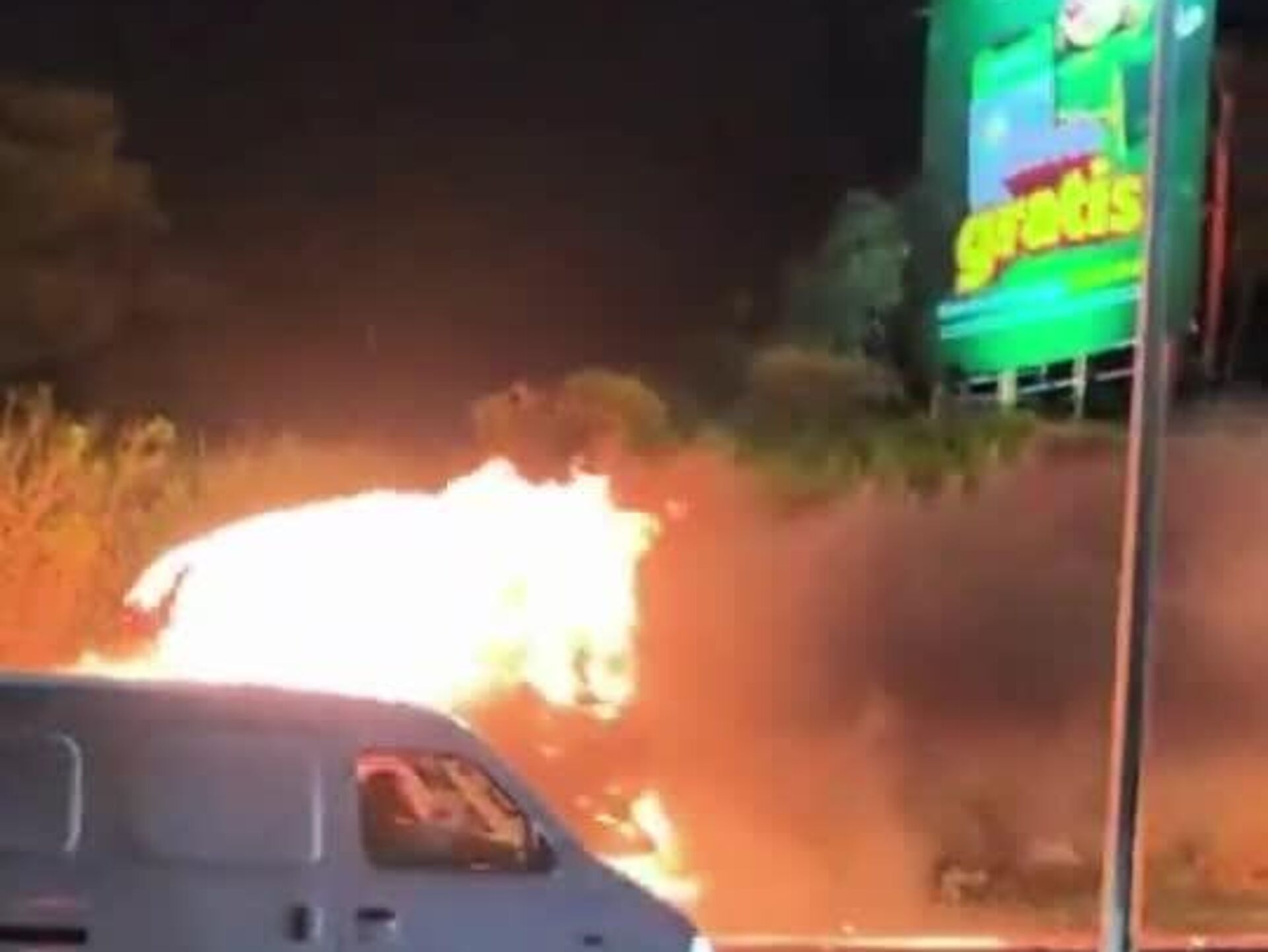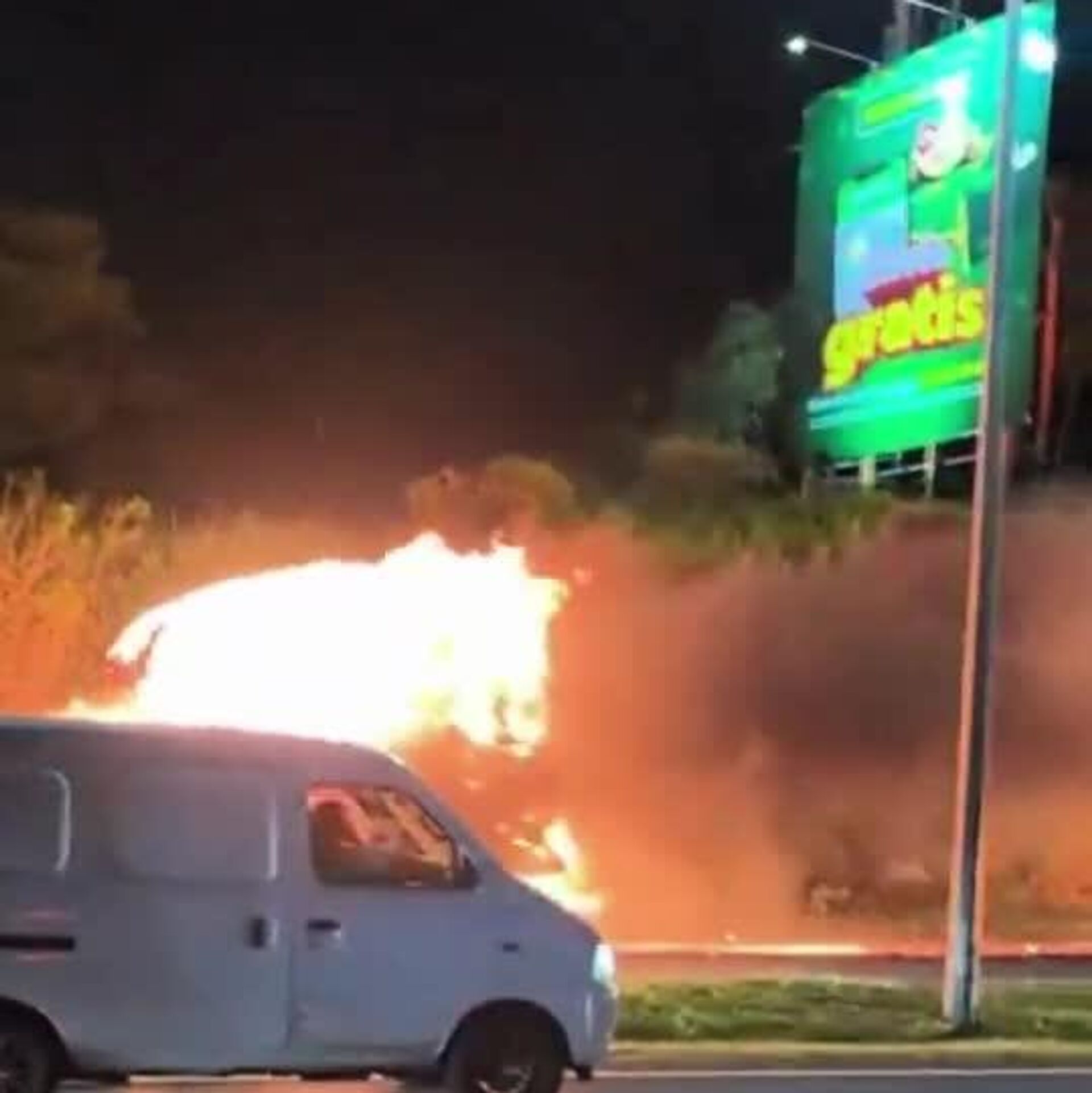▫آتشنشانان میگویند آتش به ترمزهای وسیله نقلیه آسیب رساند و باعث شد راننده کنترل خود را از دست بدهد. یک نفر با سوختگی درجه دو به بیمارستان منتقل شد.