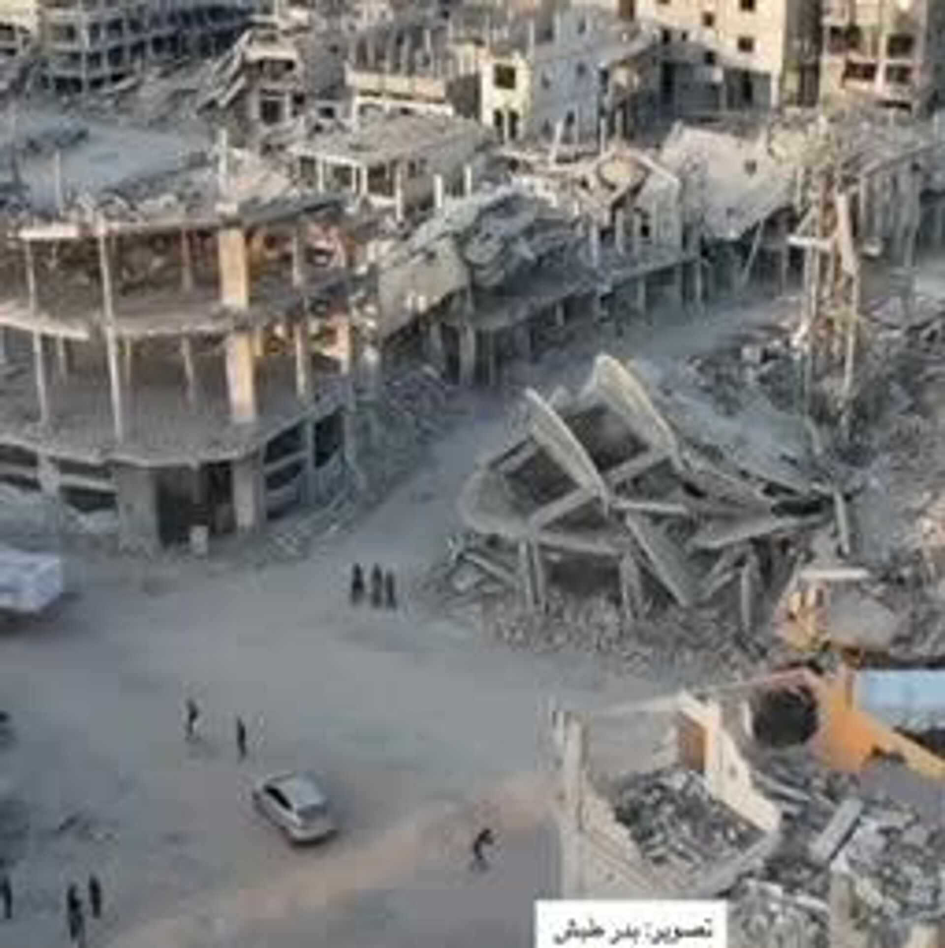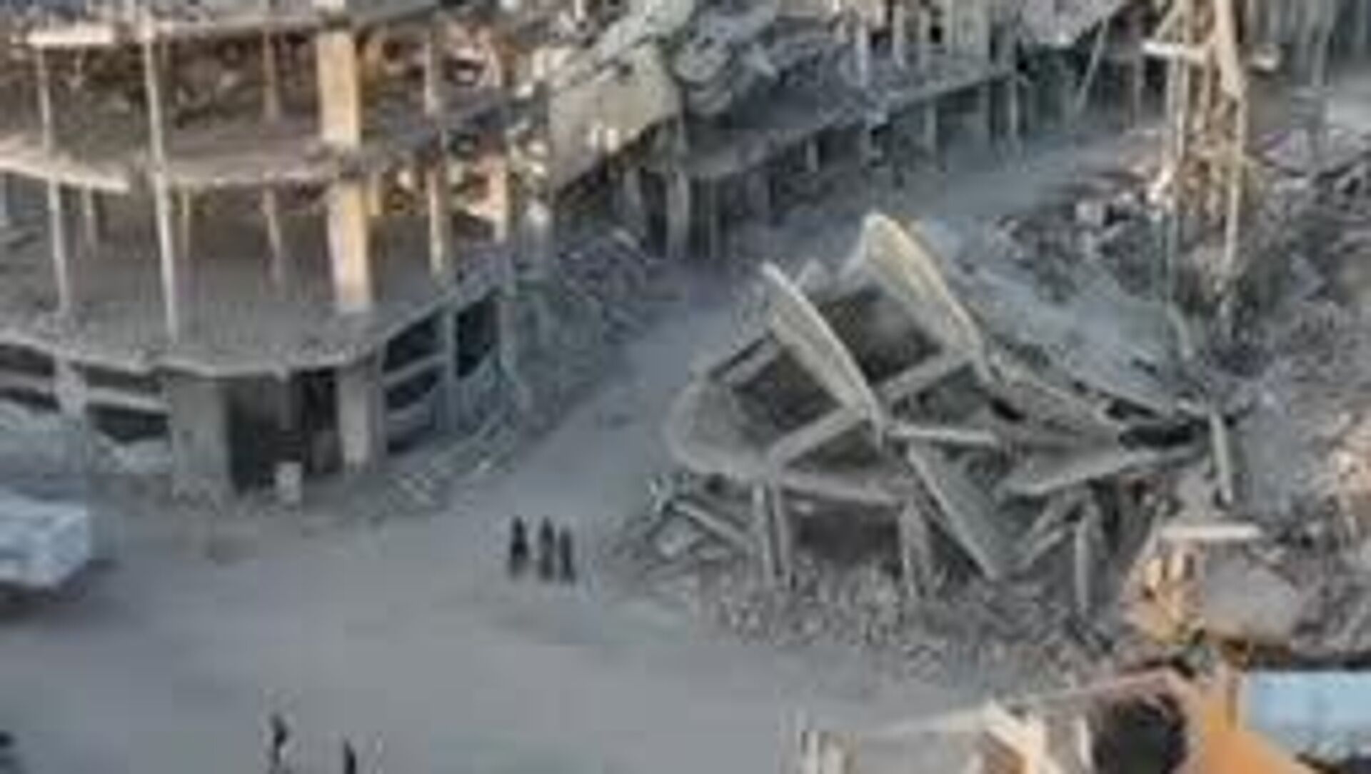 فیلمی که میزان تخریب در محله عباسان الکبیره در خان یونس، جنوب نوار غزه را نشان میدهد.