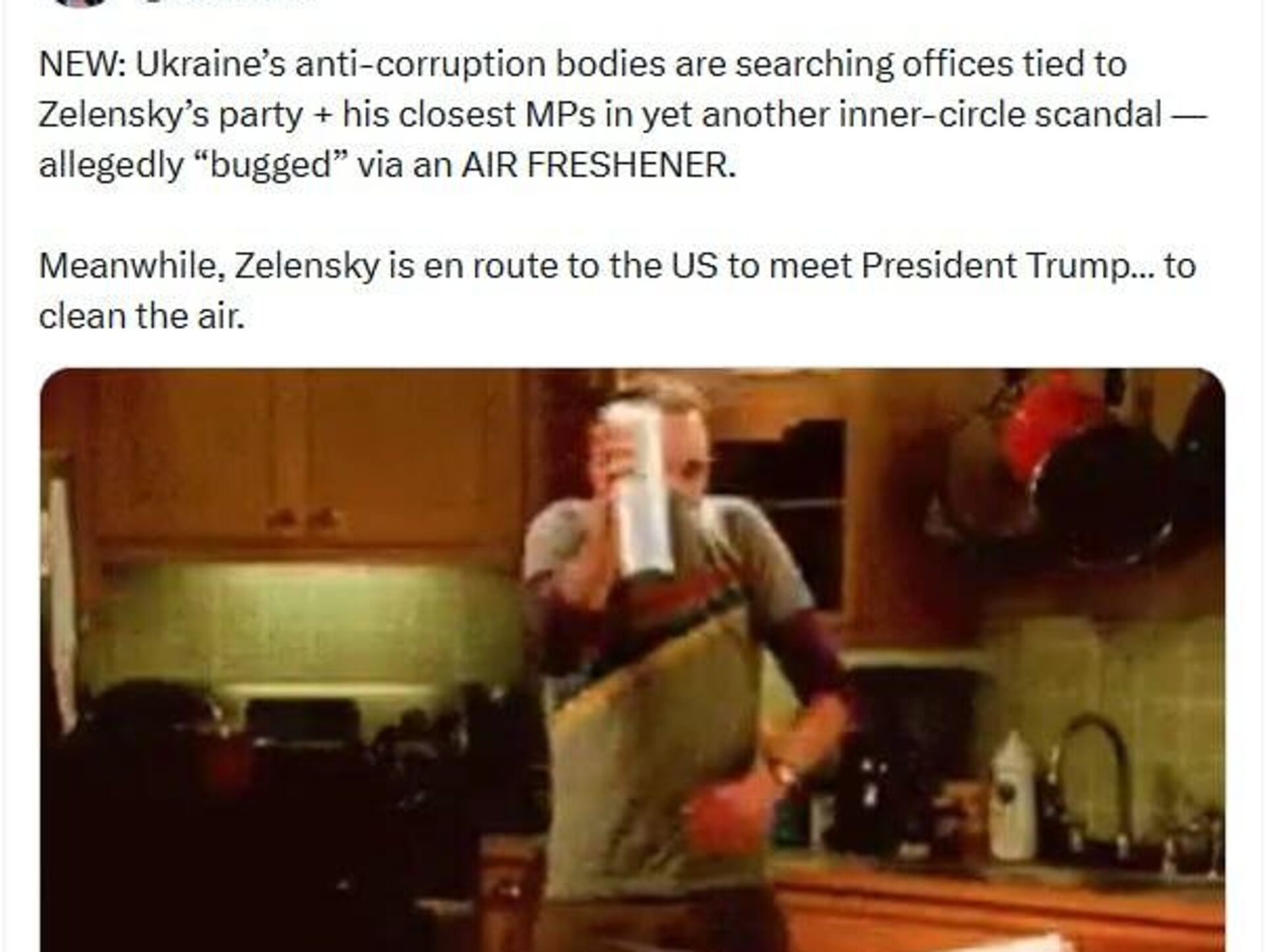 رئیس صندوق سرمایهگذاری مستقیم روسیه (RDIF) و نماینده ویژه رئیس جمهور روسیه در امور سرمایهگذاری و همکاری اقتصادی با کشورهای خارجی، با کنایه گفت: در حالی که آژانسهای مبارزه با فساد اوکراین به دفاتر حزب خدمتگزار مردم به رهبری ولدیمیر زلنسکی به دلیل فروش رأی توسط نمایندگان مجلس حمله میکنند، او «در راه آمریکاست تا با رئیس جمهور ترامپ ملاقات کند» تا «پاکسازی فضا» کند.