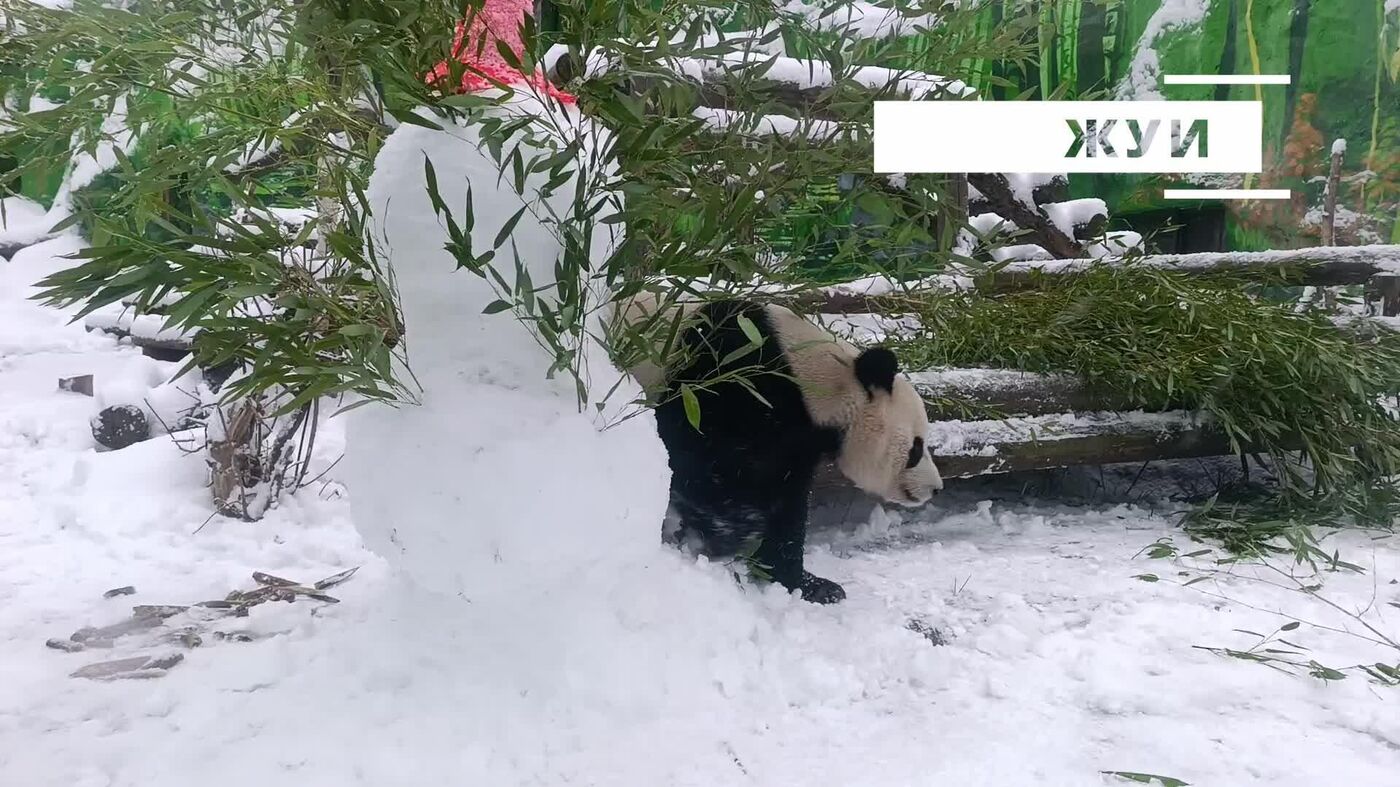 نه تنها ساکنان پایتخت روسیه، بلکه خانواده پانداهای ما از بارش برف لذت میبرند