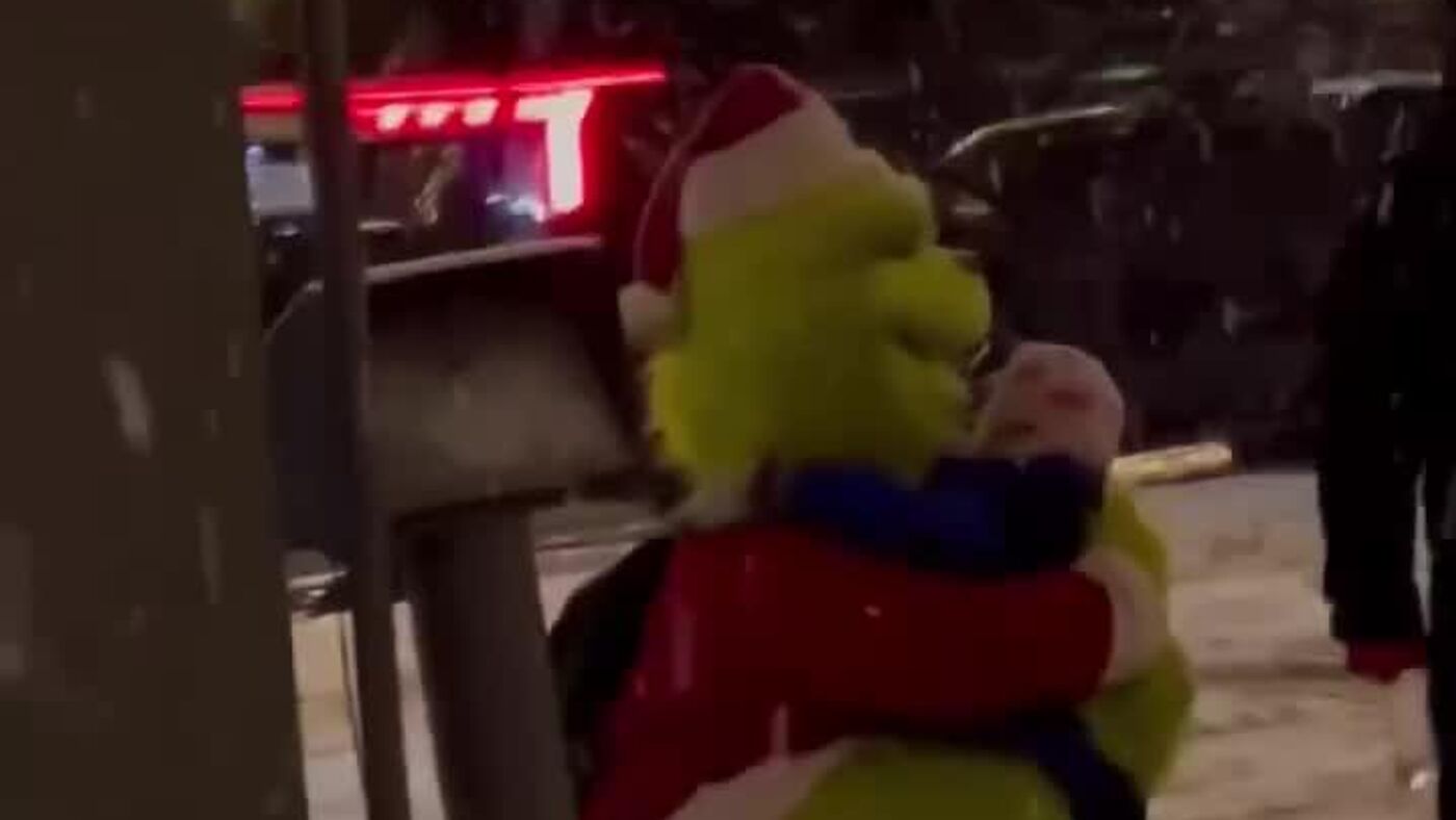 20:24 31.12.2025 (بروز رسانی شده: 20:30 31.12.2025) گرینچ در حال بغل کردن بچههای در حال عبور در مسکو