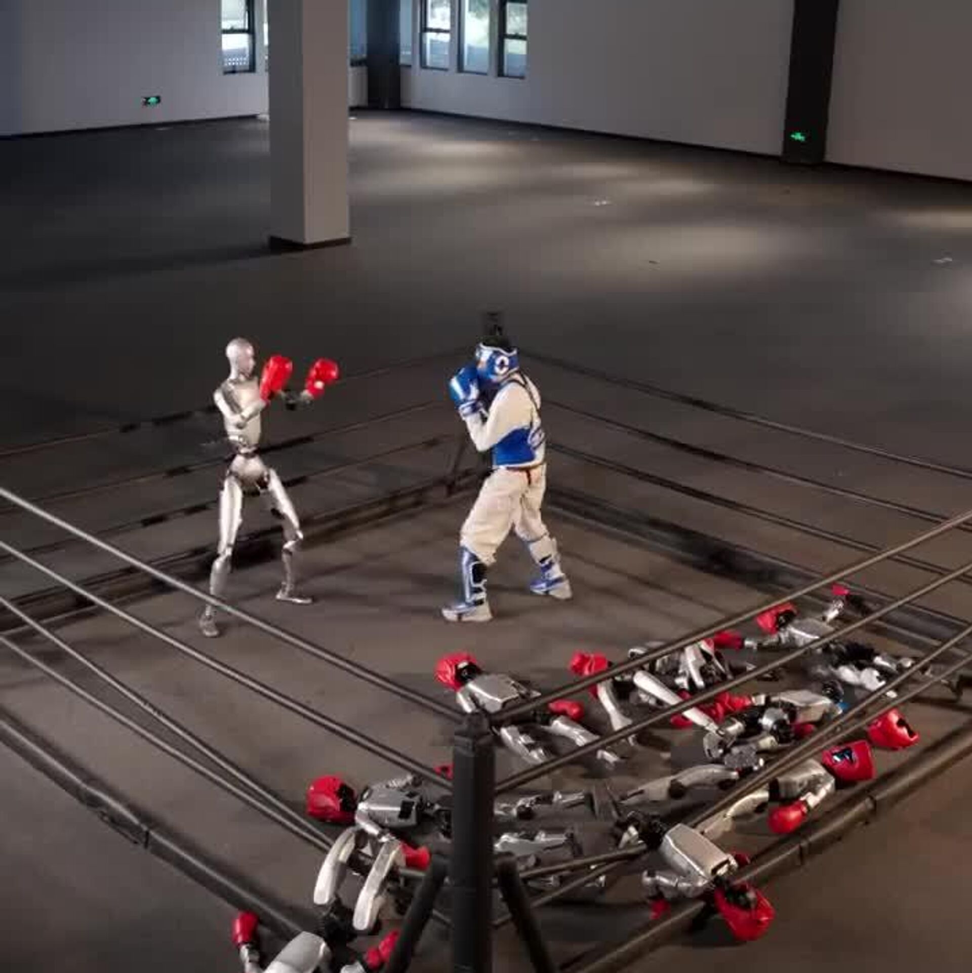 ربات بوکسور چینی توانست یک انسان رزمی کار و مبارز را در رینگ ناک اوت کند