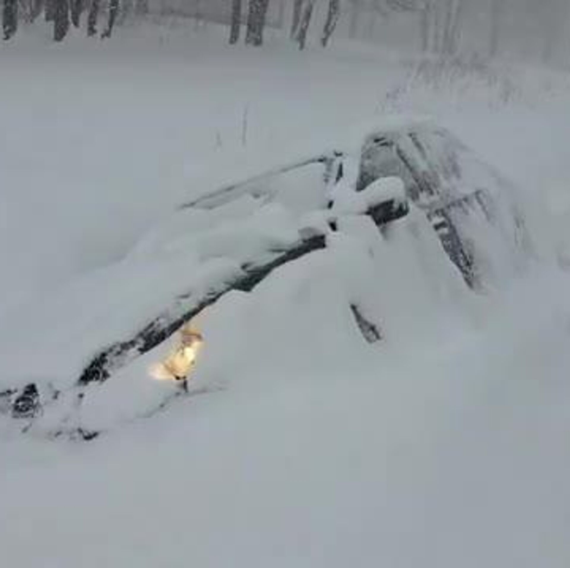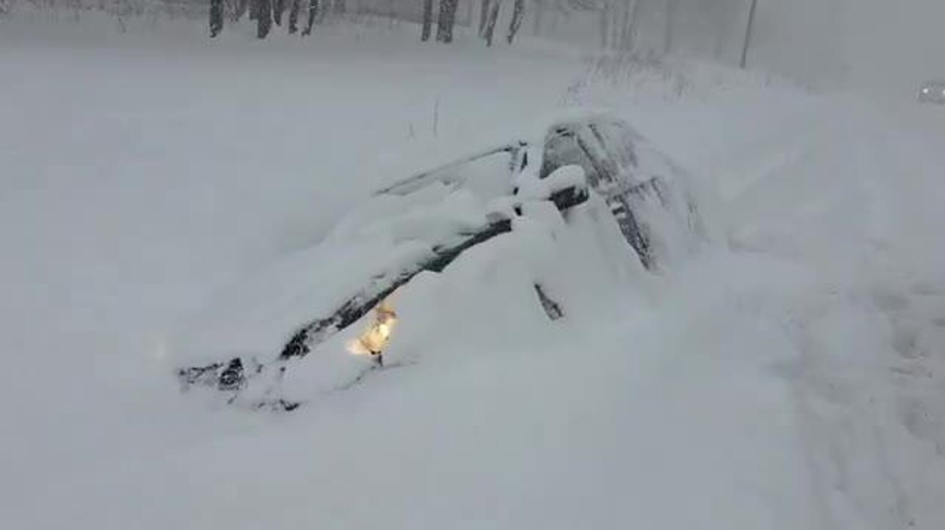 در اوسویگو، ساکنان نگران در حال کمک به بیرون کشیدن خودروهای گرفتار در برف در بزرگراه هستند.