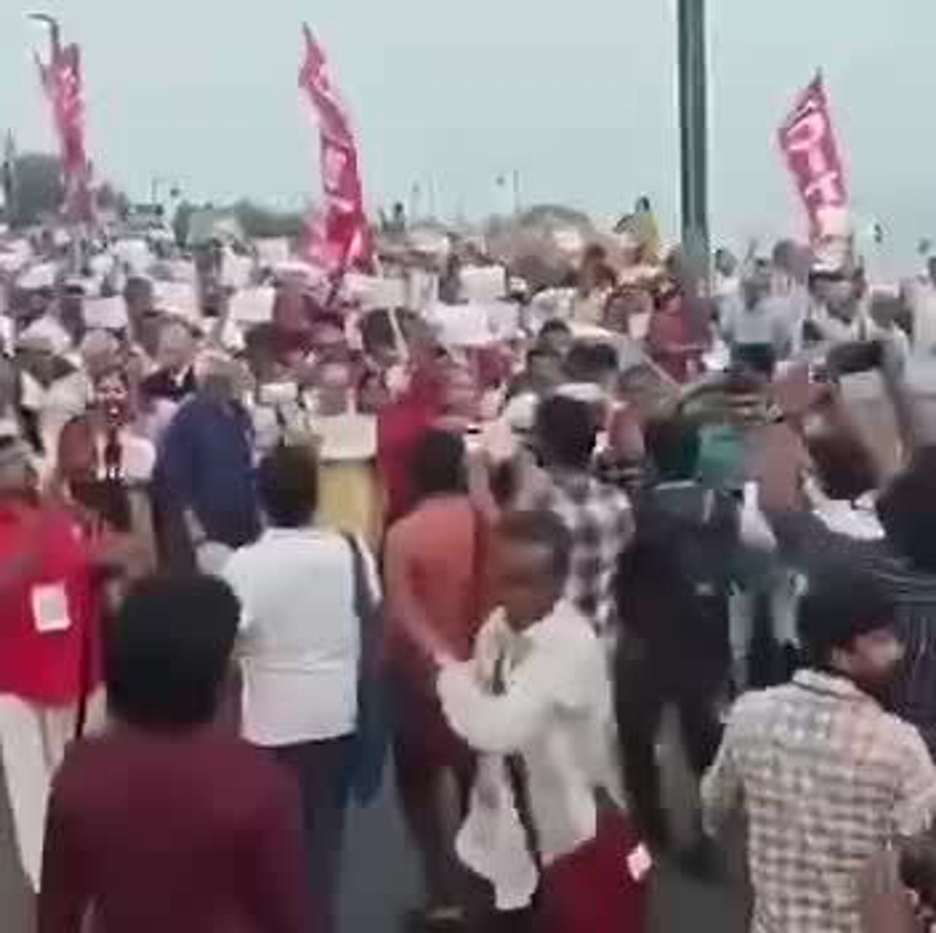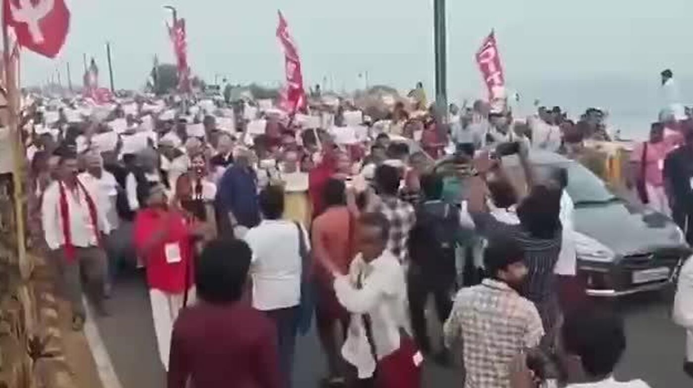 11:27 04.01.2026 (بروز رسانی شده: 11:30 04.01.2026) حزب کمونیست هند اعتراضاتی را در شهر ویساکاپاتنام علیه تجاوز آمریکا به ونزوئلا و دستگیری رئیس جمهور مادورو سازماندهی کرد
