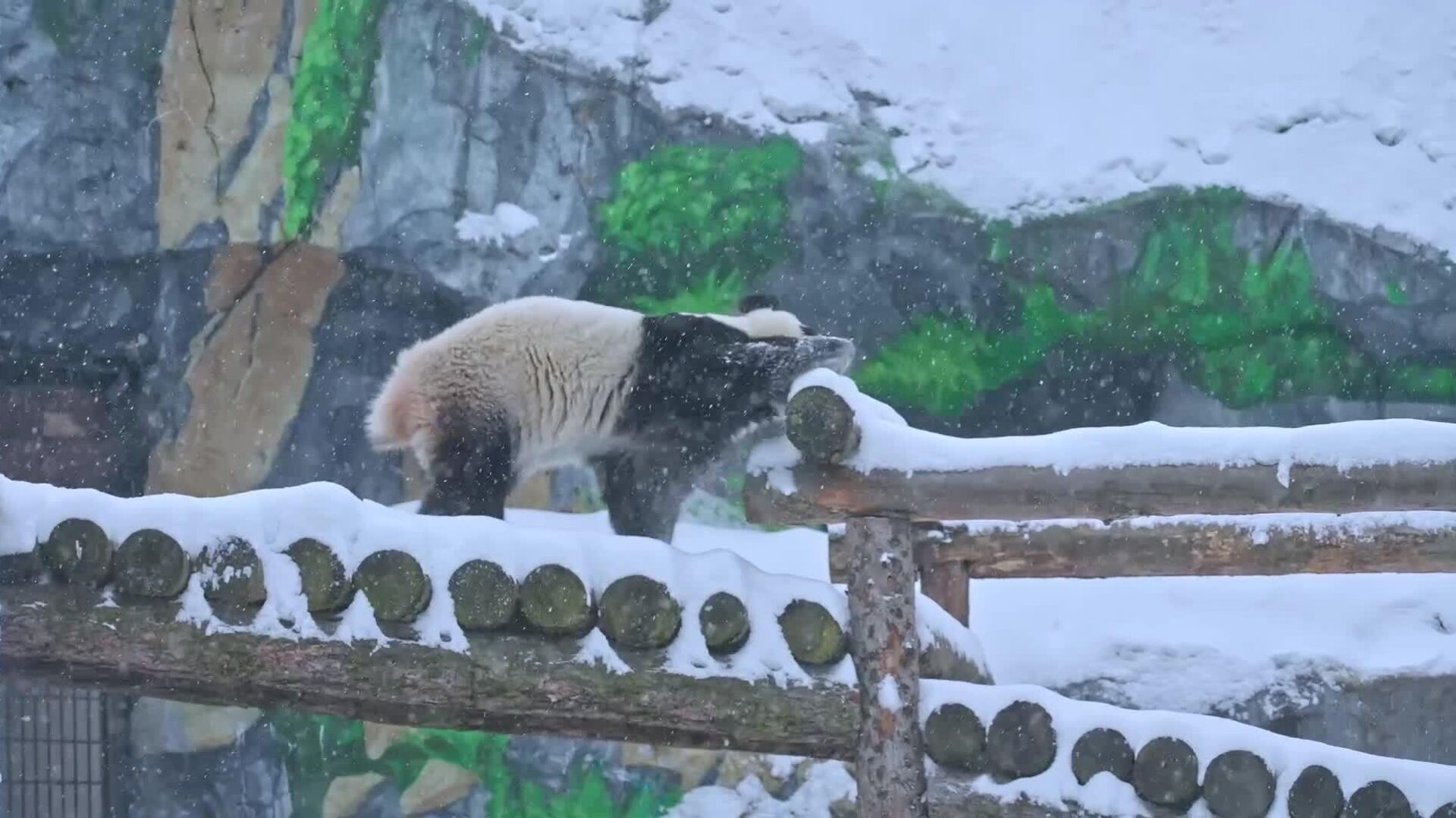 پاندا کاتیوشا برای هدیه سال نو یک سورتمه بامبو دریافت کرد