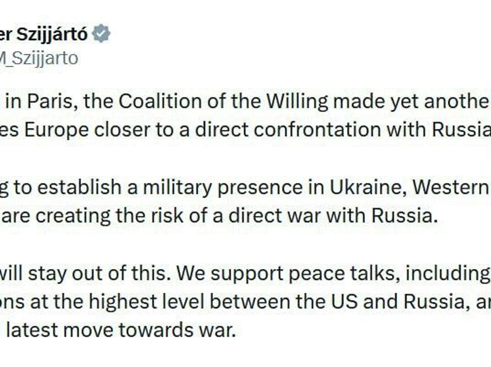 وزیر خارجه مجارستان: اروپا به سوی «رویارویی مستقیم با روسیه» پیش میرود