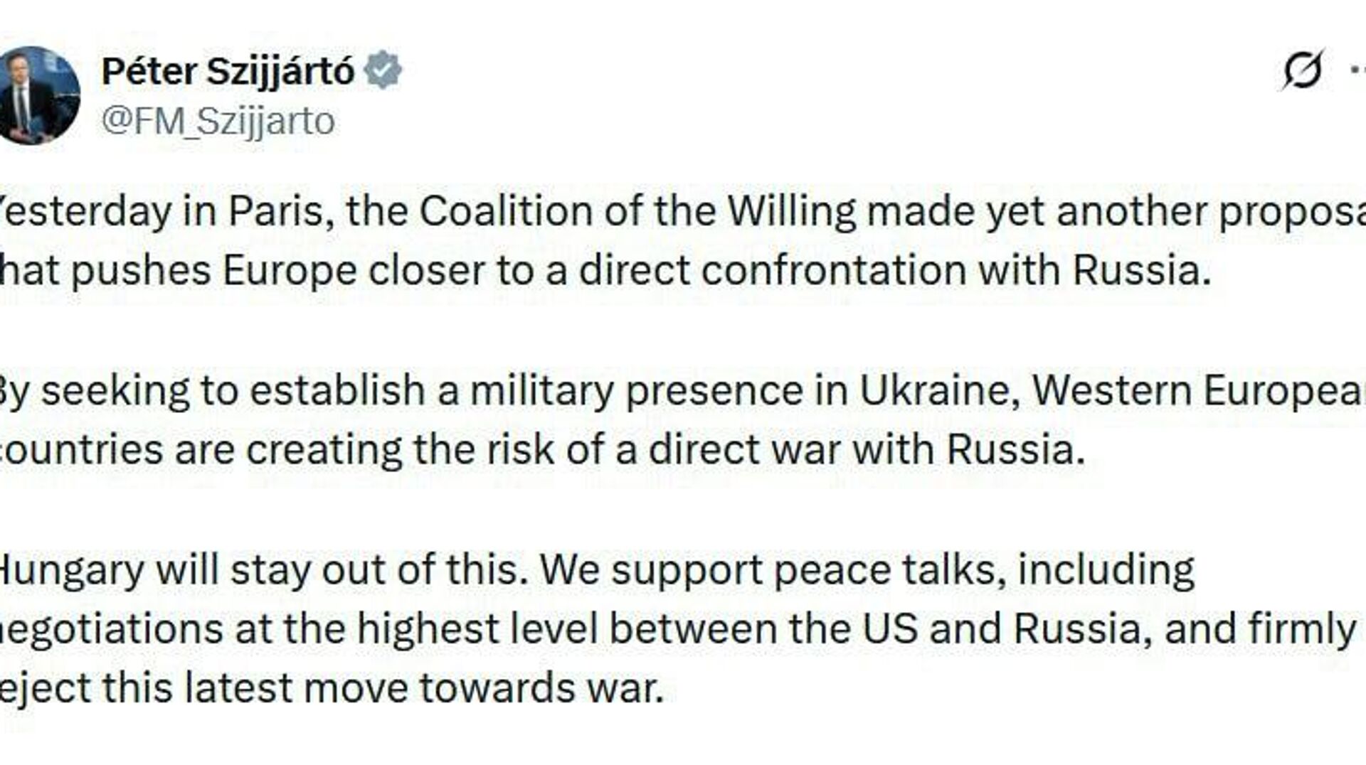 پیتر سیارتو افزود: «مجارستان از این ماجرا دور خواهد ماند.»