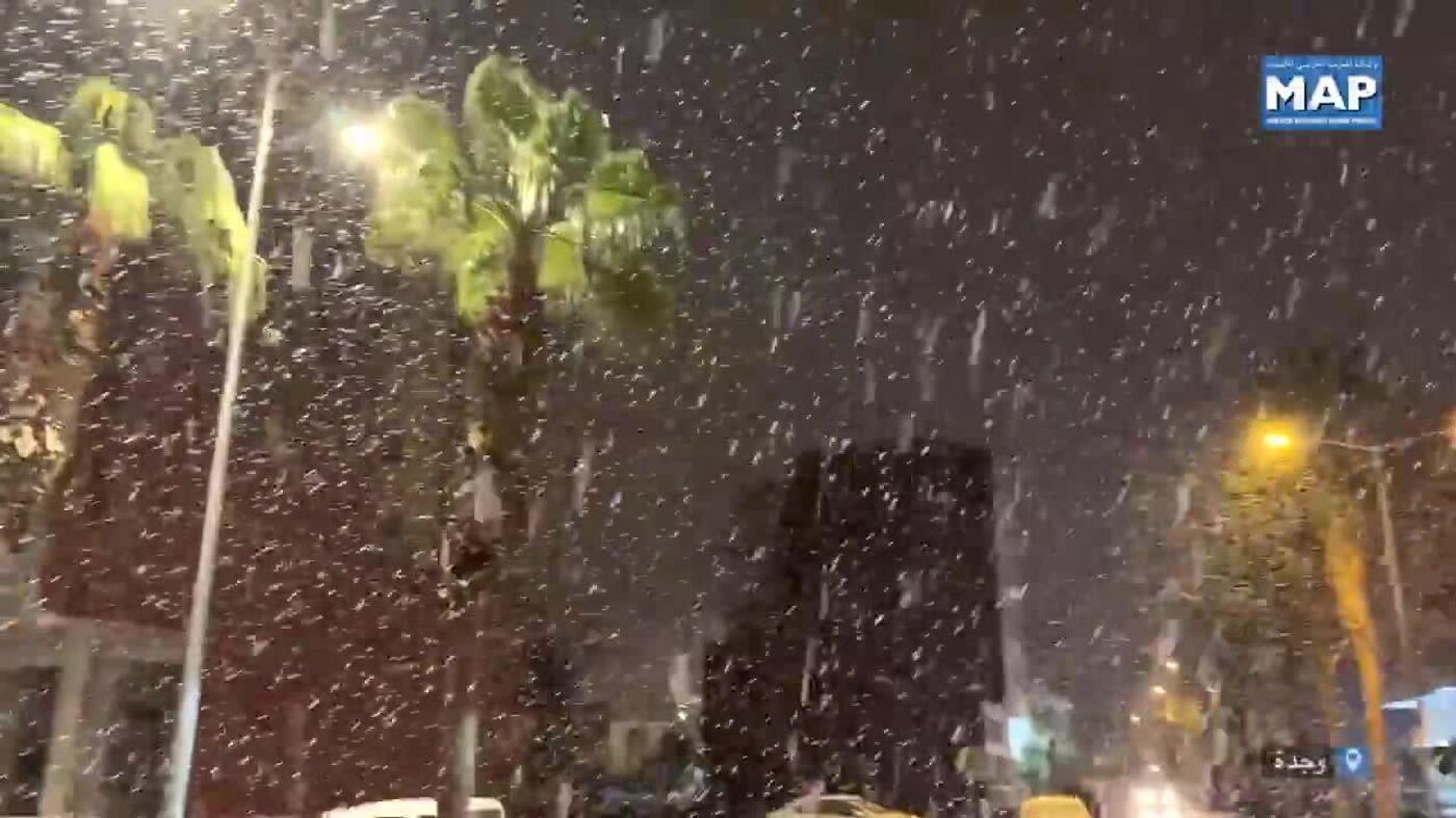 برای اولین بار پس از سالها، در شهر اوجده مراکش برف بارید