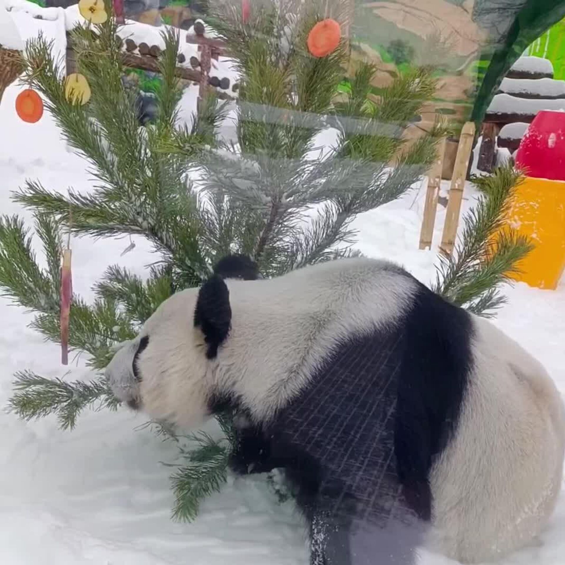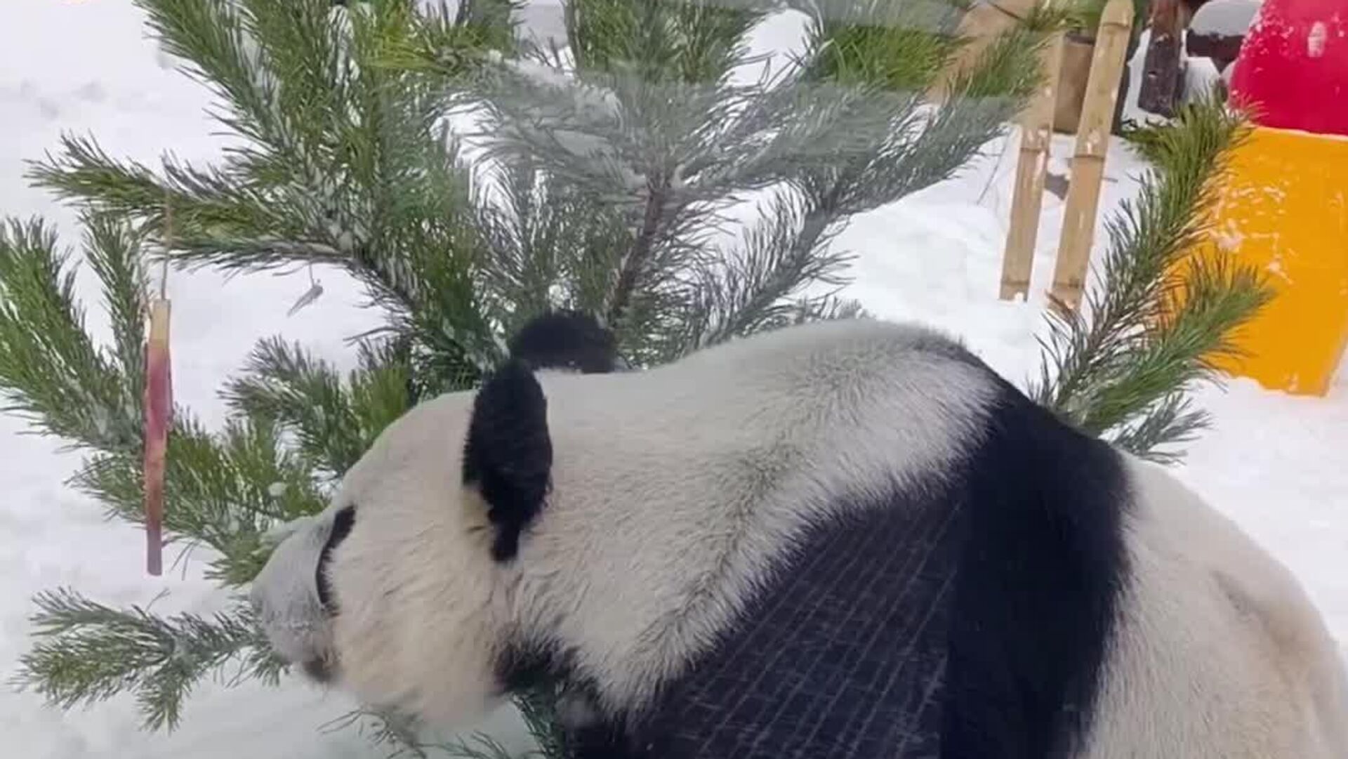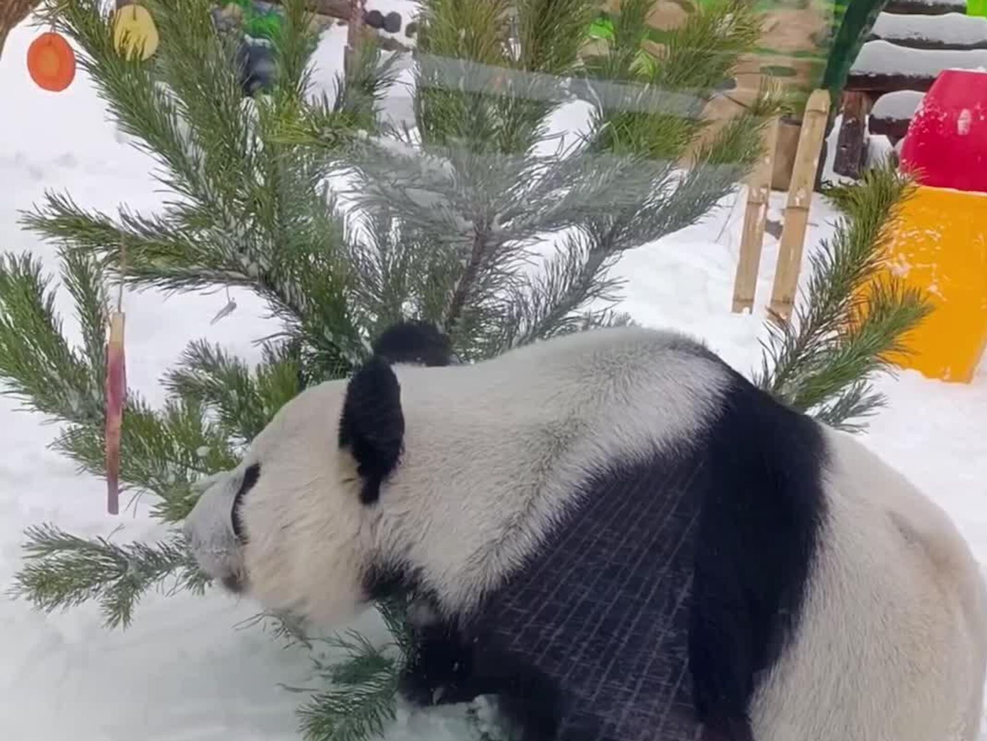 به جای اسباببازیها و حلقههای گل معمول، شاخههای بامبو، سیبهای آبدار، سیبزمینی شیرین سالم و هویج را به شاخهها وصل کردند. برای پاندا، این "درخت" نه تنها یک خوراکی است، بلکه یک بازی هیجانانگیز است که مهارتهای طبیعی جستجوی غذا را در او توسعه میدهد.دین دین با اشتیاق شروع به "جدا کردن" هدایای خوشمزهاش کرد.